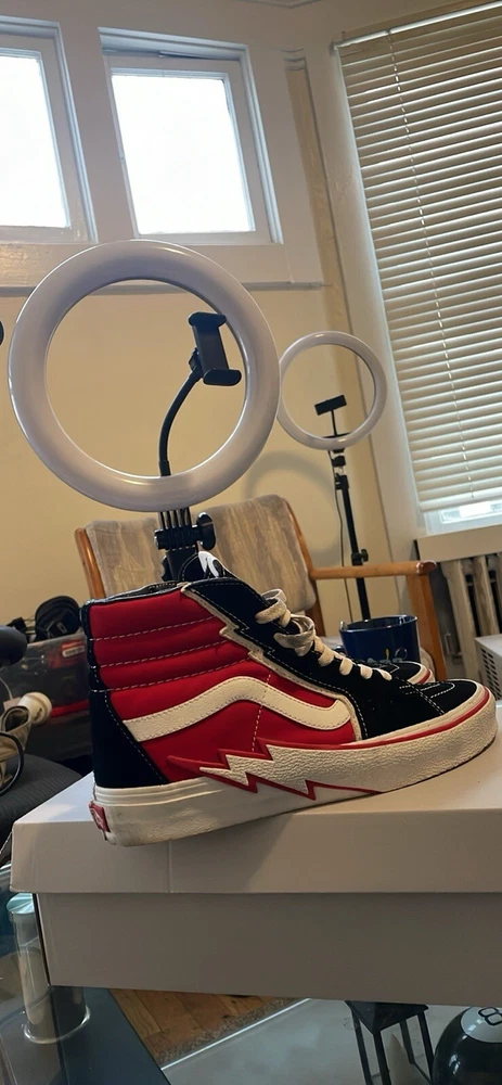 Model: VANS SK8 Product Line: VANS Sk8 Customized: No Department: Men Shoe Shaft Style: High Top Vintage: No Type: Athletic Color: Red US Shoe Size: 8.5 Upper Material: Suede Style: Sneaker Brand: VANS Style Code: VN0A5JIVYHU