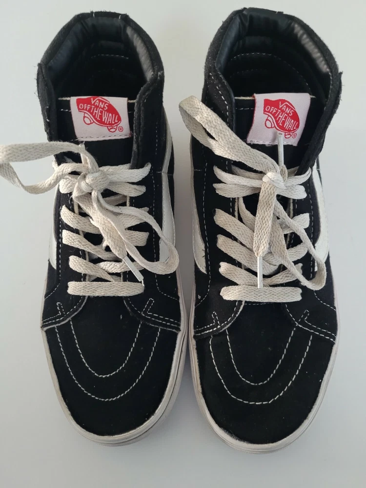 VANS HIGH TOP MENS SKATE SHOE SIZE 5 US Women 6.5 BLACK W/WHITE TRIM