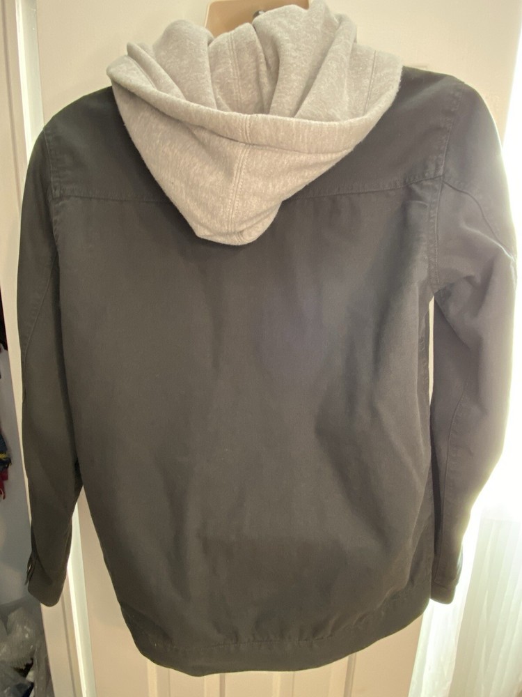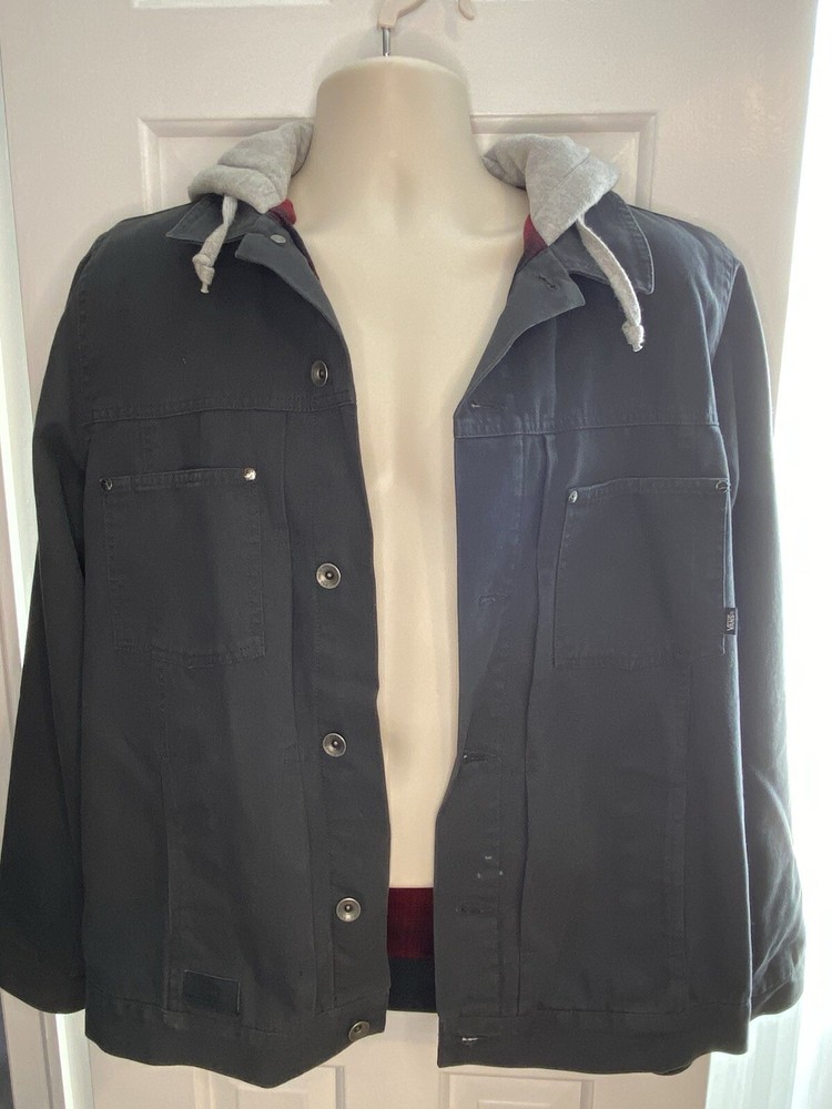 VANS Mens Gray Hooded Jacket with Red Flannel Lining - Medium
