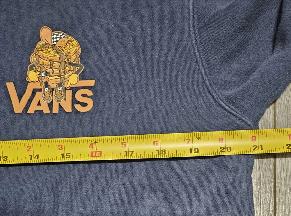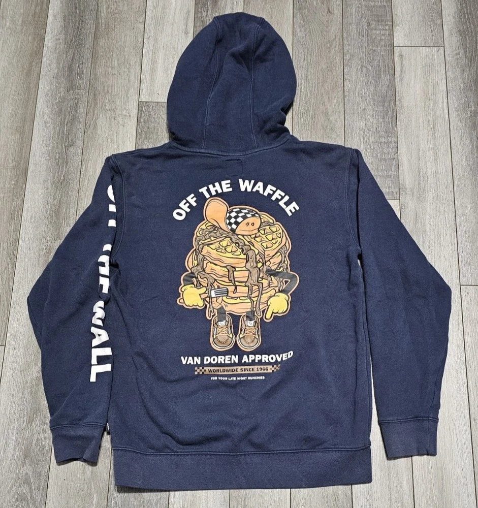 This VANS Off The Waffle Pullover Hoodie Jacket is perfect for men who want to stay warm and stylish during the colder seasons. The hoodie comes in a dark blue color with a logo accent and a drawstring closure. It is made of cotton material and has a mid-length jacket/coat design. The hoodie has a relaxed fit, making it comfortable to wear while skateboarding or performing any casual activity. It also features hooded and pocketed designs, making it a practical choice for anyone who wants to keep their hands warm and their belongings secure. This unit is machine washable and is a great addition to any wardrobe.