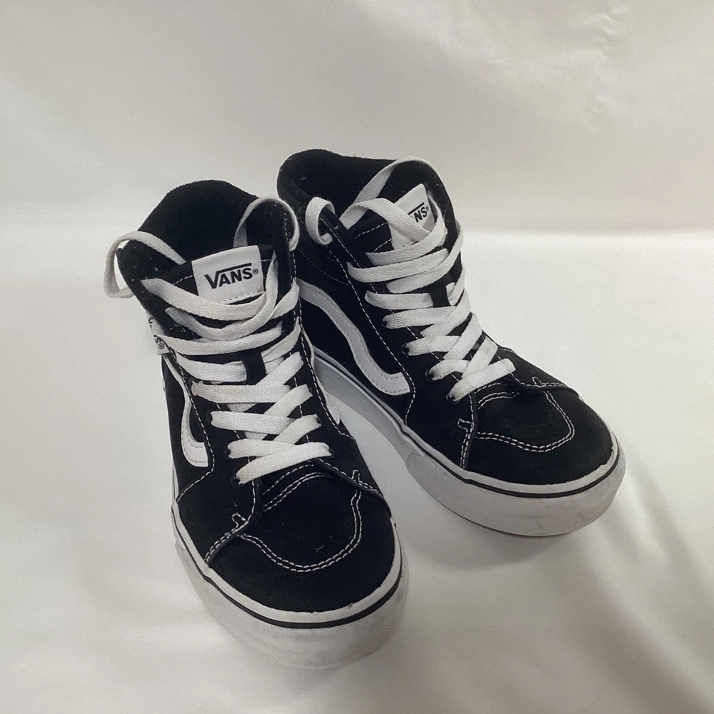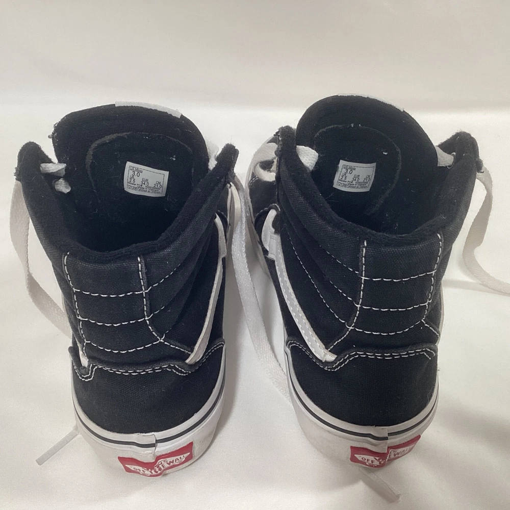 VANS Off The Wall Sk8-Hi Skate Shoes High Top Sneaker Black Lace Up Kids Size 3 Pre-owned in Good Condition. Please see photos for quality, condition and size details. 157B3/6