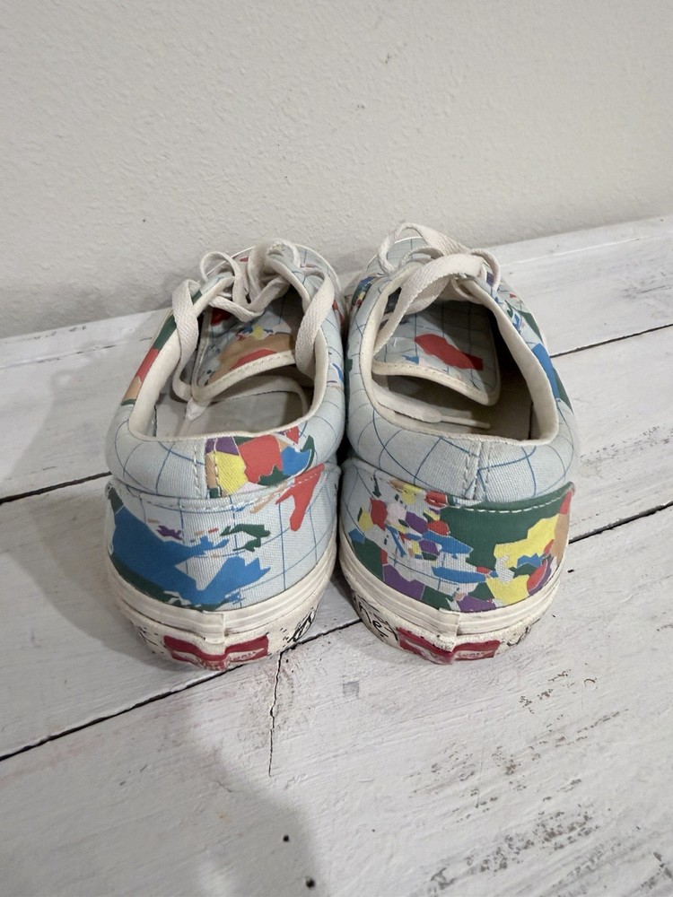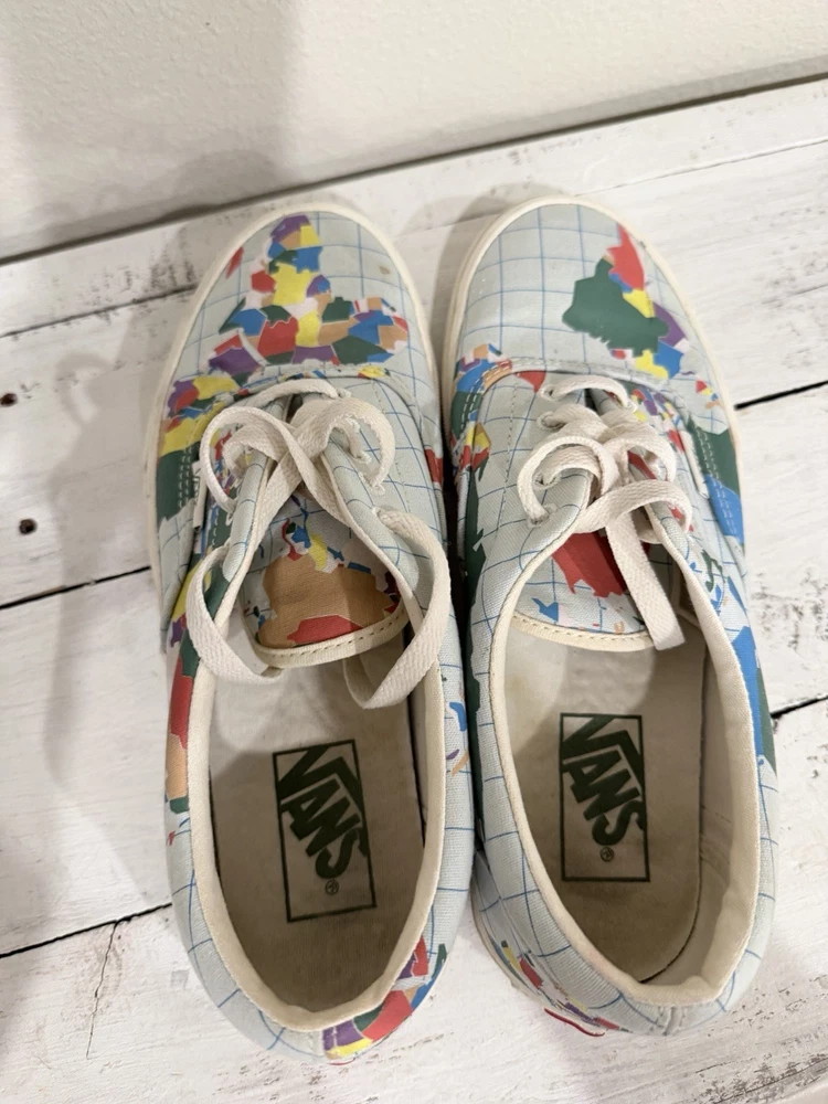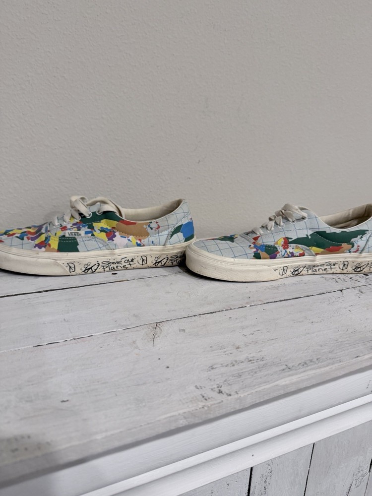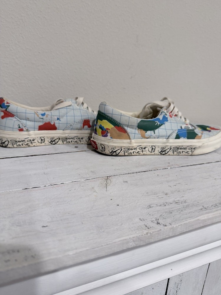 The VANS Save Our Planet x Era World Map Men's Sneakers are a stylish and environmentally-friendly footwear option for both men and women. Featuring a low top design with a lace-up closure, these athletic sneakers are perfect for the spring season. The multicolor map theme adds a unique touch to the product, making it a standout choice for those looking to make a statement with their footwear. Made with quality materials and a durable construction, these VANS Era sneakers combine fashion and function for a versatile addition to any wardrobe.