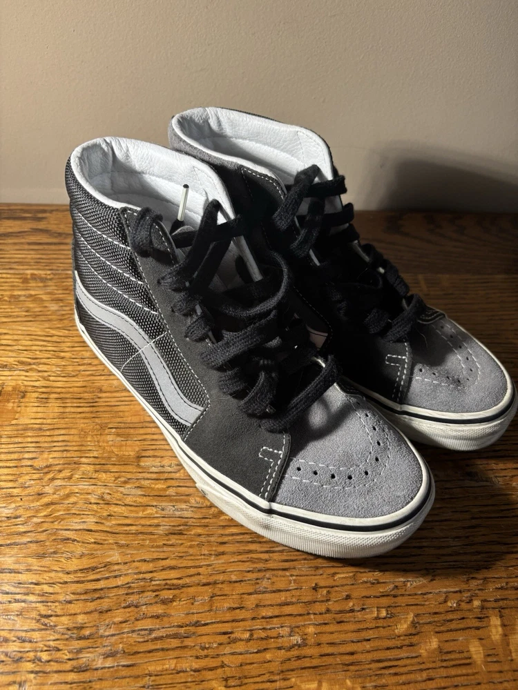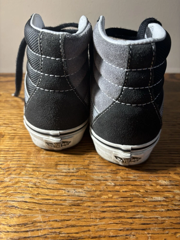 Step up your skateboarding game with these stylish VANS Sk8 Hi Skate sneakers. The black and gray colorblock pattern adds a touch of edginess to your outfit, while the lace-up closure ensures a secure fit. The rubber outsole provides excellent traction, making them perfect for cruising around town or hitting the skate park. These sneakers are designed for both men and women, with a Men's UK shoe size of 3 and a US shoe size of 4, Women's US 5.5. The suede upper material is comfortable and durable, and the VANS Sk8 model is a classic that will never go out of style. Whether you're a seasoned skater or just starting out, these sneakers are a great addition to your collection.
