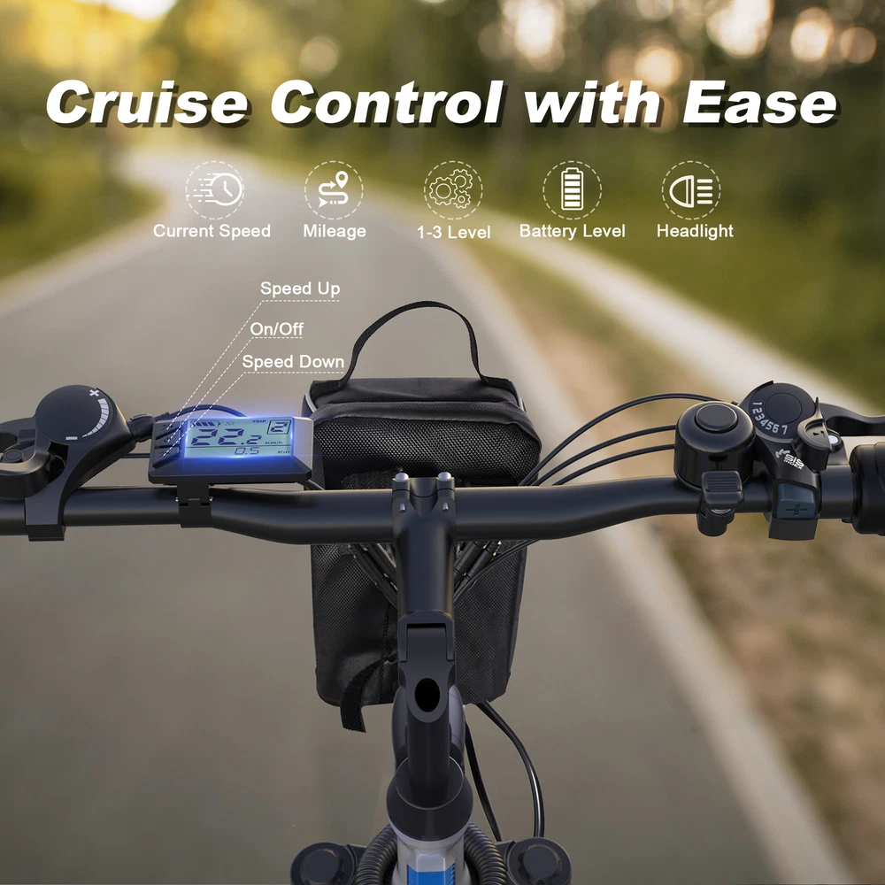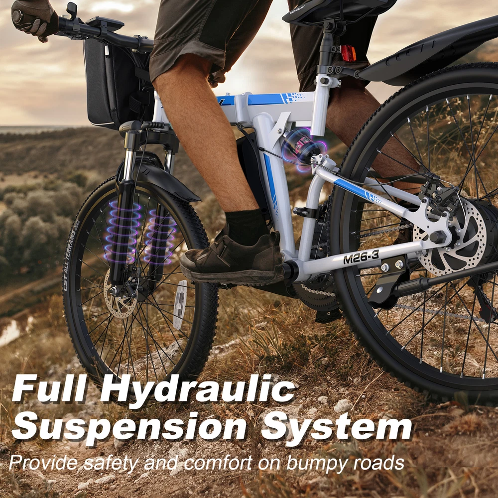 ๐ฅ๐๐ฑ๐ข๐๐ข๐ฅ๐ข๐ญ๐ฒใ:Elevate every journey into a thrilling adventure with 3 dynamic riding modes (pure electric, pedal-assisted, and sport) complemented by advanced 21-speed gears. Seamlessly adapt to any terrain, from the bustling city streets to the rugged mountain trails. Embrace the freedom to explore and unleash your inner thrill-seeker. ๐ต๐ปใ๐๐ข๐๐ ๐ข๐ง ๐๐จ๐ฆ๐๐จ๐ซ๐ญ, ๐๐ซ๐ซ๐ข๐ฏ๐ ๐ข๐ง ๐๐ญ๐ฒ๐ฅ๐ใ: Featuring efficient dual front fork hydraulic suspension and a top-tier dual disc brake system, ride with unparalleled comfort and safety. Enhanced with bright LED lights and a clear LCD display, this ebike merges functionality with flair, ensuring you stand out in any setting. ๐ต๐ปใ๐๐๐ฌ๐ฌ๐ฅ๐-๐