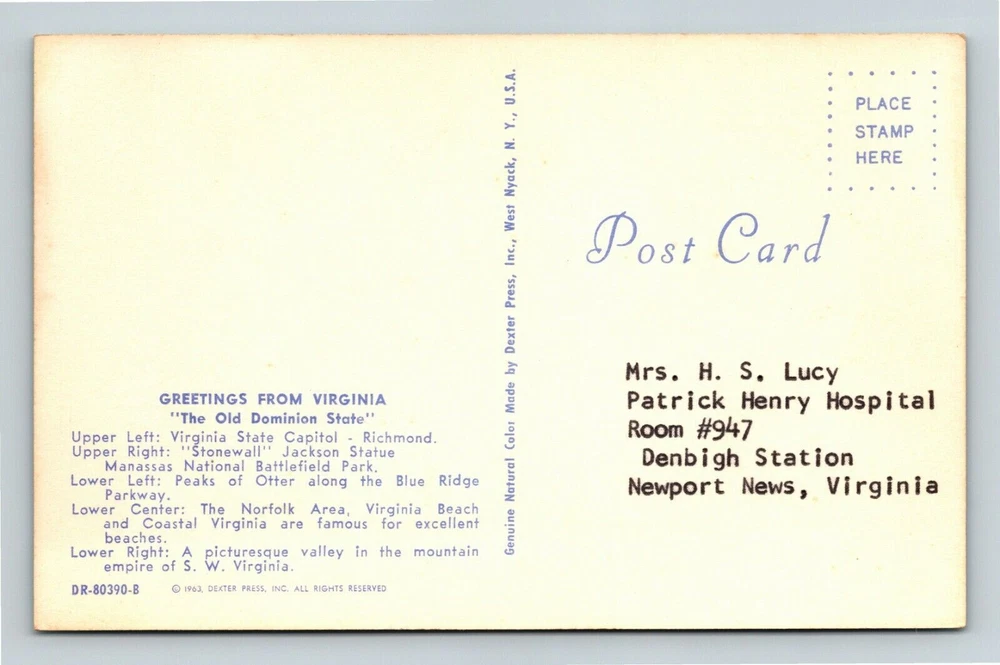Country: See Image Region: See Image Size: Standard (5.5 x 3.5 in) Country/Region of Manufacture: See Image Subject: Cities & Towns Continent: See Image Unit of Sale: Single Unit Original/Licensed Reprint: Original Era: See Image Type: See Image Theme: Cities & Towns Postage Condition: See Image City: VA-Virginia,