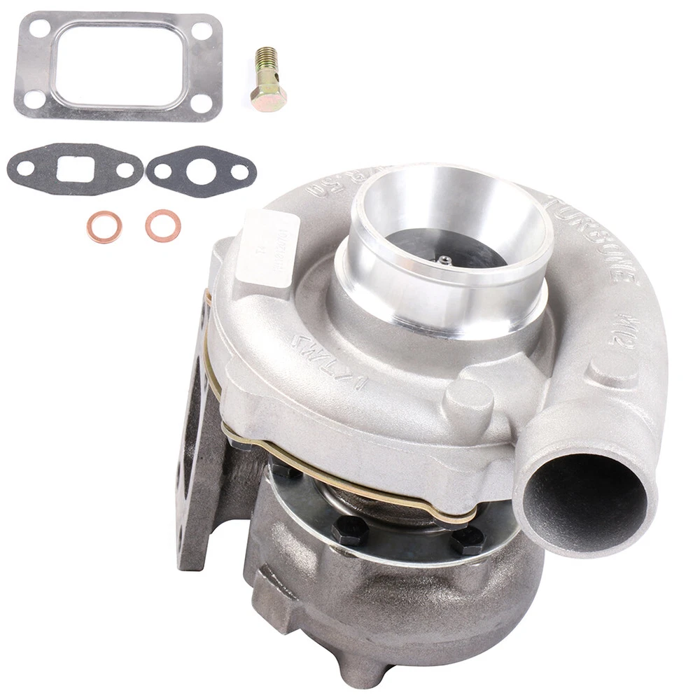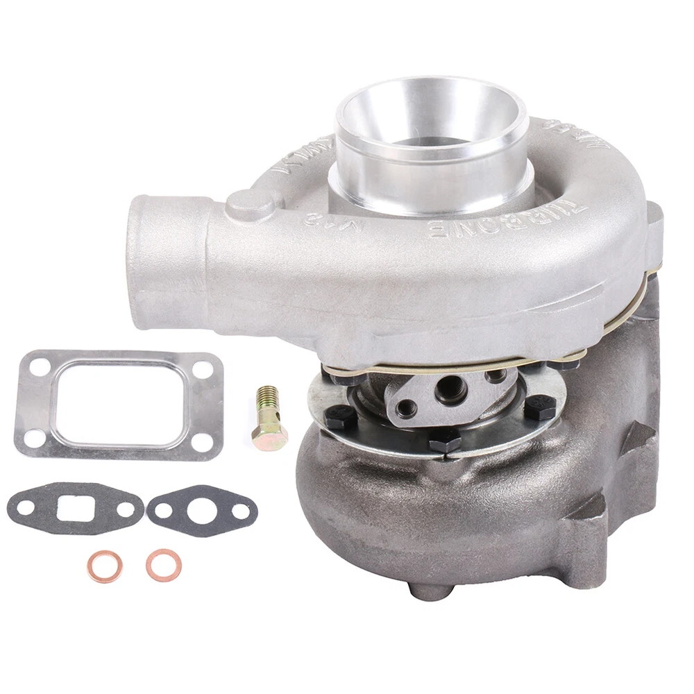 INITIAL INSPECTION AND GENERAL CARE Carefully inspect the air cleaner, air cleaner duct, and the exhaust manifold for any foreign material. Objects left in these areas can severely damage the turbocharger immediately on engine startup. Remove old gaskets and left-over material from the exhaust manifold, the oil supply line and oil drain line flanges. Inspect these surfaces for cracks, flatness, or erosion. Inspect the oil supply and drain lines for degradation and cracking. Make sure that there are no kinks or any other type of restriction or clogging in either line. FINAL INSTALLATION V-BAND Turbo Turbocharger T3 T04E .63 A/R 73 Trim Internal Wastegate 420+ HP INITIAL INSPECTION AND GENERAL CARE Carefully inspect the air cleaner, air cleaner duct, and the exhaust manifold for any foreign material. Objects left in these areas can severely damage the turbocharger immediately on engine startup. Remove old gaskets and left-over material from the exhaust manifold, the oil supply line and oil drain line flanges. Inspect these surfaces for cracks, flatness, or erosion. Inspect the oil supply and drain lines for degradation and cracking. Make sure that there are no kinks or any other type of restriction or clogging in either line. FINAL INSTALLATION Install the turbocharger, taking care to ensure that no dirt or foreign material enters the turbocharger openings. Always, use new gaskets and O-rings (where applicable). Do not connect the oil supply line or the air cleaner duct yet, see later steps. Pre-lube the turbocharger by pouring clean engine oil into the oil inlet hole of the turbo. With your fingers, spin the compressor wheel several times to coat the turbocharger bearings with oil. Pour more oil into the oil inlet hole to top it off. There may be some drainage, but this is of no concern. Connect the oil supply line and the air cleaner duct. Check for proper crankcase oil level. With the fuel shut off to prevent engine start, crank the engine for 10-15 seconds, or until the gauge shows an oil pressure build up. Start the engine and let it idle for 5-10 minutes. Do not rev the engine during this time. Check the installation for any oil leaks. The installation tips listed here are general guidelines that apply to all turbos and do not include vehicle-specific details. Please refer to the authorized original equipment service manual for detailed installation instructions. If you do not have the experience, proper tools or manuals, please seek the services of a qualified technician. 6 Ways to Protect Your Turbo Engine 1. Regular Oil Maintenance For the best performance from a turbocharger, change the oil at least every 5,000 miles. 2. Warm Up the Engine For the first 10 minutes of driving a cold car, go easy on the accelerator pedal to limit the strain on the oil pump and prevent unnecessary wear and tear on the turbo system. Wait at least 10 minutes before going full throttle, or watch the oil gauge for when it’s reached its optimum temperature. 3. Don’t Overstep the Limits of the Turbo when Cruising When cruising around town or on the motorway, try not to jab the accelerator. Instead, ease the power on slowly to give the turbo a chance to start spinning freely, and use the accelerator sparingly to maintain your speed. While turbos are rigorously stress-tested, and should last the lifetime of the engine, regular bouts of aggressive driving could take their toll, and cause costly issues. And remember – not only will gentle cruising spare your turbo, it’ll give you great fuel economy, too. 4. Use Your Gears to Overtake Whether you’re driving up a long hill, overtaking on an A road or accelerating into the fast lane on the motorway, downshifting into a lower gear is a safer long-term option than relying purely on the turbocharger. Gears were built for aiding performance up and down the rev range, so using a combination of gear changes and turbo boost will help to limit the wear and tear suffered through the turbo system. 5. Let the Engine Cool After Driving Turbos produce a lot of heat while driving, and if you turn off the engine straight away, this residual heat will boil the oil in the turbo system, leading to a build-up of carbon particles that can cause corrosion and premature engine wear. After driving, get in the habit of leaving the engine running for a couple of minutes at idle, which will cool the turbo enough to switch off the engine without cooking the engine oil. 6. Don’t Blip the Throttle Before Turning the Engine Off Whether you’re parking or simply want to hear the whizz of the turbo charger, don’t blip the throttle right before turning the ignition off. Pressing the accelerator causes the rotating turbines in the turbo to spin; when the engine is switched off, the flow of oil lubricating these moving parts will stop, but the turbines won’t stop spinning. This puts strain on the bearings, causing friction and a build-up of heat which can lead to a failure in the turbo system. You can reduce this risk by following the advice in point five – leaving the engine to cool before switching off the ignition. Item Specifics Brand GDcar Type Turbocharger Placement on Vehicle Front Manufacturer Part Number GDcar103022S123 OE/OEM Part Number T04E .63 A/R Weight 14 LB Manufacturer Warranty 1 Year Universal Fitment Yes Superseded Part Number T04E .63 A/R Interchange Part Number T04E .63 A/R Shipping 1. Orders processed within 24 hours of payment verification.(if you want cancel orders or change address pls contact us within 6 hours after payment,or we are not responsible for shipping a replacement.) 2. We only ship to confirmed PAYPAL addresses. Your PAYPAL address must match your Shipping address. 3. Fast shipping:All our packages use USPS First Class/UPS/Fedex... Package Service 4. If you have not received your shipment within 15 days from payment , please contact! Return 1. You have 30 days to contact us and 10 days to return it from the date it was received. If this ite