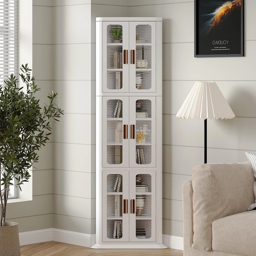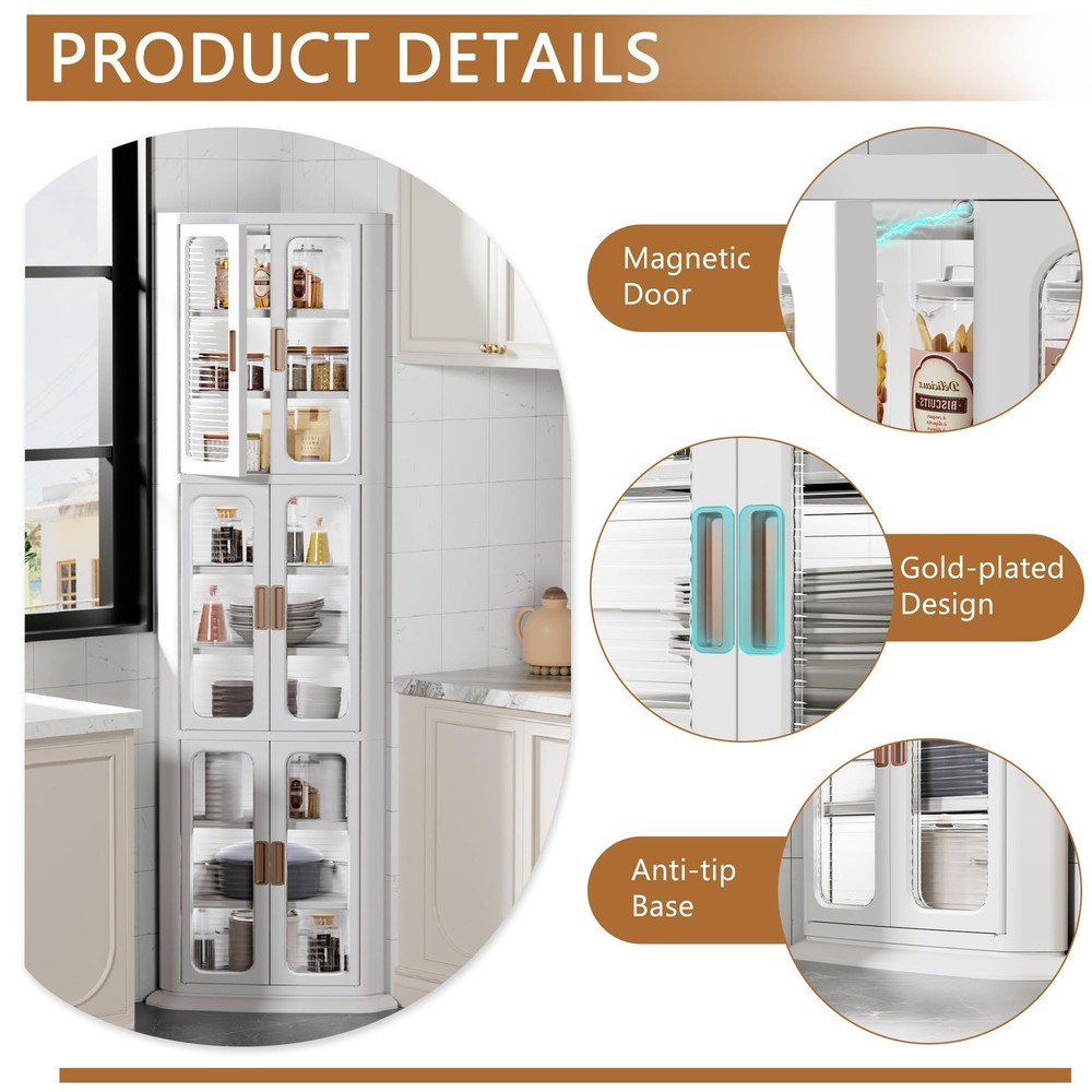 Maximize Space: VECELO corner kitchen cabinet organizer utilize overlooked corner spaces, perfect for kitchen, living room, bathroom and more Boundless Capacity: This corner kitchen cabinet is designed with spacious storage, maximizine vertical space. Each shelf features 2 adjustable shelves, allow to customize the height to fit items, keep everything organized Waterproof & Dustproof: This plastic storage cabinet with doors and shelves features adhesive doors with tough closing, making it waterproof. The corner pantry cabinet keeps dust out to ensuring stay clean Stable & Secure: The 90° design allows the tall corner cabinet to fit snugly in corners, with a sturdy base and anti-tip device for maximum safety Easy to Clean: This kitchen corner cabinet features a smooth, waterproof and dustproof surface, make cleaning effortless. Simply wipe with a damp cloth to easily remove stains