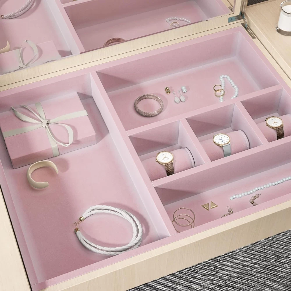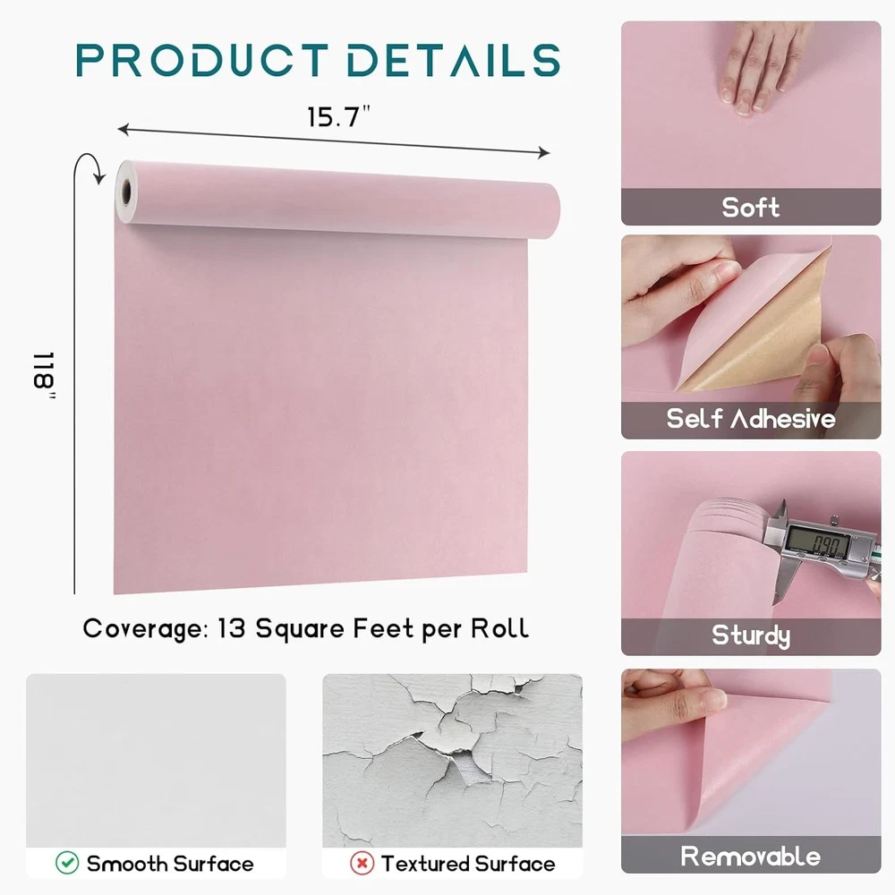 Self adhesive velvet drawer liner, felt flocking liner, velvet fabric roll peel and stick SIZE: 15.7'' wide x 118'' long each roll velvet flocking liner(40cm x 3m), thick fabric vinyl, baby pink velvet wallpaper. Made of durable velvet fabric, tear resistant, sturdy for long term use FEATURE: Self adhesive velvet drawer liner, no glue is required. Soft and velvety, protect your jewelry from scratching, sound-absorbing. Removable without sticky residue left behind EASY TO USE: Adhesive drawer liner, easy to cut to size, easy to work with, forgiving to reposition without bubbling and creasing. Low maintenance, affordable solution to improve the look of jewelry drawers MULTIPURPOSE: Self adhesive velvet flocking liner for jewelry drawer, jewelry box, bedroom dresser, drawer liners, shelf liners, arts and crafts, upholstery, bookshelves, cabinets, furniture, dollhouse, picture framing, display backsplash, backdrop, tool boxes, DIY projects