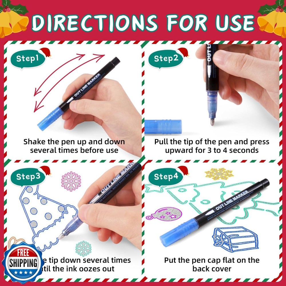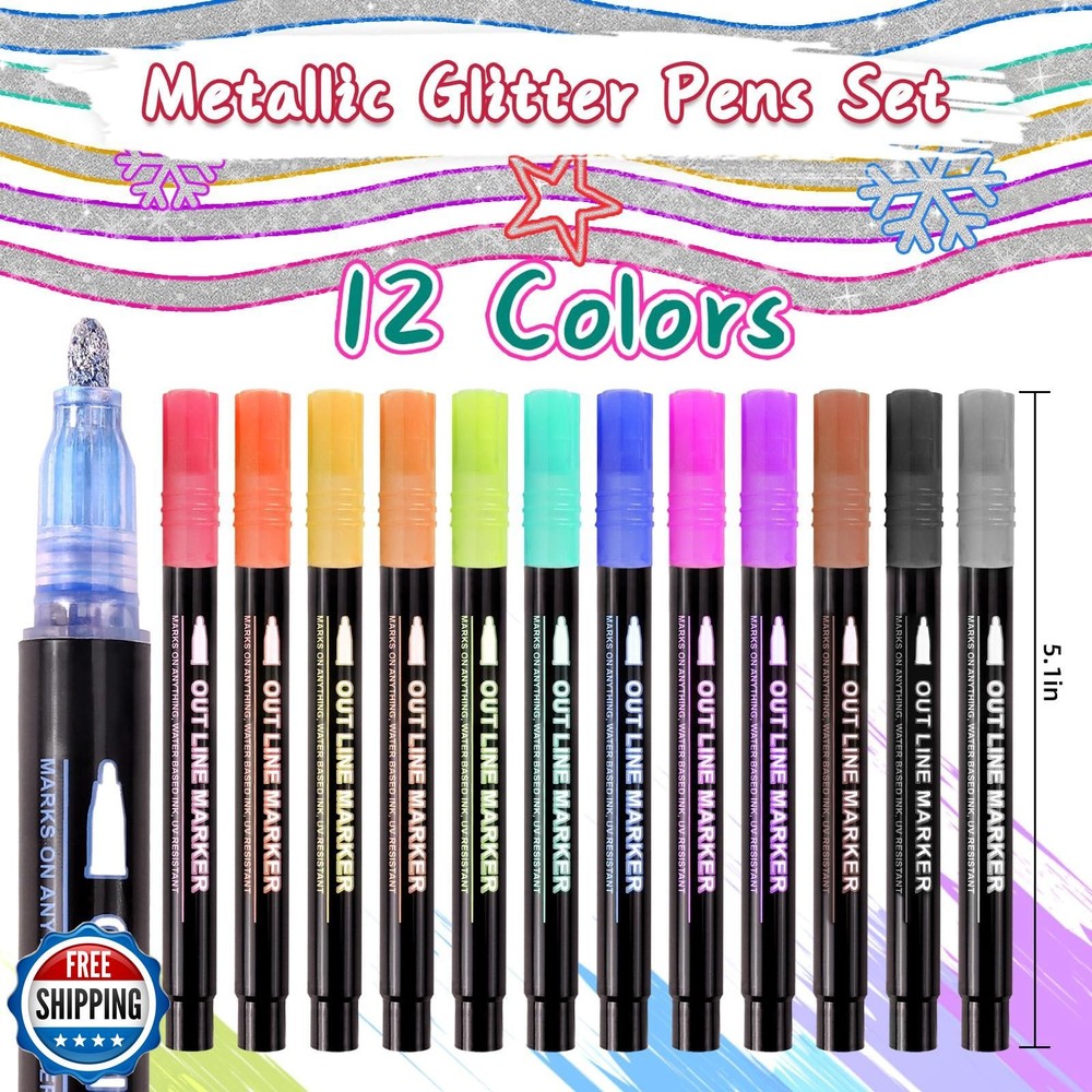 VEKDA Shimmer Markers for Kids Metallic Glitter Pens, 12 Colors Double Line Outline Pens Set for Teen Girl Gifts Art Supplies Trendy Stuff, Arts and Crafts Features Colorful combination: This glitter markers set includes 12 colors, non-toxic and odorless, bright colors, smooth writing, the metallic markers can be used for a long time, meeting your needs for various artistic creations. Outline markers are essential school item for students Multiple writing effects: This art markers pen features a unique double outline design. When you write on light colored paper, outline pens automatically displays two lines, silver and colored edges. When you write on dark colored paper,glitter markers only displays silver. Different effects create more possibilities for your creation Widely used: This sparkling pen can be used on various surfaces and is perfect for DIY crafts, writing gift cards, birthday wishes, message boards, blessing words, classroom activities,school craft supplies for kids, markers for school. It is also an ideal gift for teen girls , family and friends How to use: These glitter pens are very easy to use: you just need to shake the glitter paint pens with the lid closed to mix the ink thoroughly, then press the outline metallic pen tip down on the paper and wait for the ink to stay on the tip. Then you can unleash your imagination and draw beautiful characters. To extend the use time, please cover the pen lid after use Ideal Gift: Our metal double line marker pen can be used to outline patterns, and borders, making your artwork more unique and adding sparkling decorations to your creations. Especially suitable for DIY enthusiasts, special arts and crafts are great festival gift choice for you Shipping Free & Fast Shipping: We offer free shipping to most of the USA with a normal delivery time of 3-7 days. However, due to the current situation, additional delivery time (up to 3 weeks) may be required for some items. Alternative Carriers: We may use alternative carriers (e.g., USPS, FedEx, UPS) to ensure your package arrives safely and on time. Due to the use of multiple carriers, we are unable to provide a tracking number automatically. Handling Time: Orders are processed and shipped within 1-2 business days of receiving cleared payment. Shipping Restrictions: Shipping to Alaska, Hawaii, Puerto Rico, Guam, and other US territories may incur shipping charges or delivery restrictions. Please contact us before ordering, or your order can be refunded/cancelled. State Restrictions: Certain items may not be shipped to California due to state regulations. Contact for Tracking Updates: If you require tracking updates or have any concerns about the delivery of your order, please feel free to contact us, and we will be happy to assist you. Return Policy 30-Day Hassle-Free Returns: If you are not completely satisfied with your purchase, you can return the item for free within 30 days of receiving it for a full refund or exchange. Easy Return Process: Contact us, and we will provide you with a prepaid return shipping label and detailed instructions. No Restocking Fee: There are no restocking fees for returns. However, the buyer is responsible for return shipping costs if the return is not due to a seller"s error. Refund Processing: Refunds will be processed within 1 business day of receiving the returned item in its original condition. Feedback Your feedback is extremely important to us. We strive to provide the best products and customer service possible. If you are satisfied with your purchase, please take a moment to leave us a positive review. If you have any concerns or issues with your order, please contact us before leaving negative feedback. We are committed to resolving any problems and ensuring your satisfaction. Contact Us If you have any questions or concerns, please feel free to reach out to our customer support team. You can contact us through the eBay messaging system. We are available Monday to Friday, 9:00 am to 5:00 pm EST, and we will do our best to respond to your inquiry within 24 hours. Thank you for supporting our small family business!