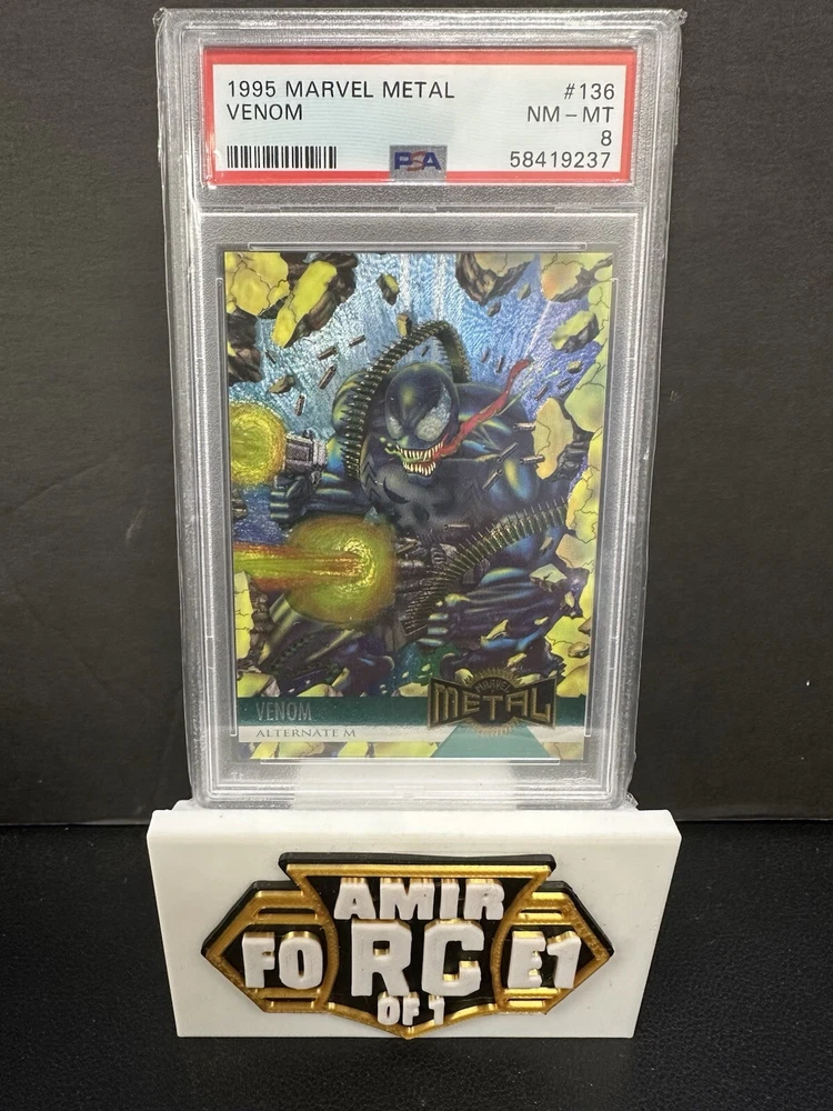 Card Number: 136 Character: Venom Features: 1st Edition, Base Set, Chase, Collectors Edition, Exclusive, Hologram, Insert, Limited Edition, Parallel/Variety, Serial Numbered, Venom Card, PSA GRADED, Rare, HOLO, HOLOFOIL Manufacturer: Fleer Type: Non-Sport Trading Card Year Manufactured: 1995 Card Size: Standard Material: Card Stock Subject Type: Comics Franchise: Marvel Language: English Card Name: Venom Parallel/Variety: Holofoil Genre: Superhero Set: 1995 Marvel Metal Movie: Venom Autograph Format: Cut TV Show: Spider-Man