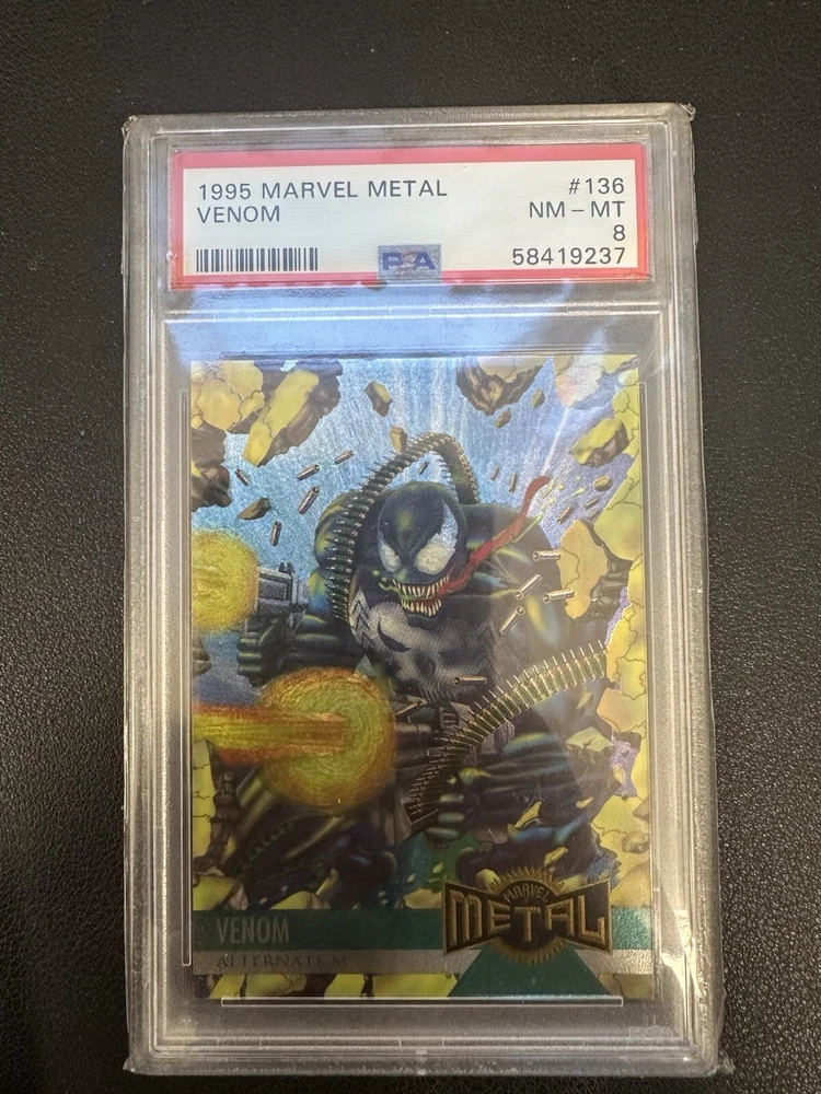 VENOM PSA GRADED RARE 90’s MARVEL METAL CARD πŸ”₯ HOLO FOIL SP - PUNISHER POSESSED
