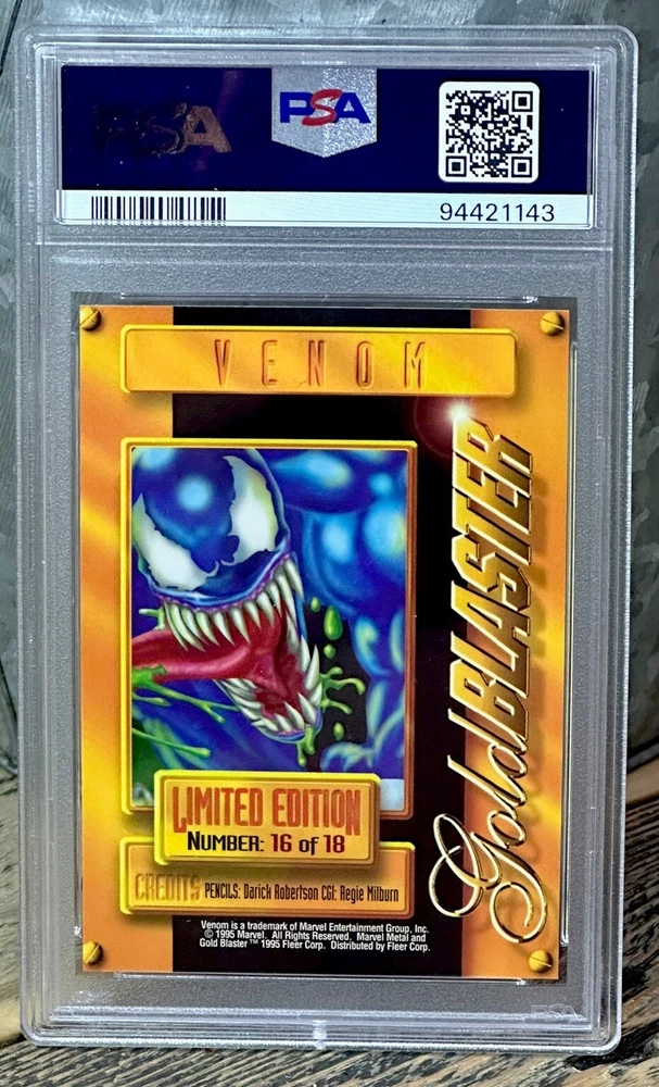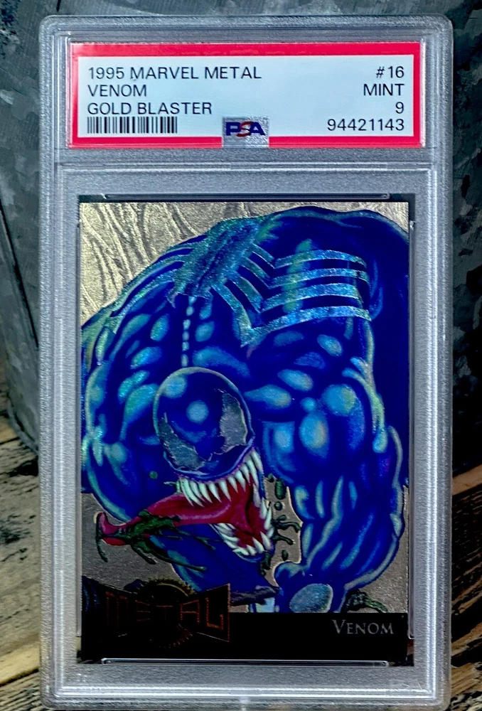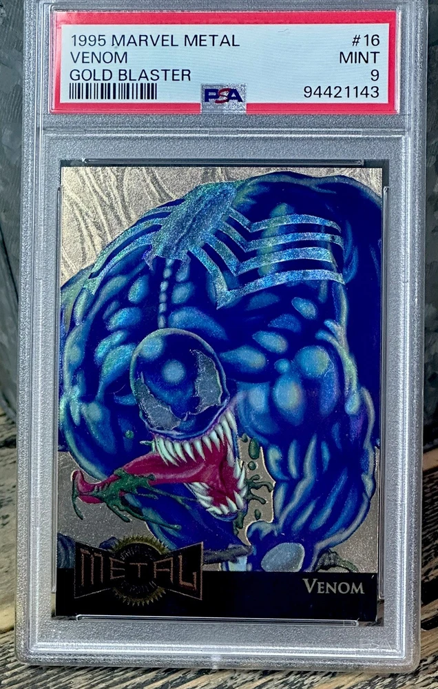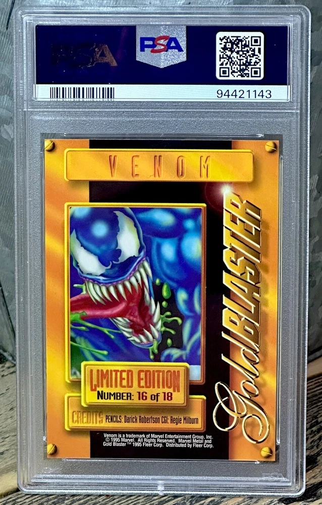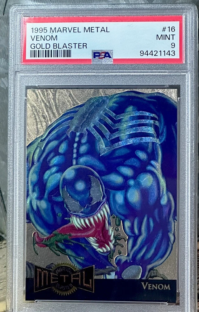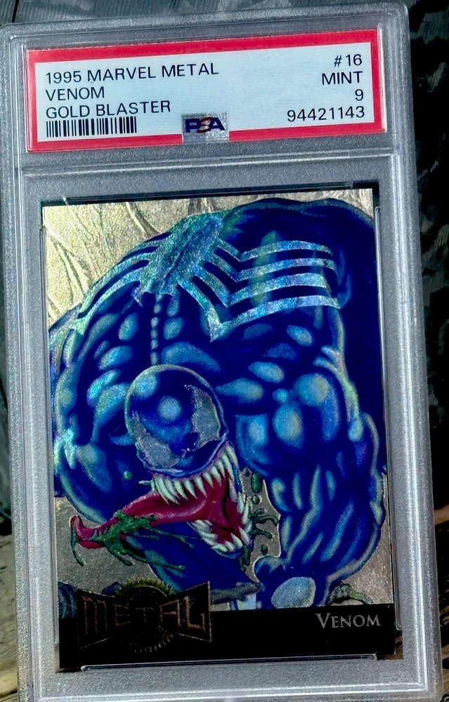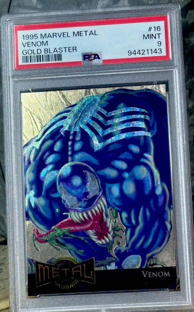 VENOM PSA GRADED RARE 90βs MARVEL METAL GOLD HOLO FOIL SP INSERT CARD π₯