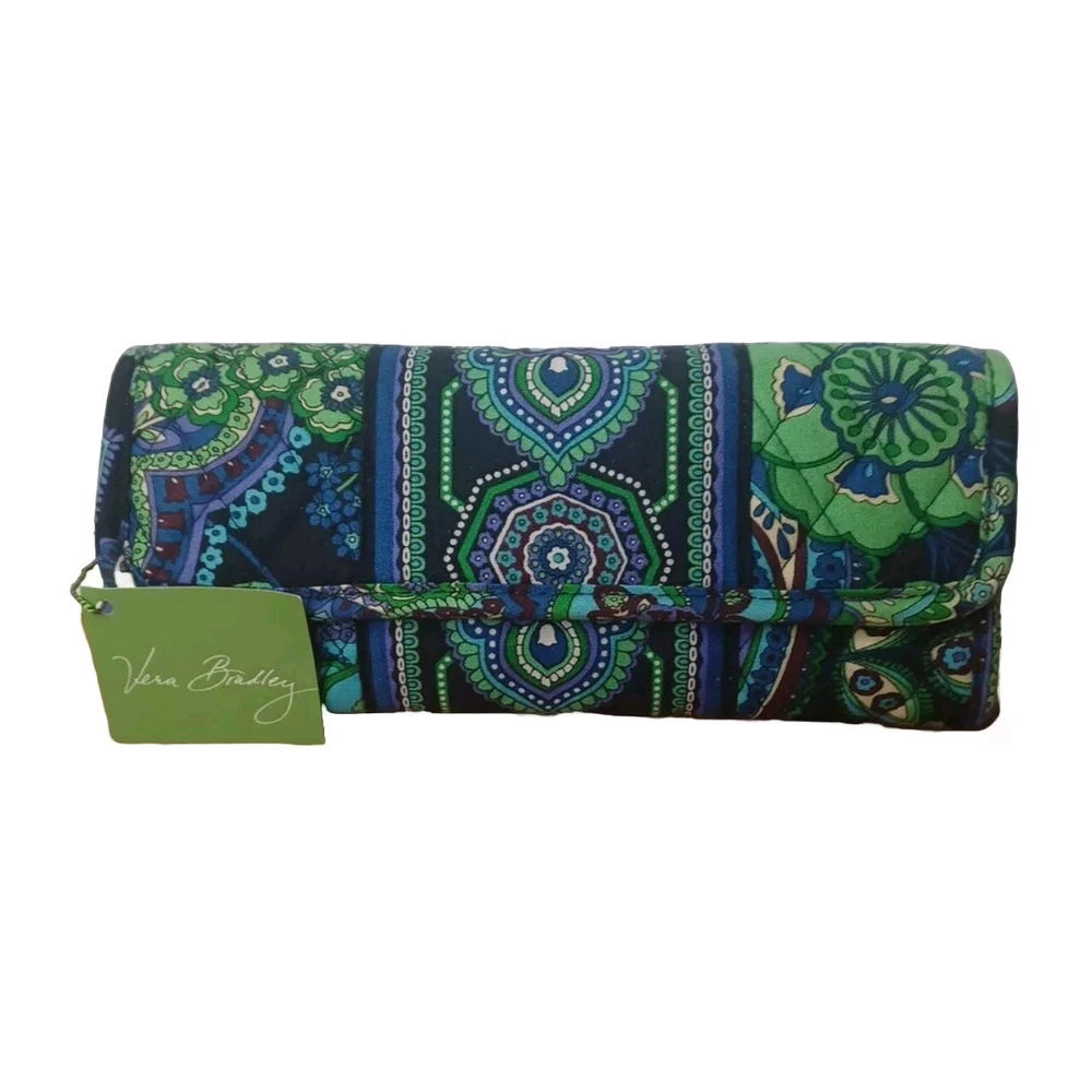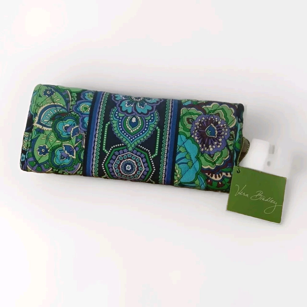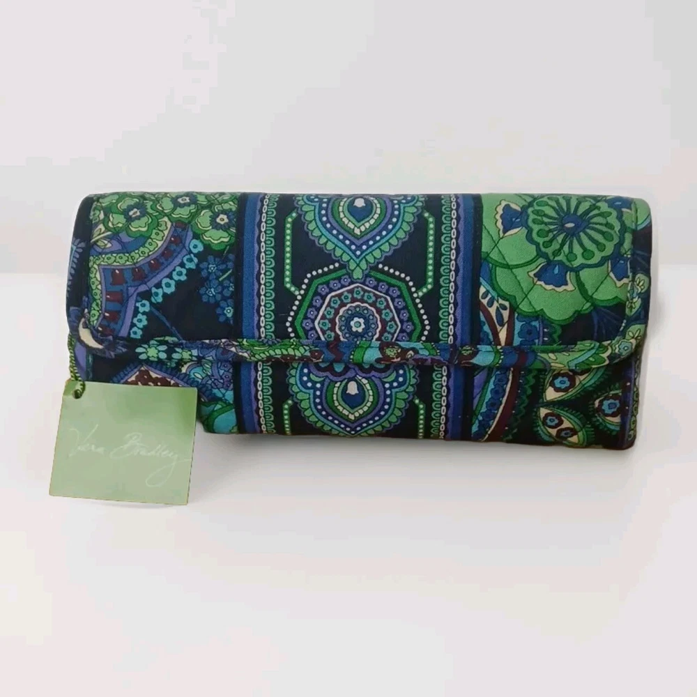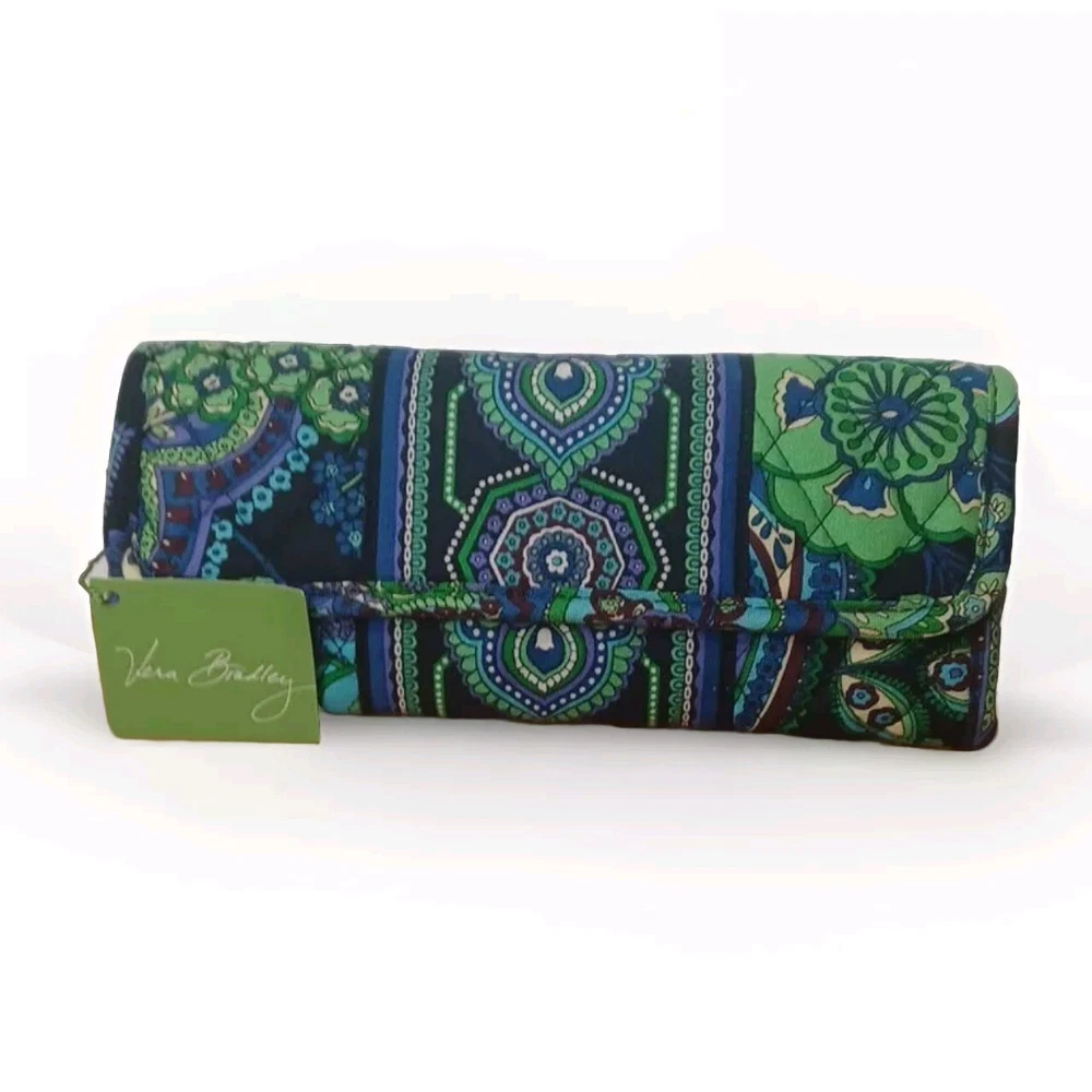 This Vera Bradley Trifold Wallet in Blue Rhapsody features a sleek design with a strap accent, perfect for women looking for a stylish accessory to carry their essentials. Made of cotton material, this wallet offers functionality with its trifold design, ideal for organizing credit cards and cash. The vibrant Multi-Color pattern adds a trendy touch to the wallet, making it a fashionable choice for everyday use. Brand new with tags, this Vera Bradley wallet combines practicality with a touch of flair.