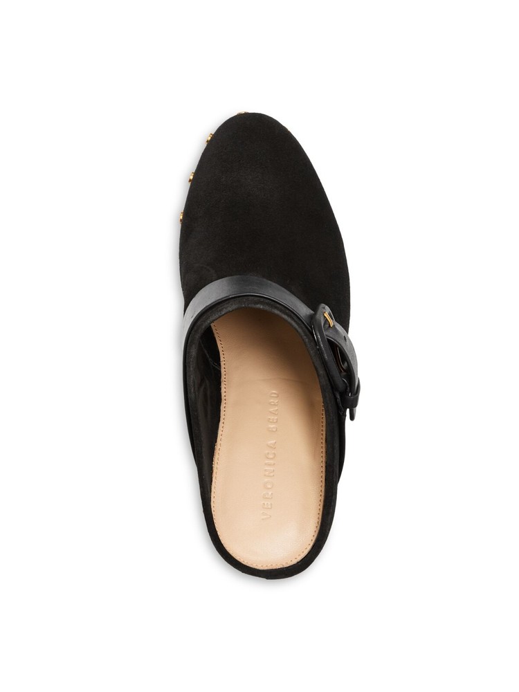 VERONICA BEARD Black Wood Platform Buckled Dacey Clogs Size 8.5 M