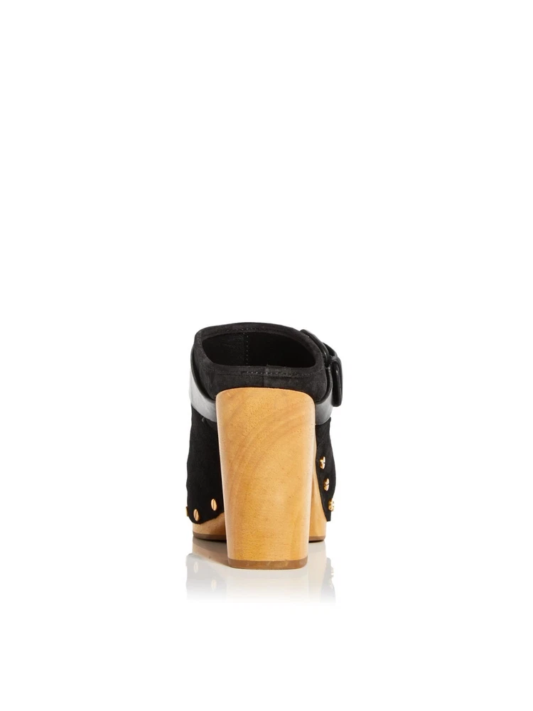 1. Absolutely love these clogs! The wooden platform and buckle detail give them such a stylish edge, while the suede and leather make them incredibly comfortable right out of the box. Perfect for casual outings, and the studded heel adds just enough flair. Spot cleaning is easy, too. A great investment piece—they feel high-end and look amazing!