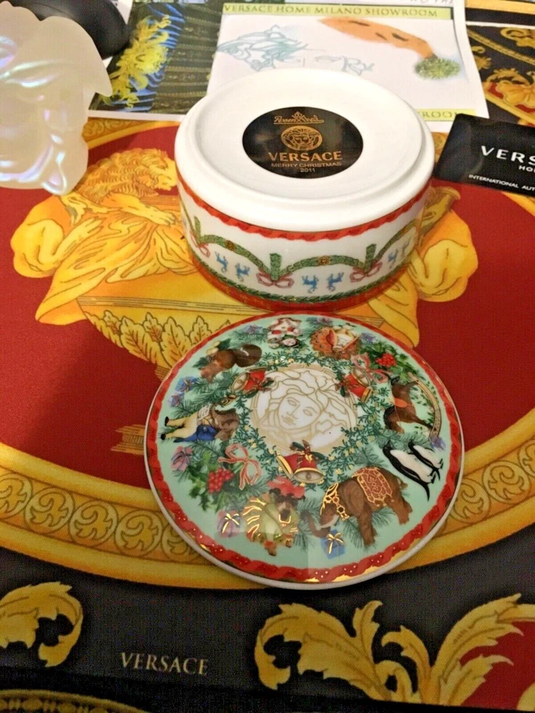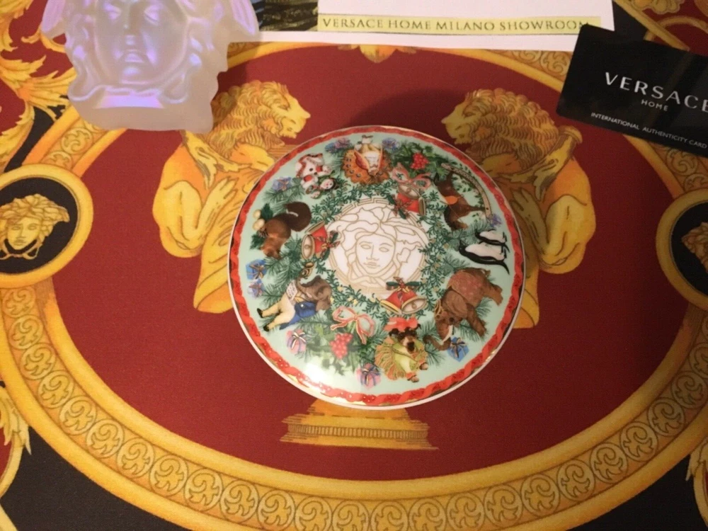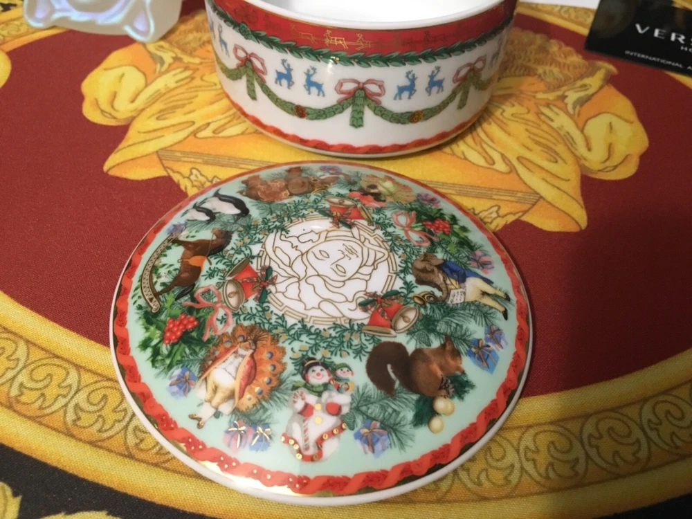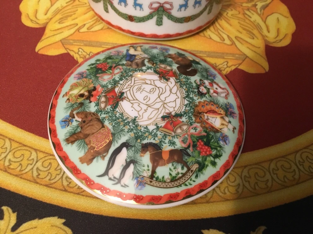 1 VERSACE MEDUSA ANIMALS Trinket BOX with MERRY CHRISTMAS ORIGINAL NO BOX FINE PORCELAIN SIZE 4": INCH WIDE This iconic porcelain JEWELRY BOX a perfect new addition to the elegant Versace Home collection. AUTHENTIC Check out my other items !