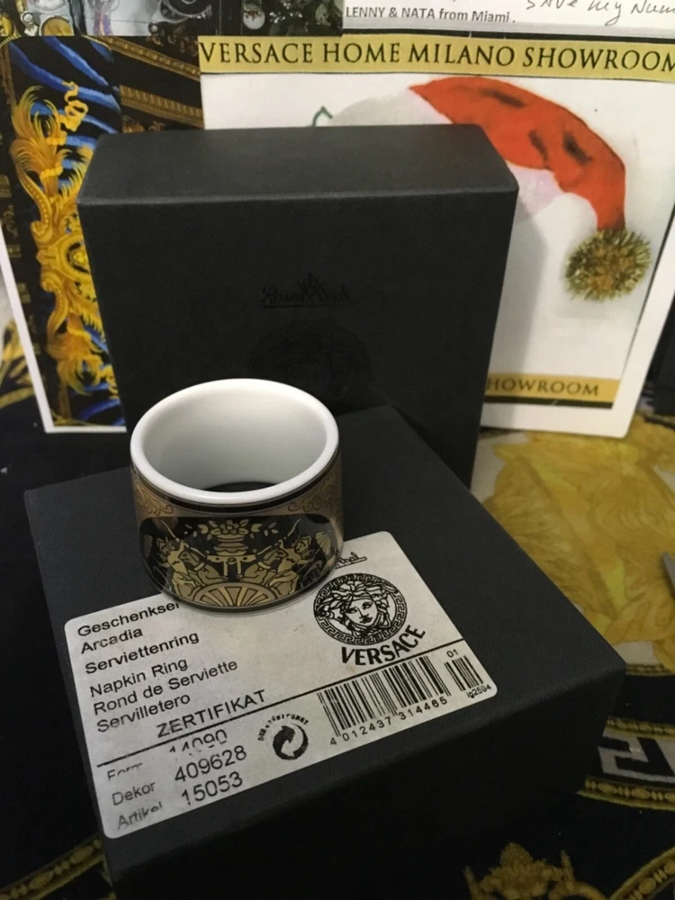 1 VERSACE NAPKIN RING HOLDER ARCADIA GOLD comes in Versace box Discontinued hard to find +++ INSTGRM VERSACEPRIVATECOLLECTOR : : SHIPPING WORLDWIDE BY GLOBAL Discount SHIPPING IF YOU HAVE ANY QUESTIONS PLEASE FEEL FREE TO ASK ANYTIME Check out my other items!