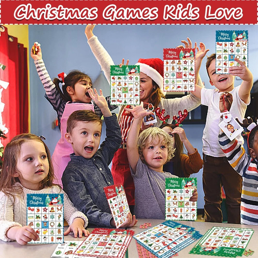 VESPRO 46PCS Christmas Bingo Game Cards for 30 Players Christmas Party Games for Kids Party Classroom Activities Product Details Product Dimensions: 1 x 1 x 1 inches Item Weight: 9.8 ounces Manufacturer recommended age: 3 years and up Manufacturer: VESPRO Christmas Bingo Cards Included:30 sheets Christmas bingo player cards with 24 unique part,24PCS large calling chips,648PCS Bingo marking Chips and a manual.It can make kids adults of all ages and large groups to have a fun time in Christmas party. High Quality:The reusable Christmas bingo games are made of durable cardboard.this set can reused many times.There are many english words on the bingo player cards and calling cards,it can be helpful for the kids to learn and remember words during the card games. Fun Party Supplies:This Christmas party cards game is suitable for classroom game, party game, large groups game,family games or Christmas games, Playing bingo game together is a great chance to increase the relationship between you and your friend and family. Easy to Play:Each player hold a bingo card and some bingo chips,caller hold the calling chips,Then caller randomly call out cards name and the players use the bingo marking chips to mark on the bingo cards,If a player can make a line by 5PCS bingo chips(include free space),he will win the game! Friendly Customer Service:If you have any problems with our Christmas Bingo Sets,please tell us immediately,we have professional person to solve your problem by one-on-one until you are satisfied