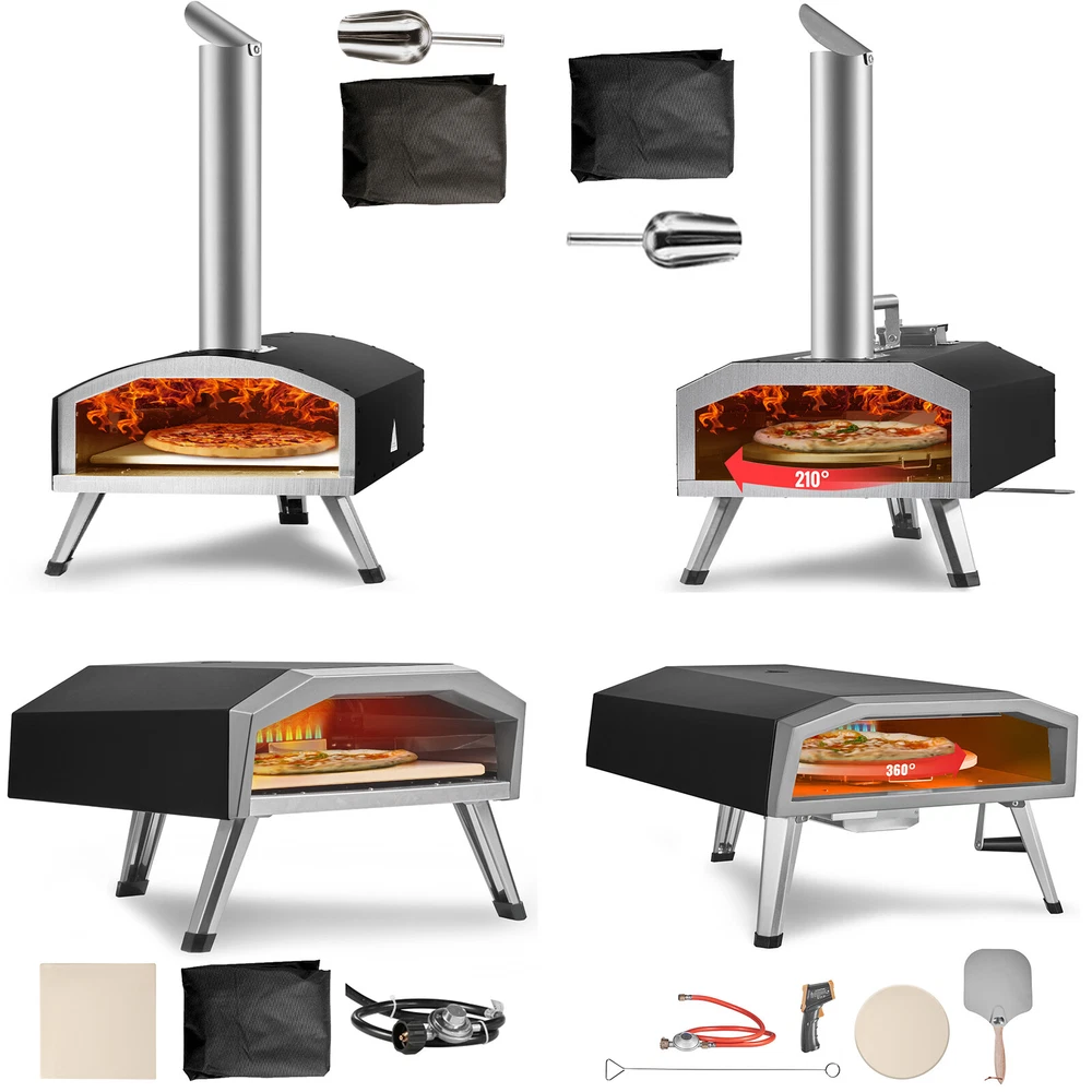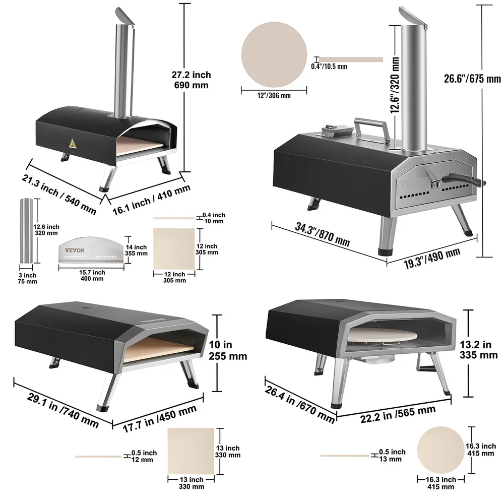 Document Product Description Feast On Your Life with VEVOR Pizza Oven Looking for an amazing addition to your backyard or outdoor gathering? Look no further than our gas and wood-fired pizza oven! With the ability to reach 1000℉ in just 15/20 minutes and bake a 12/13/16 inch pizza in only 90 seconds, you're sure to have a grand feast. Quick Cooking High Temperature Even Heating Multiple Fuels Premium Quality Portable Versatile Key Features Adjustable Chimney Cover The Type A and Type B outdoor pizza oven has an adjustable chimney cover to change the smoke exhaust direction. No more worrying about suffocating smoke. Rotatable Pizza Stone Our Type B and Type D portable pizza oven comes with a 10.5/13 mm thickened cordierite pizza stone. It can be manually rotated to heat pizza evenly and prevent burning. Fold and Go With foldable legs and a waterproof storage bag, you can take the portable outdoor pizza oven and enjoy authentic pizza anywhere, anytime. Here we will provide you with 4 types of Outdoor pizza oven for your option: 12in wood pellet, 12in gas and wood pellet, 13in gas, 16in gas. Features & Details Bake Like Never Before: Are you tired of pizza ovens that just don't do what they are supposed to? Our outdoor pizza oven heats up to 1000℉/540℃ in just 15/20 minutes and bakes a tasty 12/13/16 inch pizza in 90 seconds or less! Plus, it's versatile enough to cook all kinds of meats, fish, and delicious vegetables. More Fuel Options: Our portable pizza oven is designed with both wood and gas burners, so you can use wood pellets, wood chips, charcoal, or gas as fuels. Choose wood for a smoky, aromatic flavor or gas for low-maintenance cooking. With its large 480 g fuel tray, you'll need to feed it less often. Retain Heat for Extra Taste: The portable pizza oven for outside is CSA certified and built with 430 stainless steel inner frame, ceramic fiber insulation cotton, and cold-rolled sheet shell for enhanced quality. This 2/3-layer thermal insulation structure provides the best heat preservation, allowing you to enjoy your food quickly. Portable Outdoor Oven: This pizza oven boasts a lightweight 21.2/28.9/24.3/50.7 lbs, making it easy to carry to your backyard, campsite, beach, or any outdoor gathering place. Its foldable legs make it even more compact, and we also provide a wood pellets shovel and carry bag for added convenience. Become a Chef in No Time: Ready to use straight out of the box! Simply connect to a gas tank, turn on the gas, slide in the pizza, rotate the pizza stone to bake evenly, and enjoy delicious stone-baked pizza. Or simply fill the fuel tray with wood pellets, light a fire, slide in the pizza, turn it often, and enjoy delicious stone-baked pizza. Cooking outdoors with our portable outdoor pizza oven is that simple. SHIPPING ABOUT US PAYMENT RETURNS CONTACT WARRANTY Welcome to our eBay store. As a leading and emerging company in manufacturer and exporting business, we are specialized in Business and Industrial Products, Sporting Goods, Pet Products, Home and Garden products for more than 10 years. We believe that it is our vision and mission to provide innovative products with best service and competitive price to satisfy you. Our goal is to make sure that you can find exactly what you are looking for and make it easy for you to place your orders. We accept PayPal payment,PayPal Credit,Credit card or debit card and so on. Payment should be completed within 4 (Four) days of auction closing. Or unpaid dispute will be filed for closing auction. We will leave a positive feedback immediately after payment is received. We appreciate a positive feedback as much as you do. If for some reason there is any issue with the purchase, please contact us prior to leaving feedback, we will be glad to work together and provide a satisfying solution. Please be aware that PO Box cannot receive items, please DO NOT fill in the PO Box address. DELIVERY DAYS: 3-7 BUSINESS DAYS 3 BUSINESS DAYS SHIPPING OUT SHIP FROM CA & TX & NJ & GA & NC &OR WAREHOUSE California Warehouse: City of Industry, CA Texas Warehouse : Houston, TX New Jersey Warehouse : Perth Amboy, NJ New York State Warehouse: Perth Amboy, NJ Georgia Warehouse: Austell,GA North Carolina Warehouse: Grove NC Oregon Warehouse: AIRPORT WAY Portland,OR All of our items are backed with a 30-day return policy. We ensure all our items are new and in excellent condition prior to shipping. In case you receive the item that is not to the standards above, please contact us via e-Bay messages. All returns must be in new original condition as received and should be shipped with delivery confirmation Please note that all returns must be pre-approved by us. Unauthorized returns will not be accepted. If you need to return, please check twice to confirm the item not work and contact our customer service representative, let us know the detailed problem and send us some pictures for confirmation. We ONLY accept returns with original package. Please make sure that item has NO man-made sabotage. Used items will not be accepted for return. Email Customer Support: 9:00am-2:00am PST Sunday-Friday All emails will be responded to within 12-24 hours This item comes with 12 months Warranty from the date of customers purchased it. Special circumstances will be listed clearly in the listing. If your item has been damaged in transit or become faulty in warranty period, please email us with pictures or video to show the problem. Please do check everything carefully after you received the parcel, any the damage except DOA (Dead-On-Arrival) would not be covered if it's your fault. Replacement products are provided with the same warranty as the returned products. VEVOR is a leading brand that specializes in equipment and tools. Along with thousands of motivated employees, VEVOR is dedicated to providing our customers with tough equipment & tools at incredibly low prices. Today, VEVOR's products are sold in more than 200 countries and regions with 10 millio