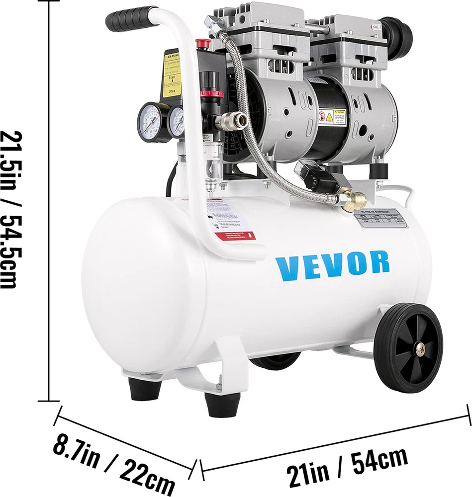 VEVOR 1HP Oil Free Air Compressor 115 PSI w/6.6 Gallon Steel Tank Ultra Quiet