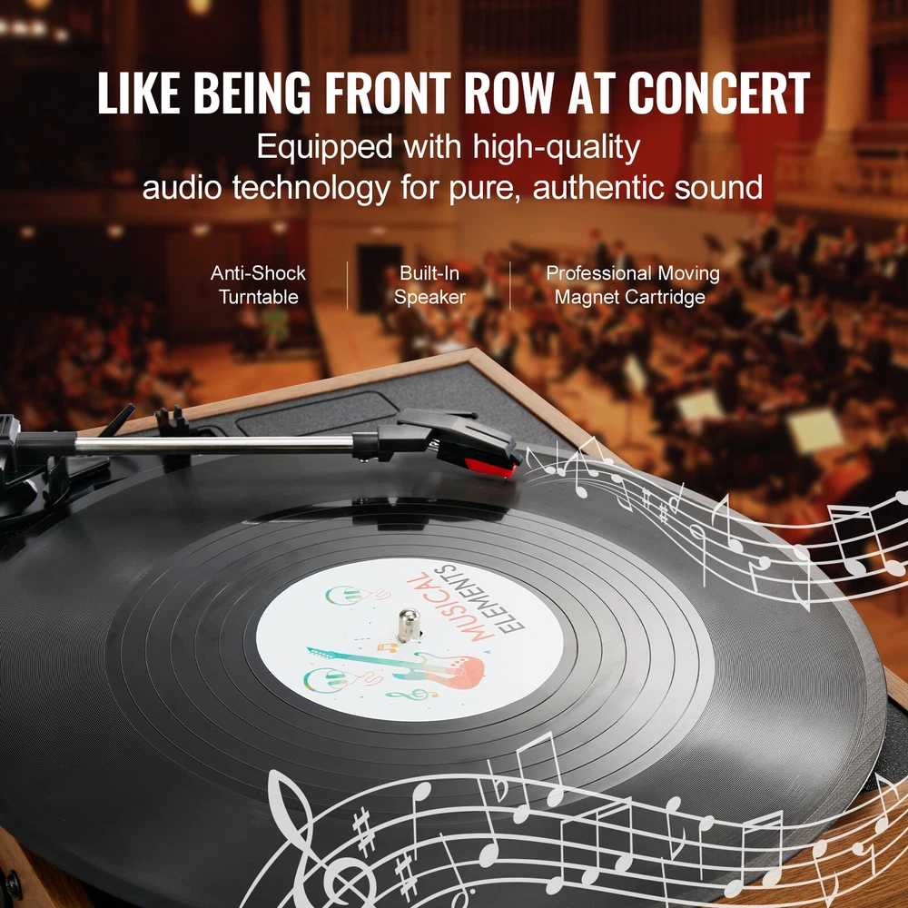 Document Product Description 3-Speed Turntable Bluetooth Vinyl Record Player Our record player supports 33, 45, and 78 RPM, compatible with 7''/ 10''/12'' (18/25/30 cm) vinyl records. The built-in 3W speaker and easy Bluetooth and Aux connections let you easily stream music from your phone, tablet, or other audio devices. Explore the magic of vinyl music with us! Enjoy vinyl music even without additional speaker equipment. The built-in 3W speaker of our Bluetooth vinyl record player delivers solid and warm sound, allowing you to carry it to different rooms or event spaces and enjoy music anytime, anywhere. Experience superior sound stability and clarity with our anti-shock turntable. It avoids external vibrations that can affect the record and needle. The high-sensitivity cartridge quickly responds to the subtle signal changes on your records, delivering precise and dynamic audio performance. Activate the "Automatic Stop" function as needed to ensure the turntable stops spinning immediately after the record finishes playing. This feature avoids prolonged, unnecessary rotation, reducing wear and tear on both the record and the needle. Enjoy peace of mind! As a traditional music player, our 3-speed turntable Bluetooth vinyl record player evokes nostalgia and romantic emotions, making it the ideal gift for someone special. It conveys heartfelt memories and allows you to share and cherish beautiful moments together, creating lasting memories. Features & Details Versatile 3-Speed Turntable: Enjoy the ability to play all your favorite 7'' (18 cm), 10'' (25 cm), 12''(30 cm) vinyl records with our 3-speed turntable (33, 45, 78 RPM). Our turntable vinyl record player allows you to explore a wide range of records from different eras and genres. Experience unparalleled listening that bridges the past and present. Immersive Music Experience: Our vinyl record player features a built-in 3W speaker that delivers crystal-clear and lifelike audio. The stable turntable and premium cartridge work together to minimize distortion, ensuring a pure, high-fidelity listening experience. Feel every note and enjoy a seamless, immersive journey through your favorite records. Connect to External Speakers: Our turntable vinyl record player is equipped with the RCA jack for easy connection to external speakers or amplifiers. Enjoy enhanced audio performance and fill larger spaces with rich, vibrant sound. Whether you're hosting a party or relaxing at home, connecting to external devices ensures you can enjoy your music in any setting. Supports Digital Music Input: Easily stream your favorite music through our record player's Bluetooth functionality. Additionally, the built-in 3.5 mm Aux-in jack allows you to connect various audio devices, such as smartphones, tablets, and more. Enjoy the convenience of playing music from multiple sources with seamless connectivity options. Transparent Dust Cover: The transparent dust cover lets you fully appreciate the inner workings and operation of our 3-speed turntable vinyl record player, enhancing your interactive experience. It also effectively protects your records from dust and contaminants, keeping your vinyl collection in pristine condition and long-lasting enjoyment. SHIPPING ABOUT US PAYMENT RETURNS CONTACT WARRANTY Welcome to our eBay store. As a leading and emerging company in manufacturer and exporting business, we are specialized in Business and Industrial Products, Sporting Goods, Pet Products, Home and Garden products for more than 10 years. We believe that it is our vision and mission to provide innovative products with best service and competitive price to satisfy you. Our goal is to make sure that you can find exactly what you are looking for and make it easy for you to place your orders. We accept PayPal payment,PayPal Credit,Credit card or debit card and so on. Payment should be completed within 4 (Four) days of auction closing. Or unpaid dispute will be filed for closing auction. We will leave a positive feedback immediately after payment is received. We appreciate a positive feedback as much as you do. If for some reason there is any issue with the purchase, please contact us prior to leaving feedback, we will be glad to work together and provide a satisfying solution. Please be aware that PO Box cannot receive items, please DO NOT fill in the PO Box address. DELIVERY DAYS: 3-7 BUSINESS DAYS 3 BUSINESS DAYS SHIPPING OUT SHIP FROM CA & TX & NJ & GA & NC &OR WAREHOUSE California Warehouse: City of Industry, CA Texas Warehouse : Houston, TX New Jersey Warehouse : Perth Amboy, NJ New York State Warehouse: Perth Amboy, NJ Georgia Warehouse: Austell,GA North Carolina Warehouse: Grove NC Oregon Warehouse: AIRPORT WAY Portland,OR All of our items are backed with a 30-day return policy. We ensure all our items are new and in excellent condition prior to shipping. In case you receive the item that is not to the standards above, please contact us via e-Bay messages. All returns must be in new original condition as received and should be shipped with delivery confirmation Please note that all returns must be pre-approved by us. Unauthorized returns will not be accepted. If you need to return, please check twice to confirm the item not work and contact our customer service representative, let us know the detailed problem and send us some pictures for confirmation. We ONLY accept returns with original package. Please make sure that item has NO man-made sabotage. Used items will not be accepted for return. Email Customer Support: 9:00am-2:00am PST Sunday-Friday All emails will be responded to within 12-24 hours This item comes with 12 months Warranty from the date of customers purchased it. Special circumstances will be listed clearly in the listing. If your item has been damaged in transit or become faulty in warranty period, please email us with pictures or video to show the problem. Please do check everything carefully after you received the parcel, any the damage except 