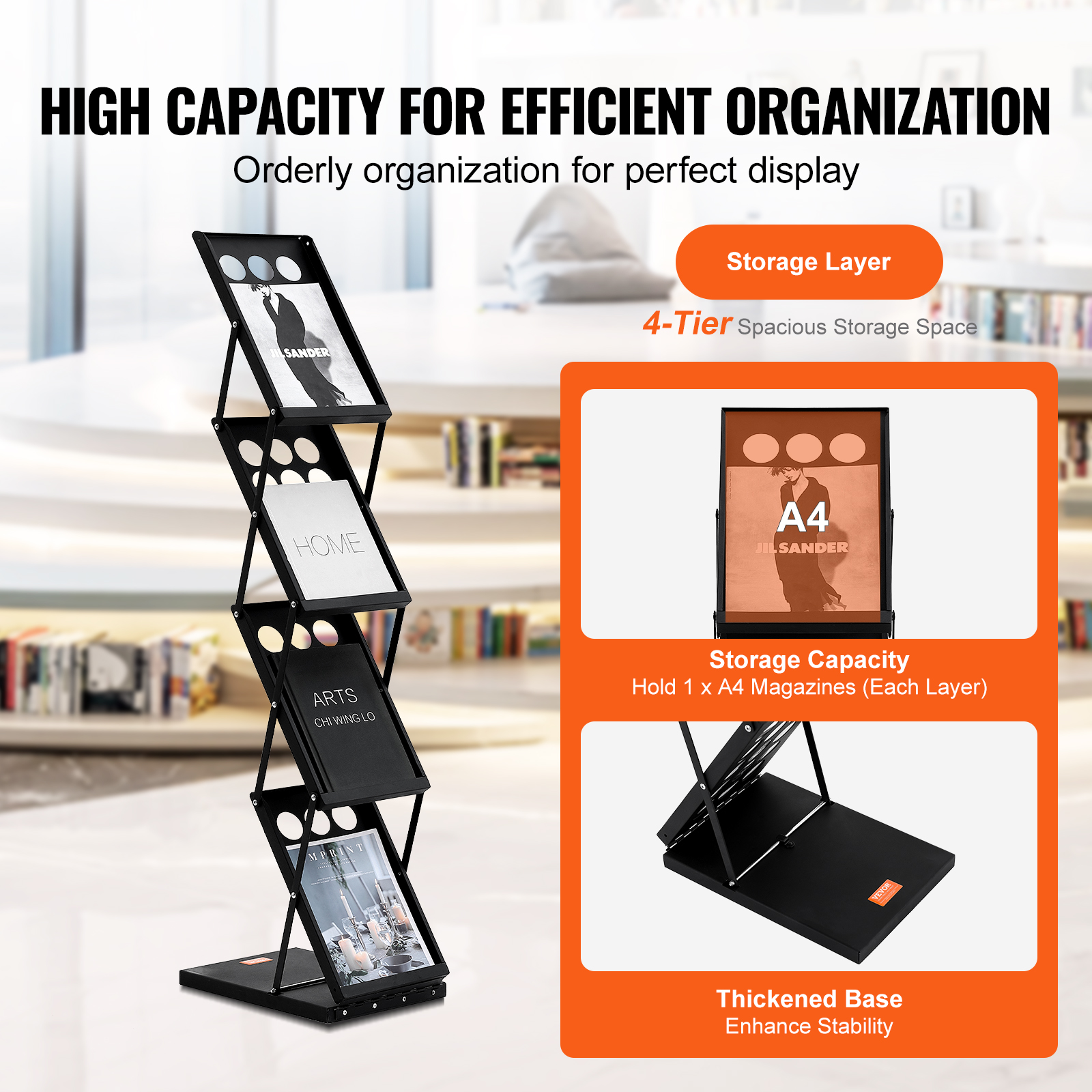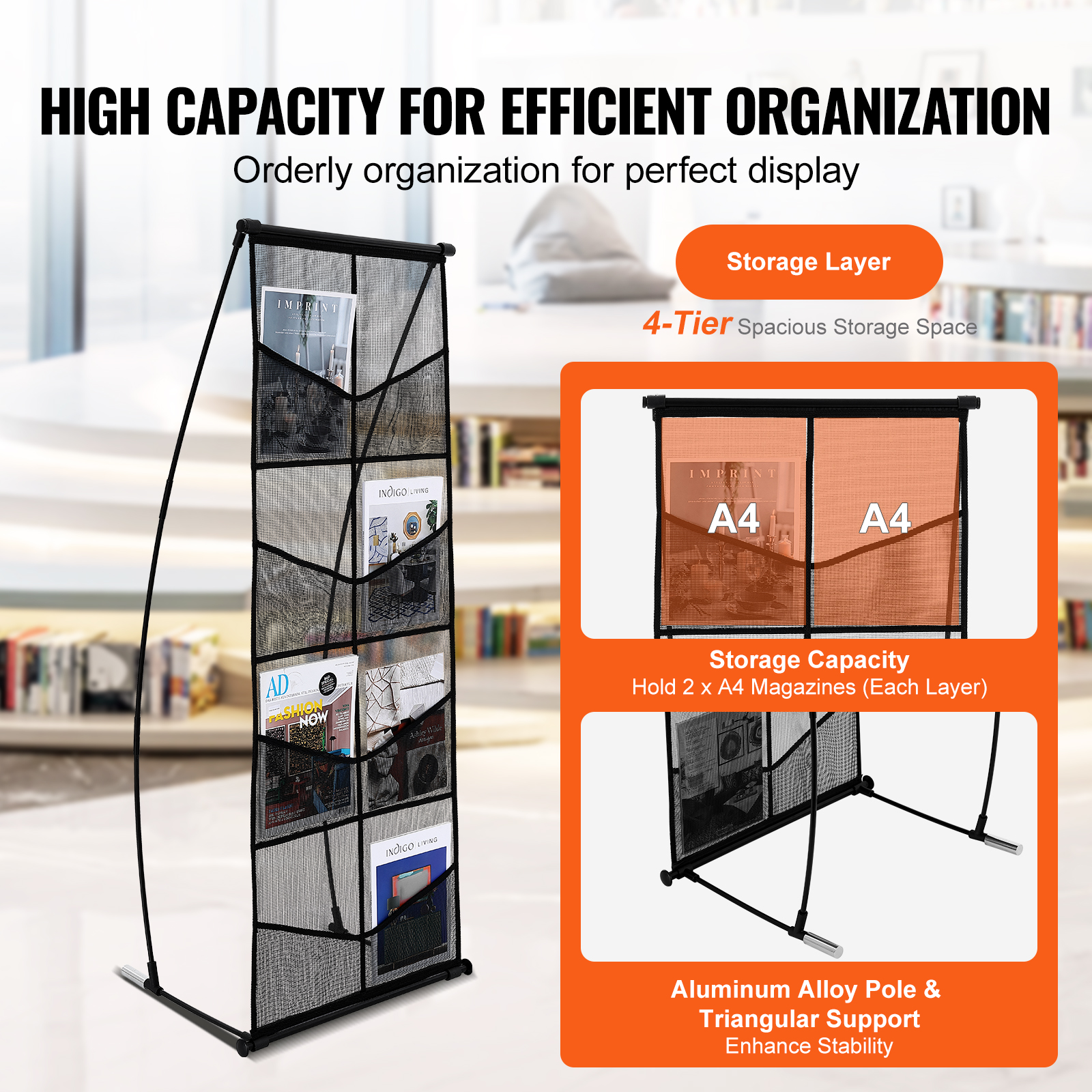 Document Product Description Organize. Exhibit. Impress: Display with Distinction Perfectly display your magazines with VEVOR 6/4-tier large-capacity brochure display rack. Designed with high quality, durability, and versatility, it offers ample storage space, considerate designs, and easy mobility. Choose our display stand to elevate every magazine into a standout focal point! Keep all your promotional materials organized and on display! The VEVOR magazine display stand with wheels boasts 6 tiers of spacious storage, with each tier accommodating 2 x A4 magazines, ensuring ample space for showcasing your magazines, brochures, and files. Protect your magazines and keep them easily accessible! With safety edges that are smooth to the touch, additional storage space at the bottom and protective barrier, you can store more magazines and books while preventing them from slipping or being blown away. VEVOR magazine display holder features 4 x 360° rotating casters that are smooth, wear-resistant and silent, allowing you to adjust the display position with ease. Whether it's an office, shop, or exhibition hall, you can effortlessly move and showcase your promotional materials. Whether it's airport lounge, store, hotel, library, office, or living room, our literature display stand meets diverse need. Not only does it enhance the display of your promotional magazines, but it also adds an element of elegance and professionalism to your space. Here we will provide you with 7 types of Magazine Display Rack for your option: 6 Tier 4 Wheels, 32 Pocket 4 Wheels, 32 Pocket 5 Wheels, 4 Tier 8 Pocket, 4 Pocket, 6 Pack 8.5x11inch, 4 Tier 8.5x11inch. Features & Details Quality Craftsmanship, Lasting Durability: VEVOR 6/32/8/4-pocket brochure display rack is crafted with precision, undergoing high-temperature baking paint process to achieve sleek and durable finish. No more worries about deformation – this literature display stand is built to endure the test of time. Plenty of Room to Organize: Featuring 6 tiers of generously-sized display grids, each capable of accommodating 2 x A4 magazines, our file holder magazine rack offers ample space to neatly organize newspaper, brochures, magazines, literature, and more. Keep your brochures tidy, organized, and easily accessible. Keep it Tidy, Show it Clearly: Each shelf is designed with a grid pattern to optimize airflow, ensuring proper ventilation and minimizing dust accumulation. This thoughtful design keeps your display rack clean and organized, preventing brochures from slipping and enhancing both aesthetics and functionality. Effortless Mobility: Equipped with 4 smooth-rolling 360° swivel wheels, this magazine catalog literature rack can be effortlessly moved around. Plus, 2 lockable wheels with reliable brakes ensure the rack remains stable and secure, allowing you to position it wherever you need it. Versatile and Fashionable: Our floor-standing movable literature rack is easy to assemble and fits seamlessly into various settings, from offices and libraries to hotels and trade shows; it's your go-to solution for showcasing magazines with style and distinction. SHIPPING ABOUT US PAYMENT RETURNS CONTACT WARRANTY Welcome to our eBay store. As a leading and emerging company in manufacturer and exporting business, we are specialized in Business and Industrial Products, Sporting Goods, Pet Products, Home and Garden products for more than 10 years. We believe that it is our vision and mission to provide innovative products with best service and competitive price to satisfy you. Our goal is to make sure that you can find exactly what you are looking for and make it easy for you to place your orders. We accept PayPal payment,PayPal Credit,Credit card or debit card and so on. Payment should be completed within 4 (Four) days of auction closing. Or unpaid dispute will be filed for closing auction. We will leave a positive feedback immediately after payment is received. We appreciate a positive feedback as much as you do. If for some reason there is any issue with the purchase, please contact us prior to leaving feedback, we will be glad to work together and provide a satisfying solution. Please be aware that PO Box cannot receive items, please DO NOT fill in the PO Box address. DELIVERY DAYS: 3-7 BUSINESS DAYS 3 BUSINESS DAYS SHIPPING OUT SHIP FROM CA & TX & NJ & GA & NC &OR WAREHOUSE California Warehouse: City of Industry, CA Texas Warehouse : Houston, TX New Jersey Warehouse : Perth Amboy, NJ New York State Warehouse: Perth Amboy, NJ Georgia Warehouse: Austell,GA North Carolina Warehouse: Grove NC Oregon Warehouse: AIRPORT WAY Portland,OR All of our items are backed with a 30-day return policy. We ensure all our items are new and in excellent condition prior to shipping. In case you receive the item that is not to the standards above, please contact us via e-Bay messages. All returns must be in new original condition as received and should be shipped with delivery confirmation Please note that all returns must be pre-approved by us. Unauthorized returns will not be accepted. If you need to return, please check twice to confirm the item not work and contact our customer service representative, let us know the detailed problem and send us some pictures for confirmation. We ONLY accept returns with original package. Please make sure that item has NO man-made sabotage. Used items will not be accepted for return. Email Customer Support: 9:00am-2:00am PST Sunday-Friday All emails will be responded to within 12-24 hours This item comes with 12 months Warranty from the date of customers purchased it. Special circumstances will be listed clearly in the listing. If your item has been damaged in transit or become faulty in warranty period, please email us with pictures or video to show the problem. Please do check everything carefully after you received the parcel, any the damage except DOA (Dead-On-Arrival) would not be covered if it's your fault. Replacement products are