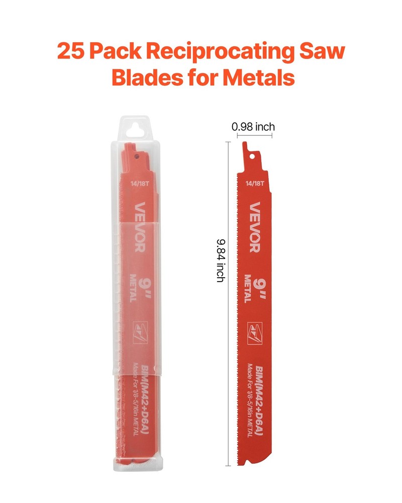 VEVOR Reciprocating Saw Blades,25 Pack,6/12 TPI Bi-Metal Reciprocating Saw Blade