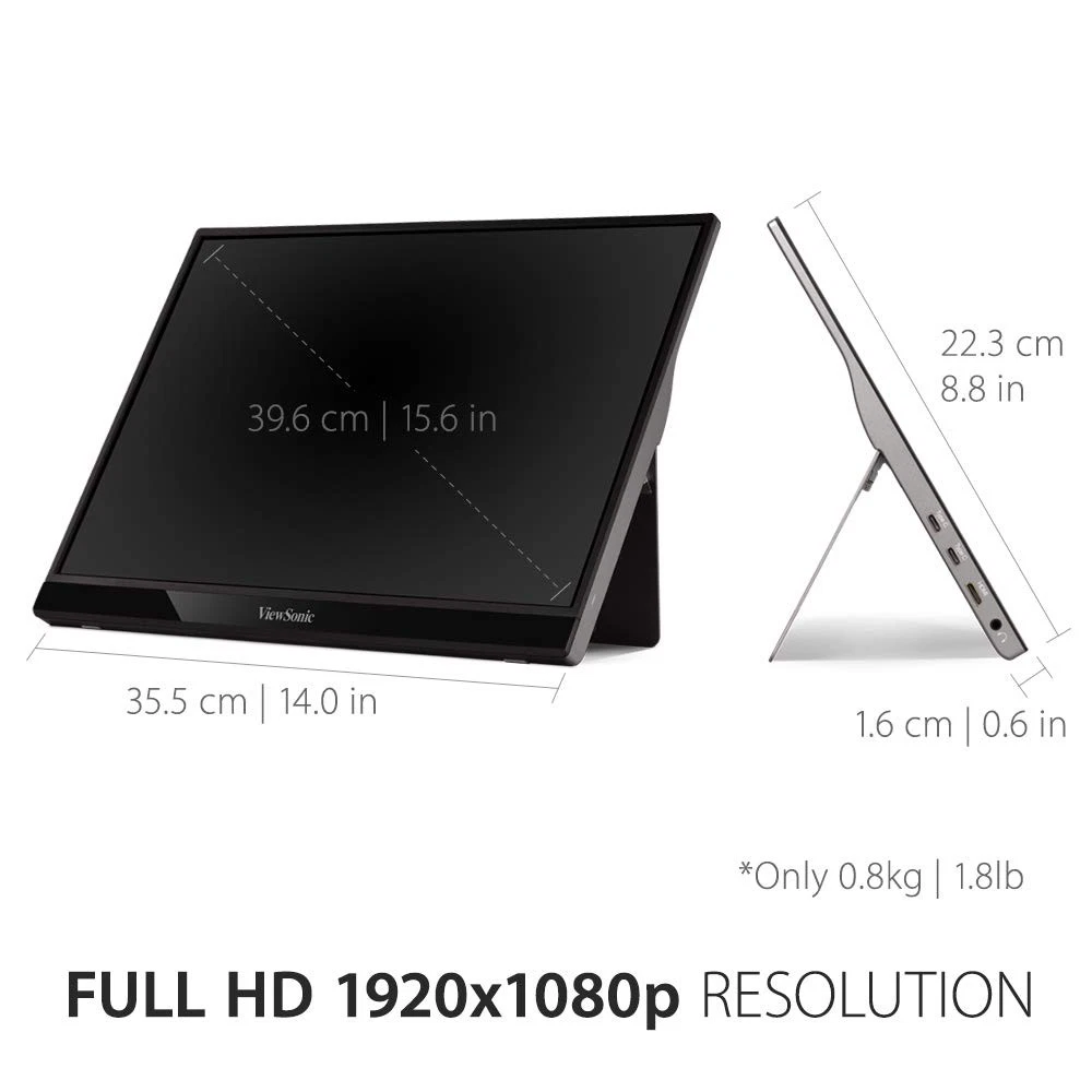 Maximum Resolution: 1920 x 1080 Screen Size: 15.6 in Weight: 4.62 Pounds UPC: 0766907007091 Contrast Ratio: 800:1 MPN: VS18172 Package Dimensions LxWxH: 17.05x11.22x3.5 Inches Size: 8.8" x 14" x 0.6" Most Suitable For: Casual Computing Type: Does not apply Color: Gray EAN: 0766907007091 gtin13: 0766907007091 Refresh Rate: 75 Hz Video Inputs: HDMI Mini, USB-C Brand: ViewSonic Response Time: 14 ms ISBN: 0766907007091 Features: Portable, Built-in Speakers, Anti-Glare Brightness: 250 cd/m² Aspect Ratio: 16:9 Model: ViewSonic VG1655 Display Type: IPS LED
