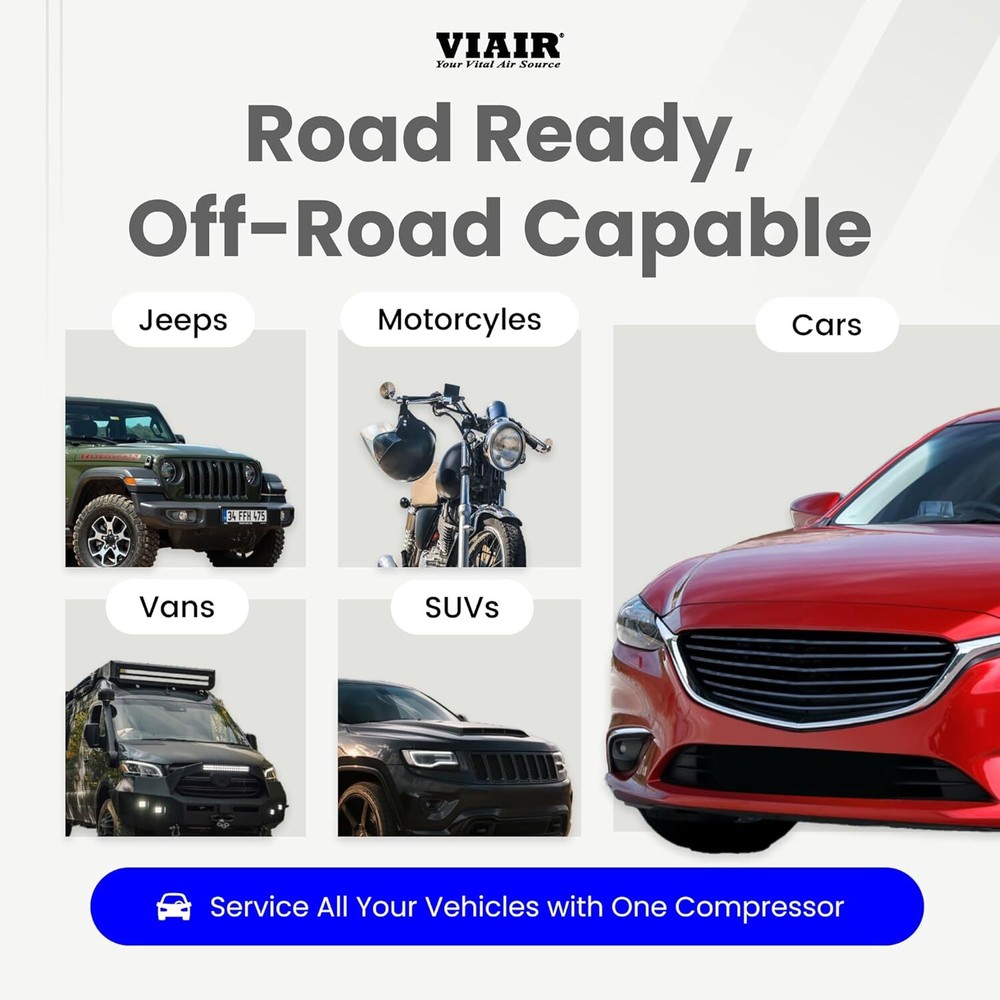 DIGITAL COMPRESSOR for ALL VEHICLES - The new & improved version of the customer favorite 85P, the Every Vehicle Carry 85P features a digital gauge and preset pressure with automatic shut-off feature. Now, every driver can experience VIAIR's legendary long-lasting performance and reliability with ease. HOW TO USE PRESET PRESSURE: (1) Push the plug into the cigarette lighter port in your vehicle's interior. (2) Start your engine. (3) Attach the chuck to the tire valve. (4) Set the desired pressure and wait for the tire to inflate. (5) The portable tire air pump will automatically shut off when the desired pressure is reached. VIAIR Digital EVC85P - Portable Air Compressor Tire Inflator for Car, SUV & Truck | Preset Automatic Shut Off Feature | 12V Road Tire Pump Air Compressor 60 PSI DIGITAL COMPRESSOR for ALL VEHICLES - The new & improved version of the customer favorite 85P, the Every Vehicle Carry 85P features a digital gauge and preset pressure with automatic shut-off feature. Now, every driver can experience VIAIR's legendary long-lasting performance and reliability with ease. HOW TO USE PRESET PRESSURE: (1) Push the plug into the cigarette lighter port in your vehicle's interior. (2) Start your engine. (3) Attach the chuck to the tire valve. (4) Set the desired pressure and wait for the tire to inflate. (5) The portable tire air pump will automatically shut off when the desired pressure is reached. INCLUDED COMPONENTS: 12V mini air compressor tire inflator has a 3 ft air hose, 10 ft power cord, built-in pressure gauge, deluxe carry bag, 3 inflation tips (3/16" nozzle, 5/16" nozzle, and needle adapter) stored on compressor, press-on chuck, LED light, and Presta valve adapter. RAPID, ACCURATE INFLATION: With the press of a button, it delivers a maximum working pressure of 60 PSI with a duty cycle of 20 minutes at 30 PSI; Free flow capacity: 1.26 CFM. Maximum Recommended Tire Size: 31". Fills a 225/60/18 tire from 30 to 40 PSI in 1.08 minutes or less and is 65% faster than leading competitors. Dimensions: 9.1″L x 3.1″W x 5.6″H; 4.3 lbs. SAFE & RELIABLE: Inflate tires on sedans, SUVs and sports cars. Even capable on small trucks and ATVs. Reliable, convenient and easy to use. Great for families and daily driver vehicles. So easy, anyone can use it! "The VIAIR Every Vehicle Carry 85P - Digital 12 Volt Portable Air Compressor for All Vehicles The new and improved version of the customer favorite 85P delivers a digital gauge and preset pressure for easier-than-ever functionality. 5-Step to Air Up with Preset Pressure Feature (1) Push the plug into the cigarette lighter port in your vehicle's interior. (2) Start your engine. (3) Attach the twist-on chuck to the tire valve. (4) Set the desired pressure and wait for the tire to inflate. (5) The portable tire air pump will automatically shut off when the desired pressure is reached. Road Ready, Offroad Capable The sky's the limit with the EVC85P. Servicing all vehicle types, from sedans, sports cars, and small trucks, no vehicle in your garage will ever be without air. Includes a Presta valve adapter for bikes, balls and inflatables. Filling a 225/60/18 tire from 30 to 40 PSI in 1.08 minutes or less, the Every Vehicle Carry 85P gets you back on the road in no time. Great for Families Enjoy peace of mind as you send your teenager, college student and other family members off with a reliable, easy to use air pump. Ultra Portable with Canvas Carrying Case The EVC85P electric car & truck tire pump has a maximum dimension of 9.1 inches and weight of 4.3 pounds. Store it in your trunk or mount to your vehicle for easy access and never be without air. Conveniently stored in a durable canvas carrying case with top handle, the tire inflator air compressor is ready to use at any moment, whether you're at home, stopped on a busy roadway or out in the middle of nowhere. Choosing Between 12V Battery Clamps and Cigarette Lighter Plug: Pros & Cons The EVC88P uses alligator clips for a direct battery connection due to its higher current draw. In contrast, the EVC85P uses a cigarette lighter plug, drawing less current and allowing access from your car's interior. The choice depends on your preference." Item Specifics Brand VIAIR About us Dear buyer, Thank you for visiting my store! Our warehouses are located in many regions around the United States. According to the customer's delivery address. Use USPS/UPS/DHL logistics transportation service. Prioritize the best quality logistics solutions to transport packages. Ensure package delivery time, At the same time. Have any after-sales problems, Feel free to contact us. At your service Payment PayPal is our preferred method of payments it's the quickest, easiest and most secure way to pay for your goods or services online. PayPal offers buyer and seller protection should there be a problem. If you do not have a PayPal account, to get started and buy your first item with us is very easy. Simply click on the 'Buy It Now' button and follow the eBay checkout steps. Select PayPal as the payment method you then will be given the chance to enter your card details in to PayPal's secure checkout in order to pay for your order. Shipping 1. Your purchase is shipped directly to you as soon as we have received your cleared payment. 2. Normally all of parcels would be shipped within 3days(From Monday to Saturday). 3. We will send information on eBay or email if the parcel was delayed due to our holiday. 4. We provide three kinds of shipping for choice. Shipping way depend on delivery address. Returns If an unit is received defective, of course we take it back or replace it. If the unit is received as expected, we must charge for our expenses if you want to send it back. We have to charge for the work of handling, retesting and restocking. DESCRIPTION PAYMENT SHIPPING RETURN POLICY CONTACT US Shop Category Store Home Other Hot Item 5.5 cu. ft. Heaped Poly Smart Plastic Garden Cart USD 70.98 Strongway Industrial Appliance T