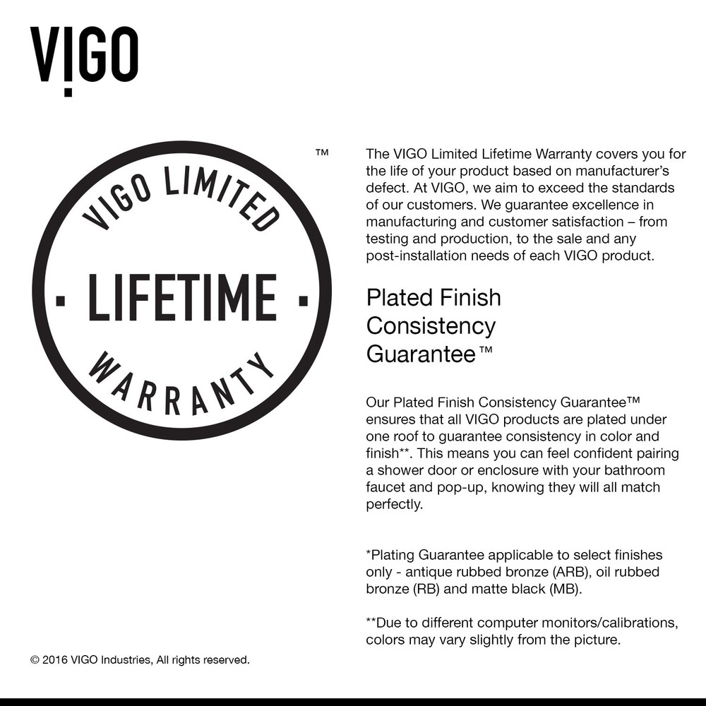 Powered by Frooition Top Products Kitchen Bathroom Lighting Fans Hardware Decor & Organization Vigo VG6042CL60 Piroutte 72" High x 60" Wide Pivot Frameless Shower Door with Clear Glass Overview Item Description Vigo VG6042CL60 Features: Covered under Vigo's limited lifetime warranty and 1 year limited commercial warranty Constructed of durable 3/8" thick tempered glass and complemented by stainless steel profiles and guide rails Coordinates with products from the Piroutte line A frameless design gives a modern, sleek look to the shower Pivot shower door operation gives an impressive look to any shower unit and gives the feeling of more space as you utilize the shower Door opens to the left or right depending upon installation configuration This is a shower door only - a shower base and walls may be required to complete unit NOTE: The biggest challenge in selecting the correct shower door is determining the finished opening width - be sure your desired opening measures between the "Enclosure Width Range" note below Vigo VG6042CL60 Specifications: Overall Height: 72" (bottom to top of door fixture) Overall Width: 60" (left to right of door fixture) Enclosure Width Range: 54" to 60" (range of enclosure sizes door will accommodate) Maximum Door Opening: 26" (assuming door is not trimmed) Opening Direction: Reversible Glass Thickness: 3/8" Why Choose BuildInc? OUR PROMISE TO YOU About Us At Build, we promise to provide the best selection we can, most competitive pricing, and unmatched customer service. Our store has quality home improvement products from trusted manufacturers like Moen, American Standard, Delta, Kraus, Kichler, Progress Lighting, Schlage, Kwikset, Baldwin, Broan, NuTone, Air King, and Rev-A-Shelf. With over 200,000 home improvement products for you to choose from, we have just what you need to get your project done. Fast & Free Shipping We promise to make it our priority to get you your items as fast as we can. We ship from 440 warehouses around the country, ensuring that your product will get to you as soon as possible. We know you're eager to get your hands on your new purchase, we would be too. As a bonus, most items ship for free. Returns We are happy to accept returns of unused or defective items for a refund within 30 days from the date of delivery. For returns outside 30 days, please contact our Customer Service team to go over our options. For full details, please view the Shipping and Payments tab above. To initiate a return simply go to the eBay Returns Portal and submit a return request. We ask that all items be returned with all original components via a traceable method. Once your return is received and processed, we will quickly get your refund or replacement issued. If for any reason you are unsatisfied with your purchase or for product or warranty questions, please contact Customer Service team for assistance. More Items! View more great items Vigo VGSG1914 Noma 14" L x 19" W Silicone Basin Rack For Single - Black $39.90 Shaw RD7HS-3381V Aspire Natural 94" Vinyl Glue Down Reducer - - Woodland Truffle $62.13 Vigo VG6021CL6876 Elan E-Class 76"H x 68"W Sliding Frameless - Black $1,049.90 Kwikset 9800WIFITHRDTSCR-S.TPR.RCALFD Halo Touchscreen Keyless - Black $275.87 About Us | Shipping | Returns | Contact Us | FAQ | Collections | Special Offers! Powered by Frooition Frooition Frooition | No-js Template | eBay design, eBay store design, eBay shop design, eBay template design, eBay listing design (ver:froo_no_js) This listing is currently undergoing maintenance, we apologize for any inconvenience caused.