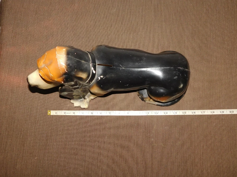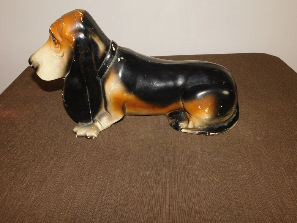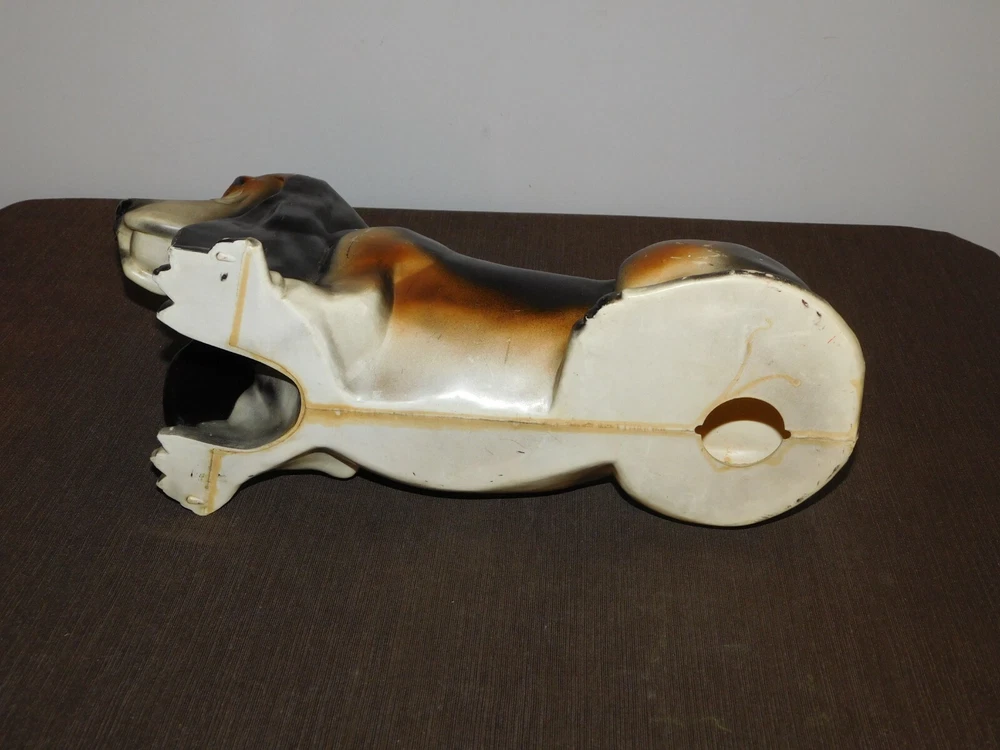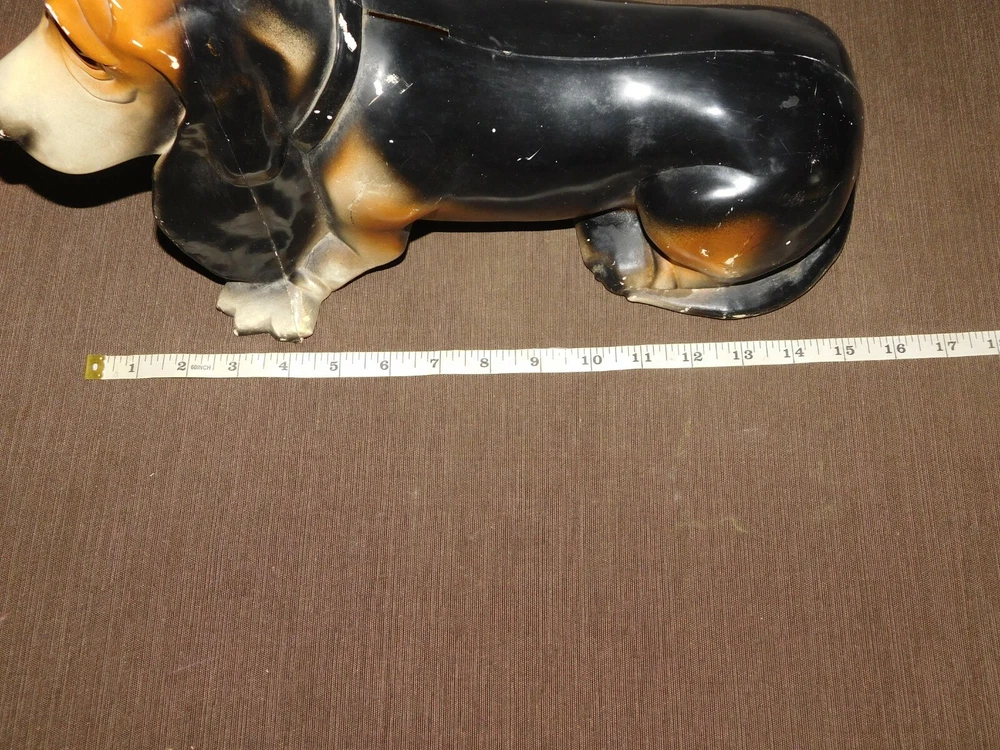 YOU ARE BIDDING ON..... VINTAGE 15" LONG PLASTIC DOG AXELROD BASSET HOUND COIN BANK ...MISSING BOTTOM PLUG ... . SHOWS A LOT OF HANDLING/AGE WEAR HAS SCRATCHES/PAINT LOSS/AGE DISCOLORATION. ....PLEASE VIEW PHOTOS FOR CONDITION.***PLEASE E-MAIL IF YOU HAVE A QUESTION OR WANT AN ADDITIONAL PICTURE....PLEASE VISIT MY EBAY STORE FOR ADDITIONAL VINTAGE ITEMS..THANK YOU***11U-BX8818-XXXX
