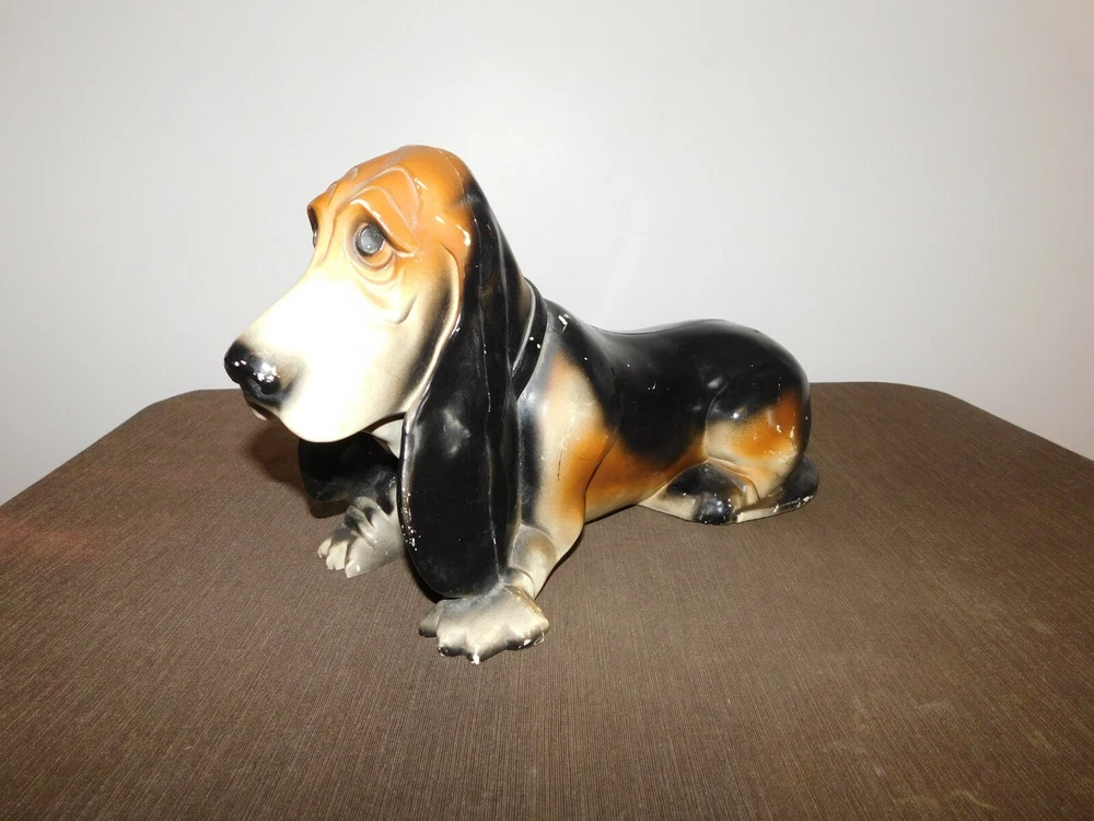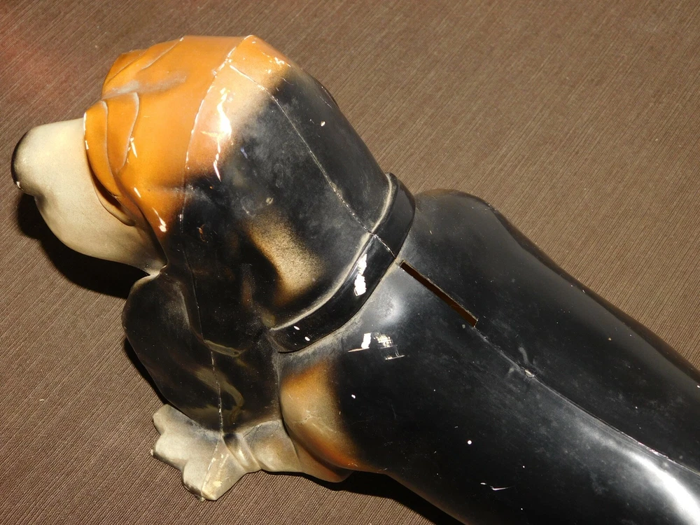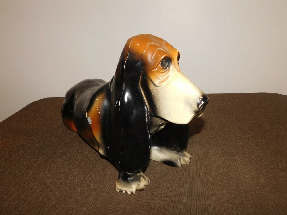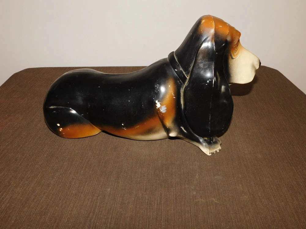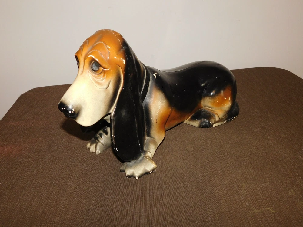 YOU ARE BIDDING ON..... VINTAGE 15" LONG PLASTIC DOG AXELROD BASSET HOUND COIN BANK ...MISSING BOTTOM PLUG ... . SHOWS A LOT OF HANDLING/AGE WEAR HAS SCRATCHES/PAINT LOSS/AGE DISCOLORATION. ....PLEASE VIEW PHOTOS FOR CONDITION.***PLEASE E-MAIL IF YOU HAVE A QUESTION OR WANT AN ADDITIONAL PICTURE....PLEASE VISIT MY EBAY STORE FOR ADDITIONAL VINTAGE ITEMS..THANK YOU***11U-BX8818-XXXX