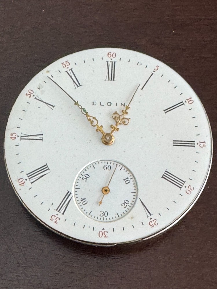 VINTAGE 16 SIZE ELGIN POCKET WATCH MOVEMENT GR. 312 KEEPING TIME ROMAN NUMERAL DIAL , FANCY HANDS, HAS ONE FAINT HAIRLINE, NEEDS CLEANING Elgin National Watch Co. Grade: 312 Manufacturer: Elgin Manufacturer Location: Elgin, Illinois Movement Serial Number: 15560023 Grade: 312 Model: 6 Class: 109 Estimated Production Year: 1911 Run Quantity: 1,000 Grade/Model Run: 78 of 233 Grade/Model Total Production: 366,000 Size: 16s Jewels: 15j Jewel Setting: Screw-Set Movement Configuration: Hunting Movement Finish: Nickel Movement Setting: Pendant Wind Mechanism: Pendant Plate: 3/4 Plate Barrel: Going Balance Type: Expansion Balance Jewel Material: Ruby Train: Quick Regulator: Moseley Hairspring: Breguet Standard Dial Type: Single-Sunk Adjusted: No Railroad Grade: No U.S. Patents: 596407 , 77078 , 585025 Case: Various Run ID: 7286.312G78.16S1695.166M656.H4592.P4679.15J2103 Data Research: 1915 Elgin Serial List 1927/1950 Elgin Serial List Database Version: v52.642