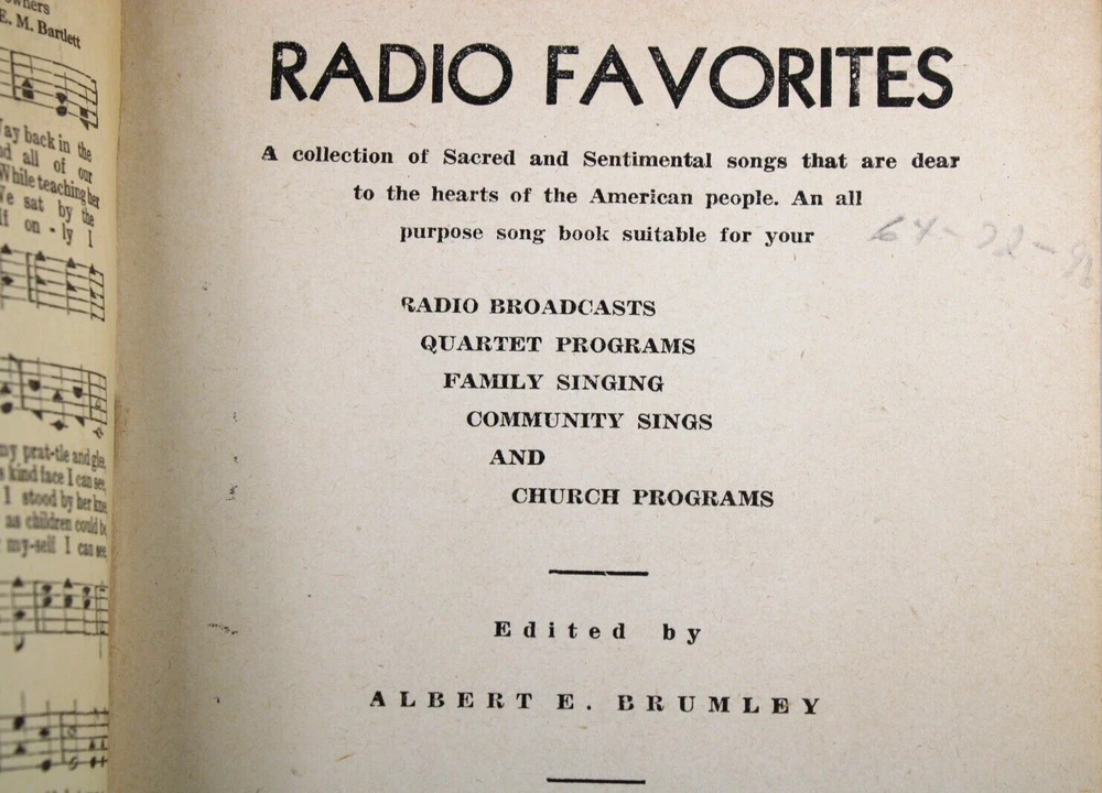 VINTAGE 1946 ALBERT E BRUMLEYS BOOK OF RADIO FAVORITES SC CHRISTIAN SHEET MUSIC VINTAGE FROM 1946 ITS ALBERT E BRUMLEYS BOOK OF RADIO FAVORITES OVER 100 PAGES WITH FOUR PART HARMONY ARRANGEMENTS OVER 100 CHRISTIAN SONGS MOSTLY FROM THE 1920'S AND 1930'S PAPERBACK BOOK DATED 1946 GREAT PIECE OF HISTORY AND A NICE COLLECTORS ITEM ✨✨✨ BOOK IS IN GOOD CONDITION ALL PAGES INTACT AS WELL AS THE BINDING, THE STAPLES ARE SECURE. THE BACK OF BOOK HAS SOME WRITING TWO OTHER PAGES HAVE A FEW MINOR PENCIL MARKS THE BACK OF BOOK HAS A FEW MINOR STAIN SPOTS THE BOOK IS IN OVERALL NICE CONDITION AND INTACT FOR AN ALMOST 80 YEAR OLD PAPERBACK NONE OF THE PAGES HAVE ANY TEARS. WOULD MAKE A GREAT GIFT ADD TO YOUR LIBRARY Will ship to you with great care. Will ship to the United States and Protectorates via USPS International shipments will ship via Ebay's Global Shipping Program (GSP) International packages will ship within one business day to eBay's GSP. eBay's GSP will then ship the package internationally. Handling and Shipping times may vary with GSP. Brought to you by The VinKris Collection