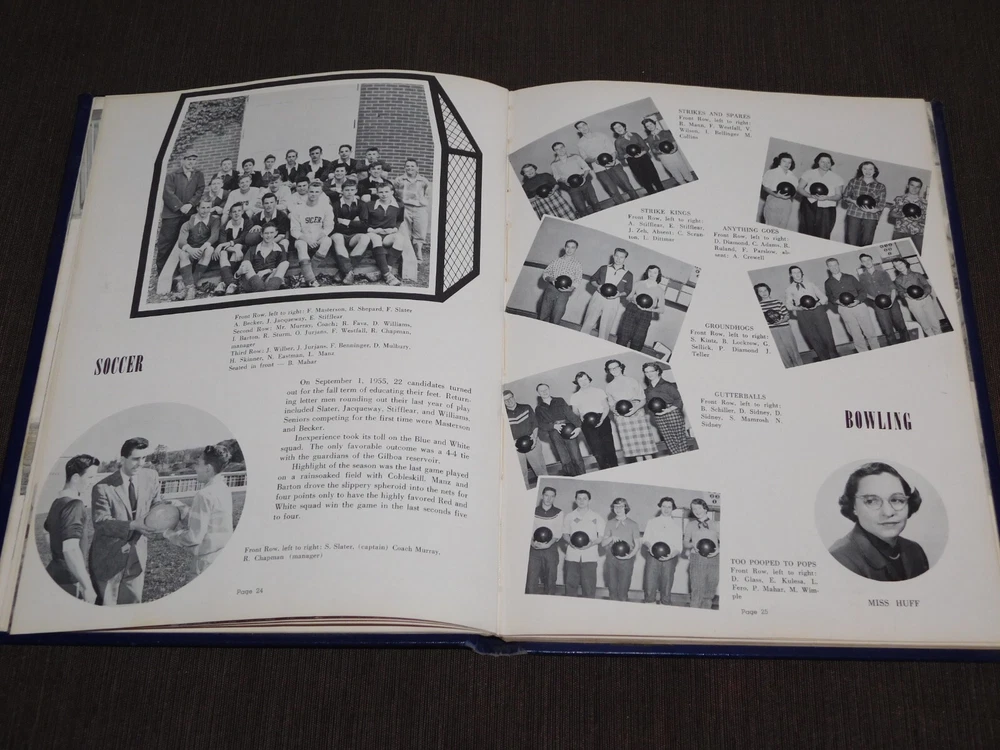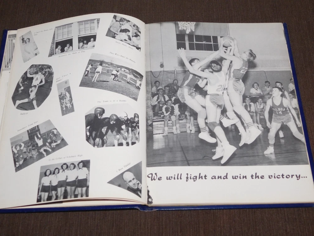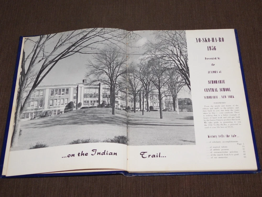 YOU ARE BIDDING ON..... VINTAGE 1956 THE YO-SKO-HA-RO SCHOHARIE NY CENTRAL SCHOOL YEARBOOK . MEASURES APPROX 11" X 8" 88 PAGES SHOWS SOME HANDLING/AGE WEAR/AGE DISCOLORATION/CORNER BUMPS/STAINS ON COVER..SCRIBBLE ON 1 PAGE ... PLEASE VIEW PHOTOS FOR CONDITION.***PLEASE E-MAIL IF YOU HAVE A QUESTION OR WANT AN ADDITIONAL PICTURE....PLEASE VISIT MY EBAY STORE FOR ADDITIONAL VINTAGE ITEMS..THANK YOU***11VBKSBX2261