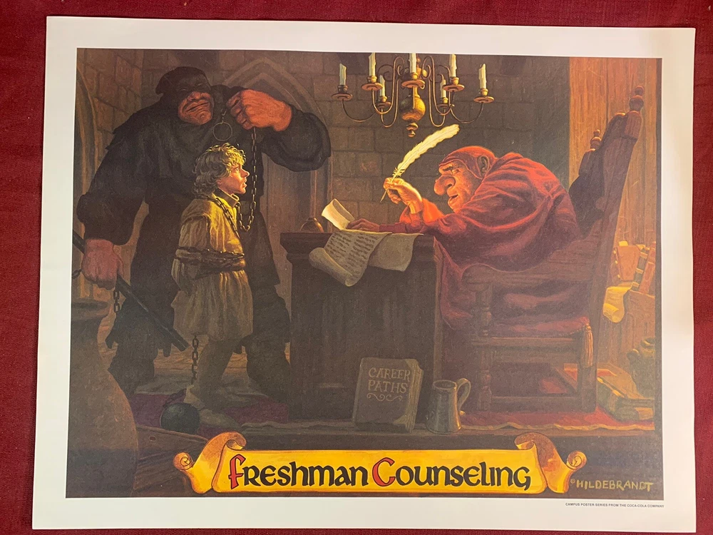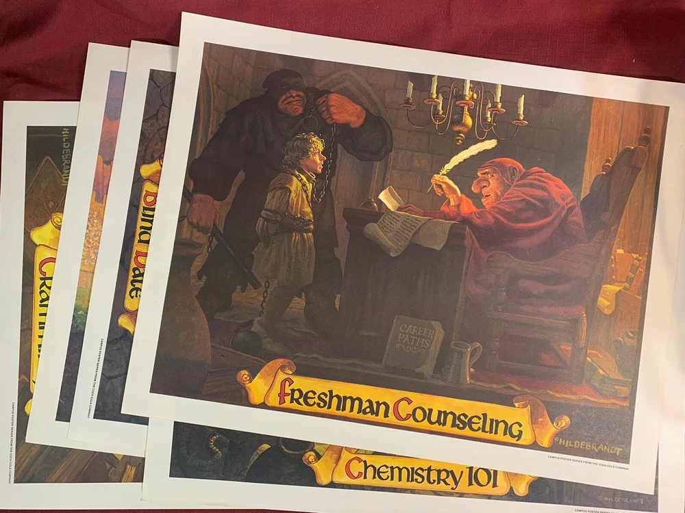 SIZE; 18 x 23 INCHES. MADE OF A THICKER MIL PAPER. THESE CAME FROM A FRIEND WHO AT ONE TIME WAS A MANAGER FOR YEARS AT McDONALDS AND BURGER CHEF. HE GAVE ME NUMEROUS SETS. FREE MAILING. YOU WILL BE HARD PRESSED TO FIND THESE IN ANY BETTER CONDITION. WITH FREE MAILING, YOU ARE BASICLY BUYING A NMINT / MINT SET FOR LESS THAN 2 DOLLARS A POSTER.. I COULD WRITE FOR HOURS ABOUT TIM & GREG HILDEBRANDT'S AWARDS AND INK HISTORY, ANYBODY READING THIS WILL PROBABLY ALREADY KNOW. (ORIGINAL STAR WARS FILM POSTER ART) PRICED TO SELL, YOU WILL NOT FIND THESE ANY CHEAPER HERE ON EBAY OR ELSEWHERE FOR THAT MATTER. THE POSTERS WILL BE ROLLED AND MAILED IN A BOX. MAILED OUT THE SAME OR NEXT DAY WHEN PAYMENT IS MADE. PLEASE LOOK CLOSELY AT ALL THE PICTURES, EMAIL ANY QUESTIONS OR CONCERNS. EBAY'S AI: Enhance your collection with this vintage 1970's 5 poster set featuring Hildebrandt's Coca-Cola Campus Life. The colorful and lively posters showcase the theme of soda and campus life, making them a perfect addition to any Coca-Cola or advertising collectibles collection. The set includes original posters that were created in 1972 and are in their original state without any modifications. The posters are ideal for framing and displaying in your home or office. The set is a must-have for any fan of Coca-Cola or advertising memorabilia. Don't miss out on this opportunity to own a piece of history.