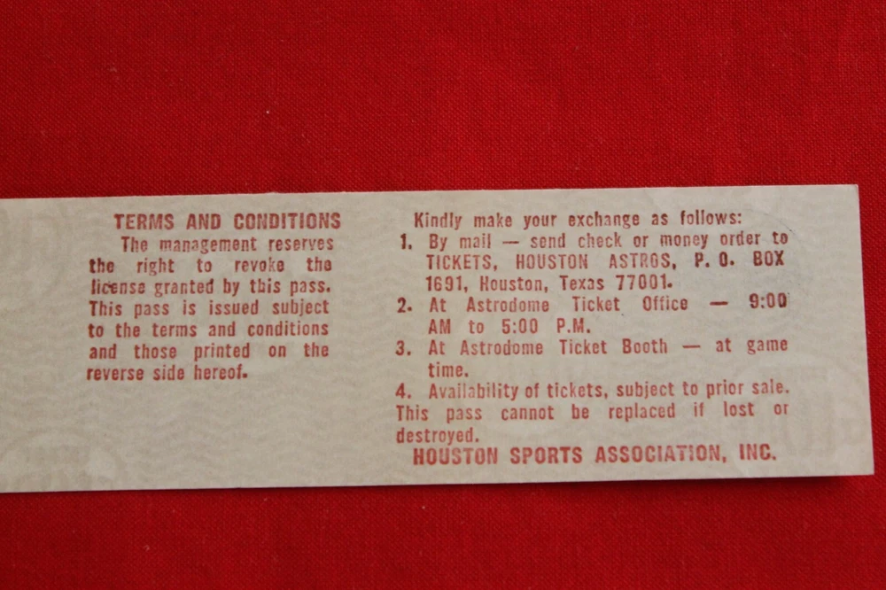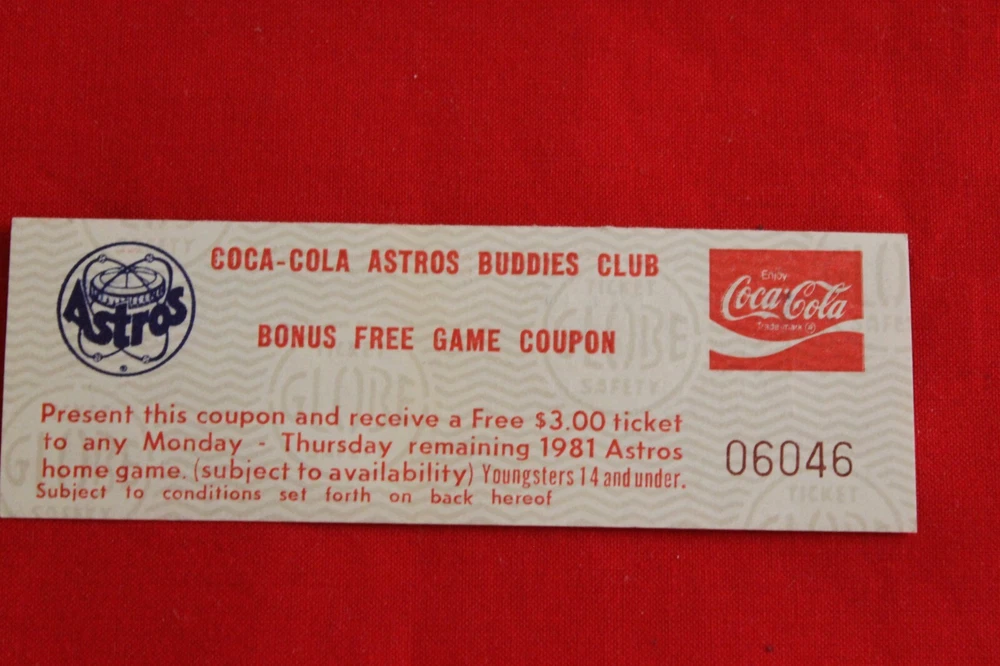 This vintage 1981 Houston Astros Buddies ticket coupon is a must-have for any avid collector of Major League Baseball memorabilia. The coupon is 43 years old and is in mint condition, making it a rare find for true sports enthusiasts. The original and authentic nature of this coupon adds to its value and ensures that it is a unique addition to any collection. The Houston Astros are a beloved team in the world of baseball, and this coupon serves as a testament to their history and legacy. The Astrodome, where the coupon was used, is a landmark in sports history, and owning a piece of it is a great way to connect with the past. This vintage 1981 Houston Astros Buddies ticket coupon is a perfect item for anyone who loves sports and wants to own a piece of history. You will not receive the specific numbered one in the picture. They are all numbered differently. We are a 26 year eBay seller with a perfect 100% positive rating. Buy with confidence!!