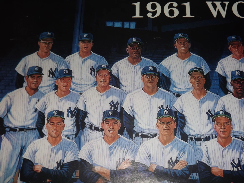 VINTAGE 1990 MLB BASEBALL 1961 WORLD CHAMPIONS NY YANKEES PLAYERS POSTER