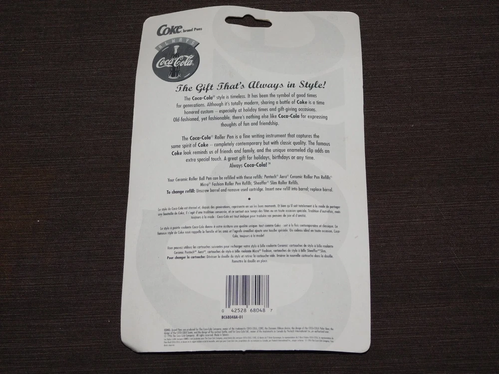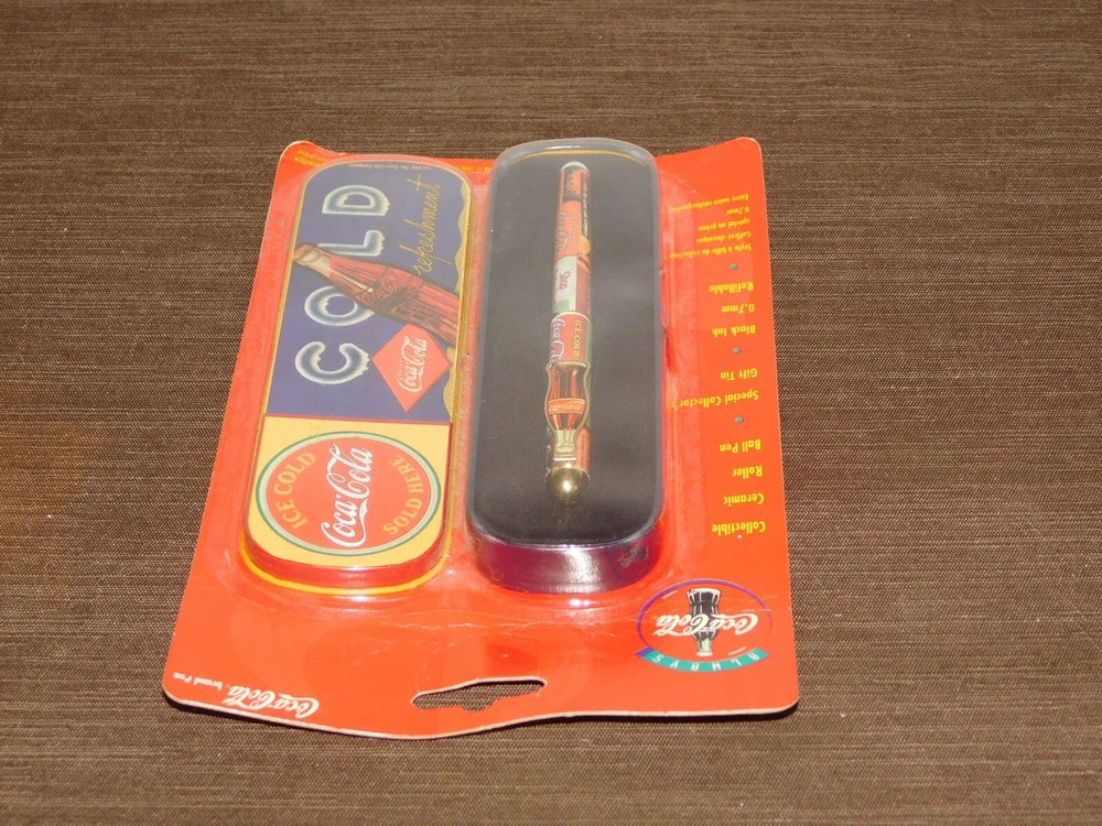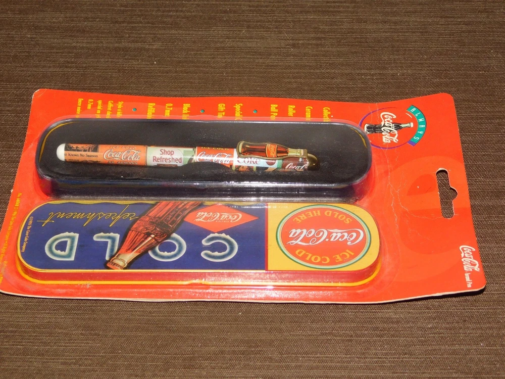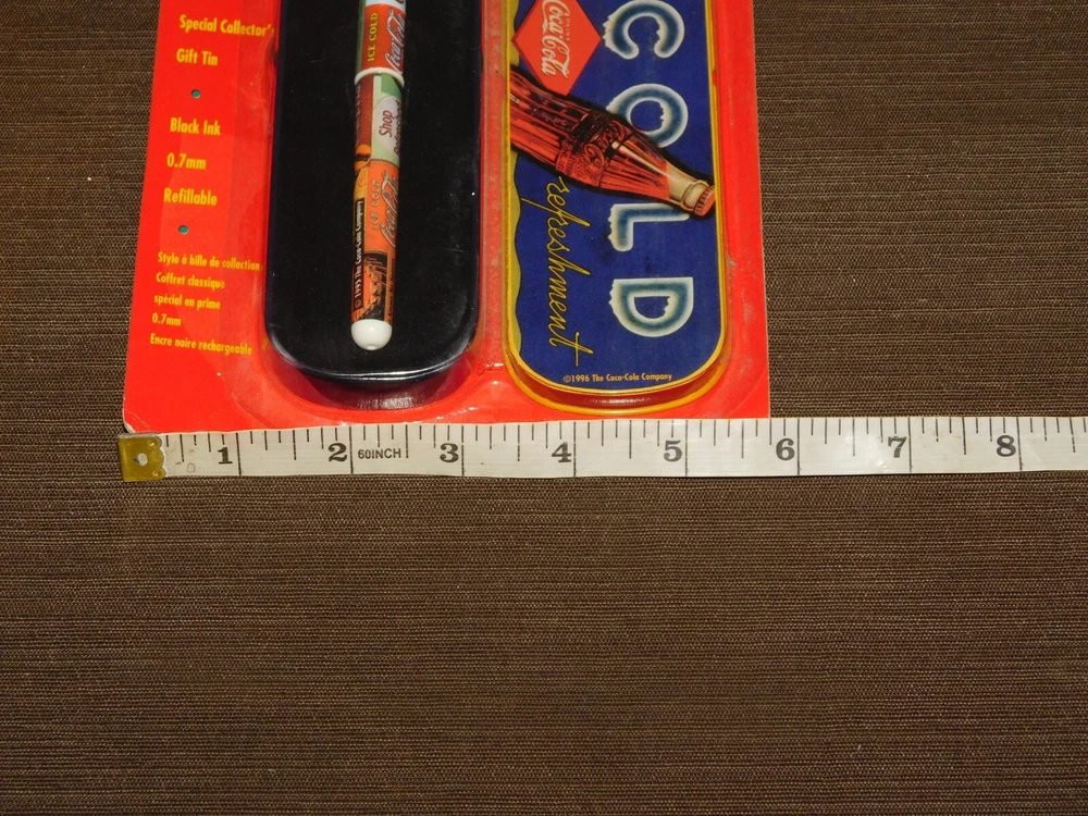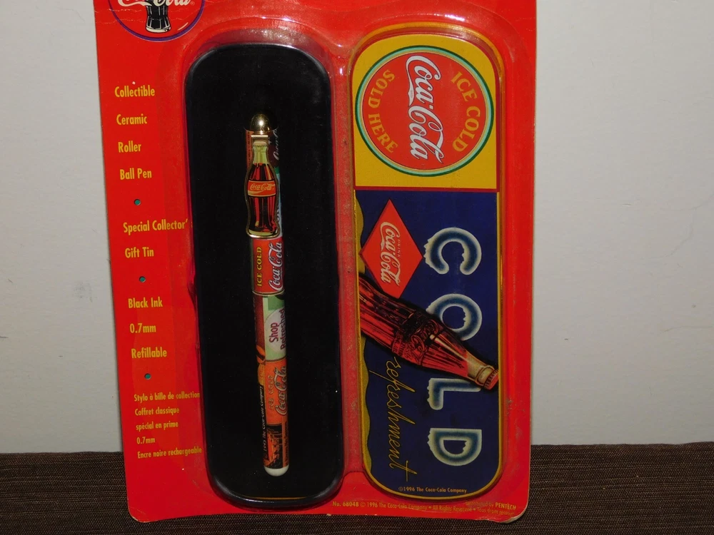 YOU ARE BIDDING ON..... VINTAGE 1996 COCA COLA ROLLER BALL PEN IN COKE GIFT TIN NEW OLD STOCK **PACKAGING SHOWS STORAGE WEAR..HAS STAINS/ CREASES /SMALL TEARS/AGE DISCOLORATION ... DUE TO AGE INK MIGHT BE DRIED OUT. ... PLEASE VIEW PHOTOS FOR CONDITION.***PLEASE E-MAIL IF YOU HAVE A QUESTION OR WANT AN ADDITIONAL PICTURE....PLEASE VISIT MY EBAY STORE FOR ADDITIONAL VINTAGE ITEMS..THANK YOU***12VBX1849-XXXX