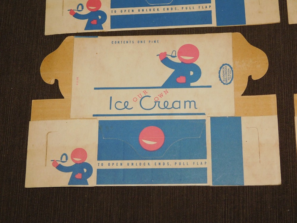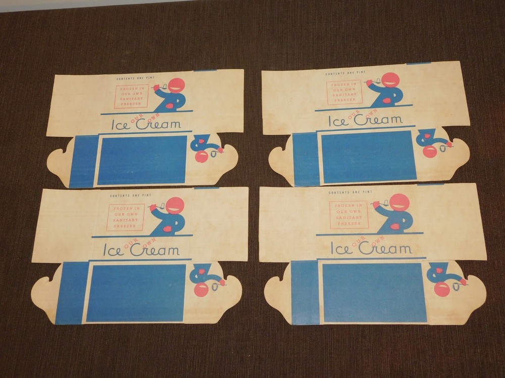 YOU ARE BIDDING ON..... VINTAGE 4 BLOOMER BROS ICE CREAM ONE PINT CARDBOARD CONTAINERS .**EMPTY** . .SHOW A LOT OF HANDLING/AGE WEAR..HAVE STAINS/AGE DISCOLORATION ... PLEASE VIEW PHOTOS FOR CONDITION.***PLEASE E-MAIL IF YOU HAVE A QUESTION OR WANT AN ADDITIONAL PICTURE....PLEASE VISIT MY EBAY STORE FOR ADDITIONAL VINTAGE ITEMS..THANK YOU***11VBX1219-XXXX