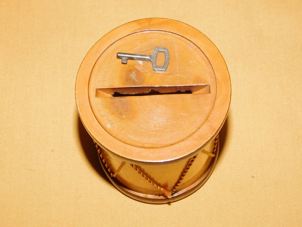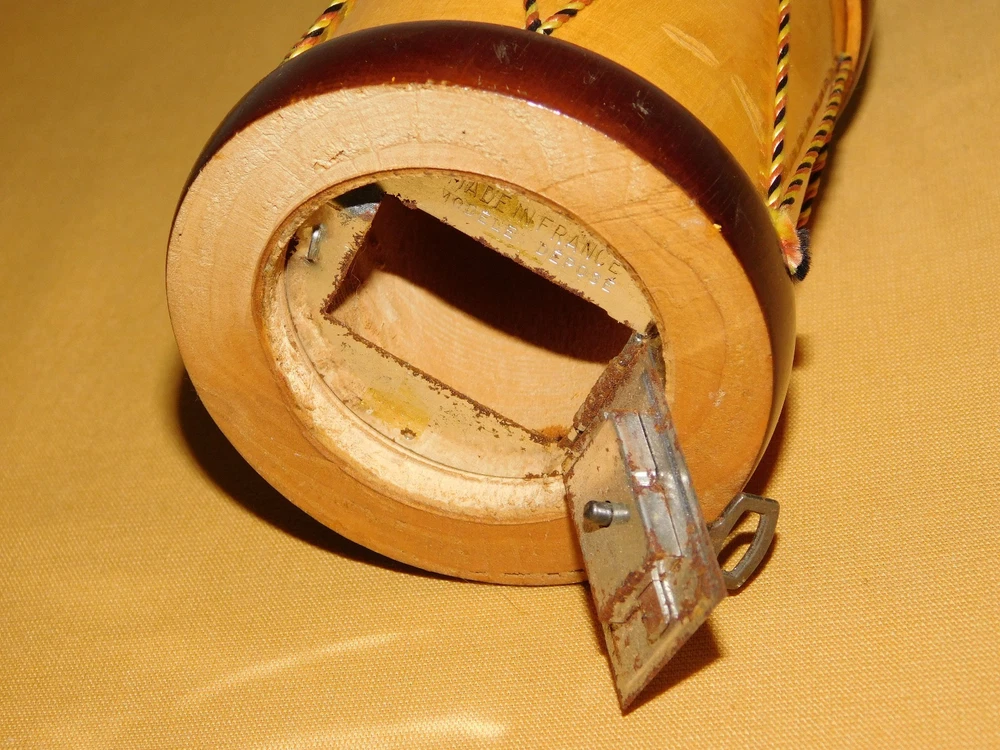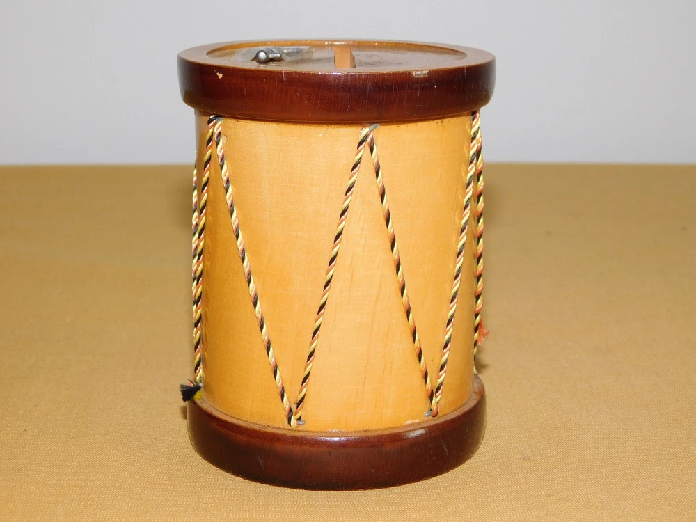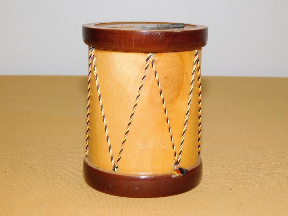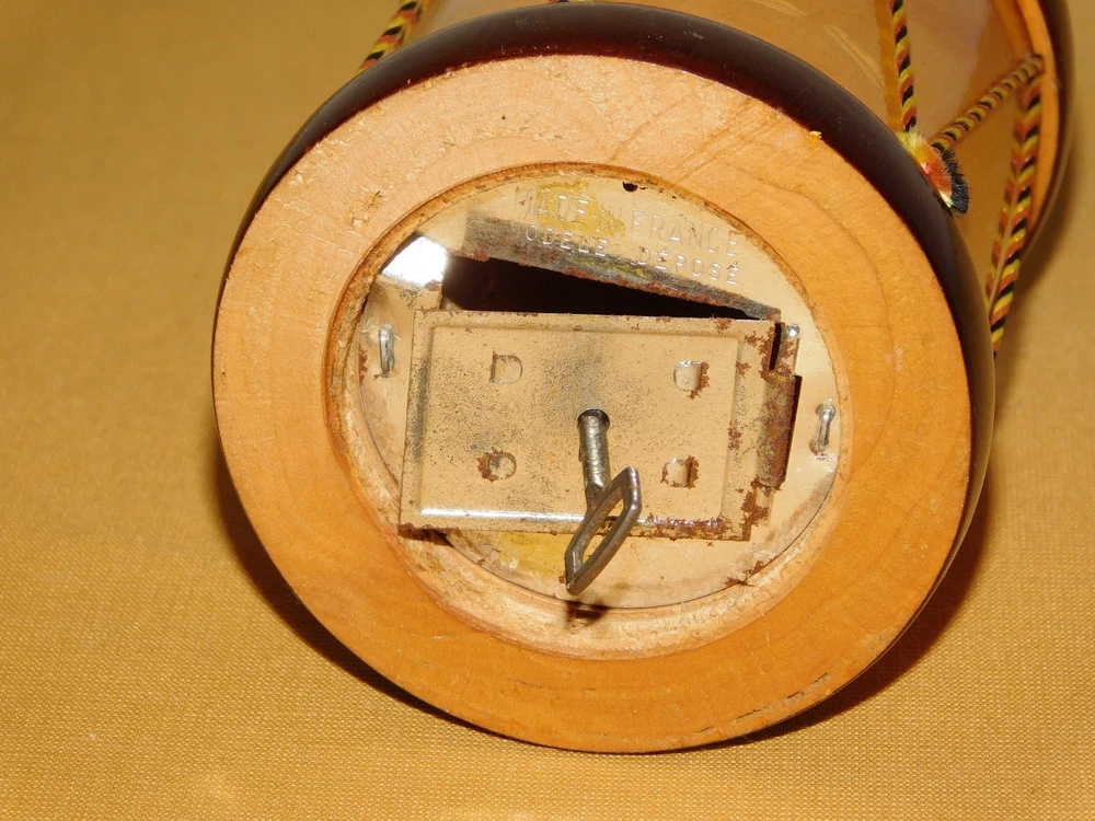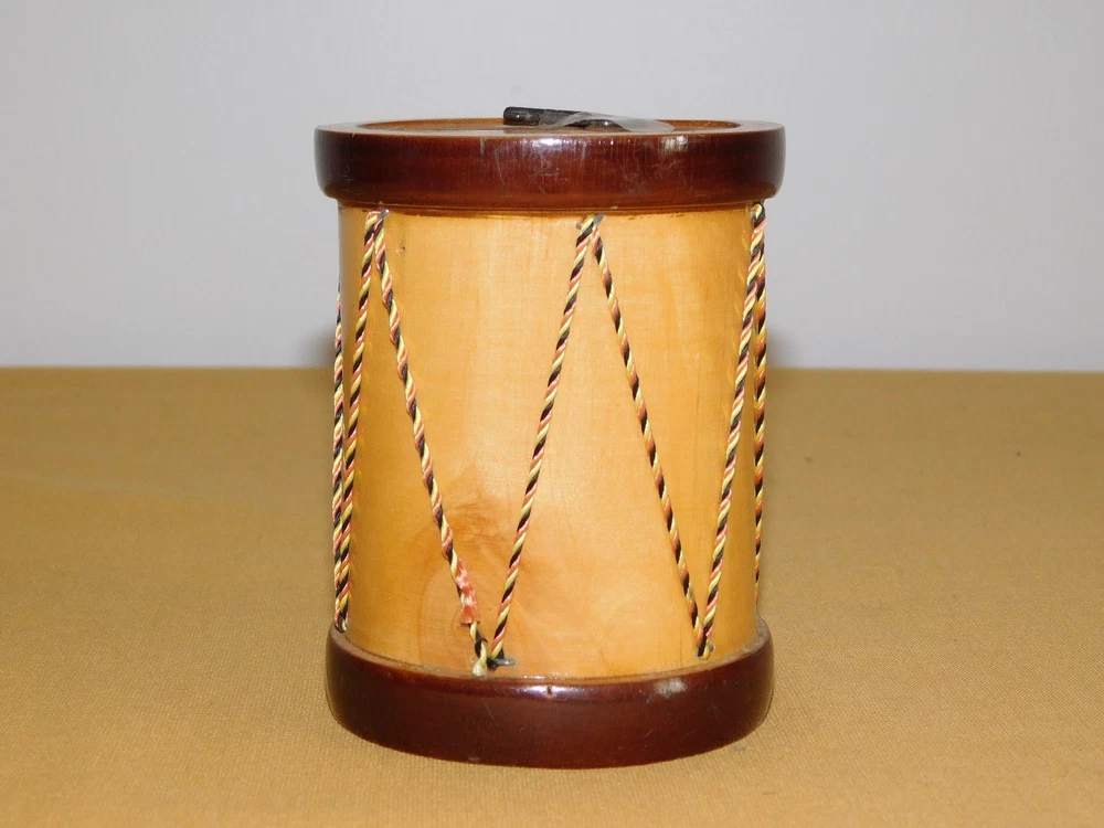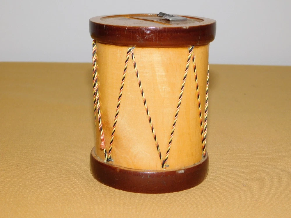 YOU ARE BIDDING ON...... . . VINTAGE 4" HIGH MADE IN FRANCE MODELE DISPOSE WOOD DRUM BANK .. ...MEASURES APPROX 4" HIGH.....3" ACROSS BOTTOM..SHOWS PRIOR USAGE/AGE WEAR..HAS SCRATCHES/PAINT LOSS/AGE DISCOLORATION..PLEASE VIEW PHOTOS FOR CONDITION.***PLEASE E-MAIL IF YOU HAVE A QUESTION OR WANT AN ADDITIONAL PICTURE....PLEASE VISIT MY EBAY STORE FOR ADDITIONAL VINTAGE ITEMS..THANK YOU*** 12P-8765-XXXX
