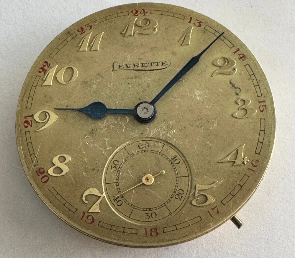 VINTAGE 42.9MM LEVRETTE POCKET WATCH MOVEMENT BALANCE LOOKS GOOD MOVEMENT: BALANCE LOOKS GOOD BUT WON'T RUN FACE UP , WINDS AT 3 , PENDANT SET DIAL: METAL, HAS SOME WEAR GRADE: N/A JEWELS: N/A Remember to save us on your FAVORITE SELLERS list! YOUR FEEDBACK IS VERY IMPORTANT TO US! Please take a short time to tell us how we are doing! It's our goal to maintain high customer satisfaction rating If you have any questions, comments or concerns, please don't hesitate to contact us We will do our very best to be prompt to answering your questions ARE YOU NOT SATISFIED WITH THE TRANSACTION?? Before leaving us negative feedback, please contact us! We may be able to come up with a solution that will please both of us! Thank you and please visit our eBay store again! NDD SALES, INC Return Policy: Returns accepted up to 14 days. The buyer is responsible for return shipping charges. No returns on watches stated as new. Payment Information: We accept payment by PayPal only. International Buyers: Buyer is responsible for any customs fees or duties incurred by their country based on their country's rules and regulations. No exceptions!