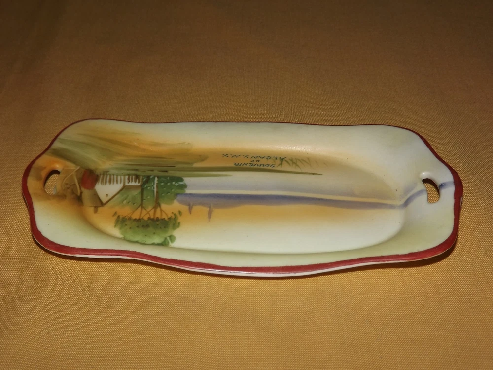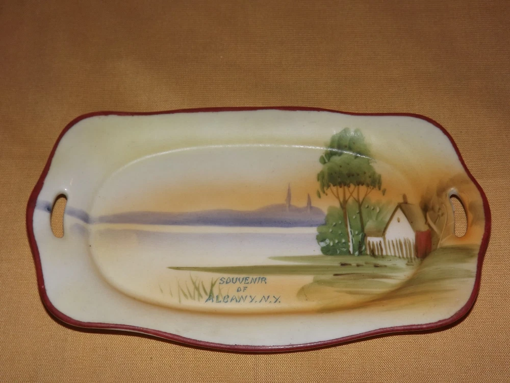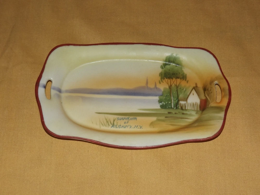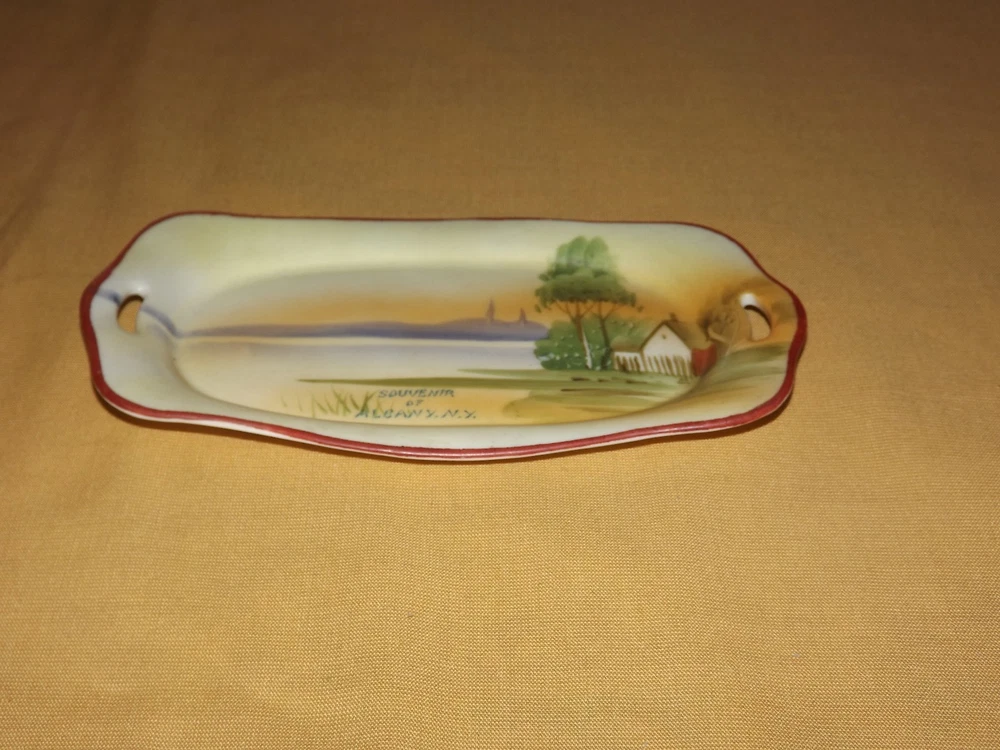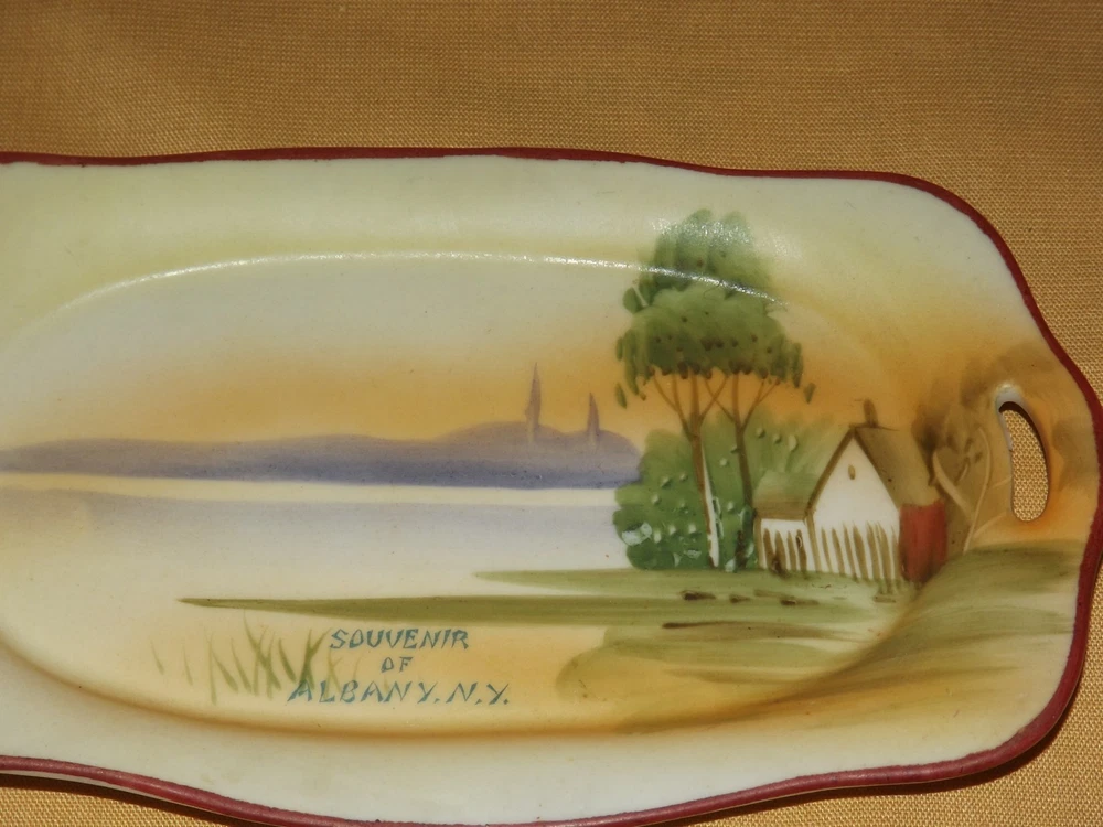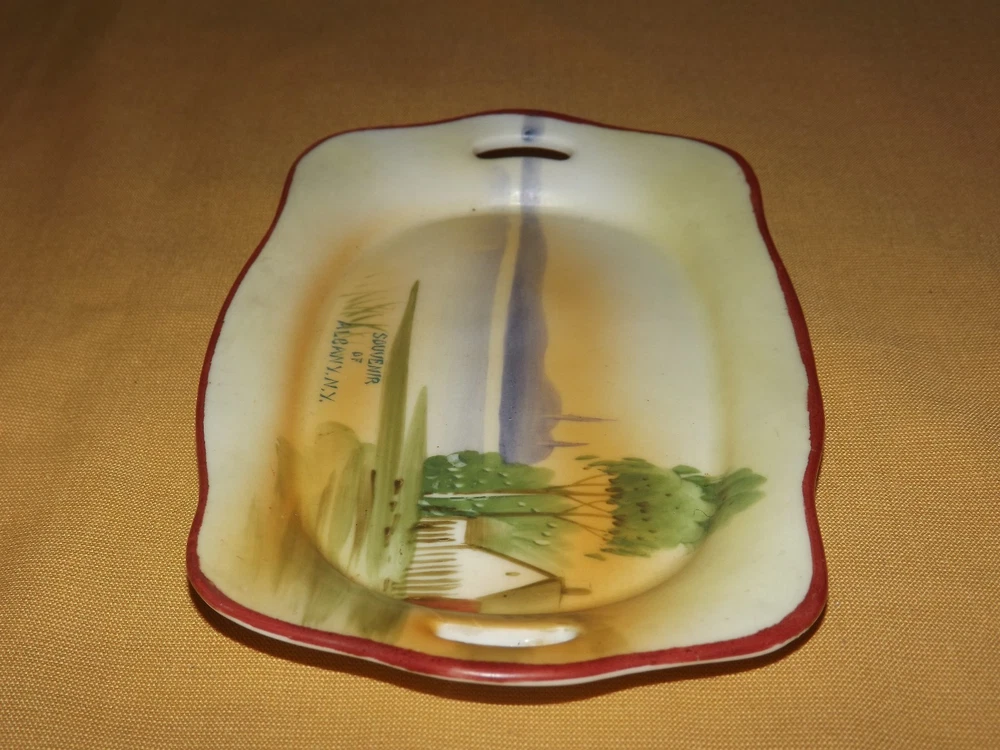 YOU ARE BIDDING ON...... VINTAGE NIPPON SOUVENIR OF ALBANY NY CERAMIC GLASS DISH TRAY... .....MEASURES APPROX 6 7/8" LONG..SHOWS SOME HANDLING/AGE WEAR..NO CHIPS OR CRACKS......PLEASE VIEW PHOTOS FOR CONDITION.***PLEASE E-MAIL IF YOU HAVE A QUESTION OR WANT AN ADDITIONAL PICTURE....PLEASE VISIT MY EBAY STORE FOR ADDITIONAL VINTAGE ITEMS..THANK YOU*** BX1212-80-0409