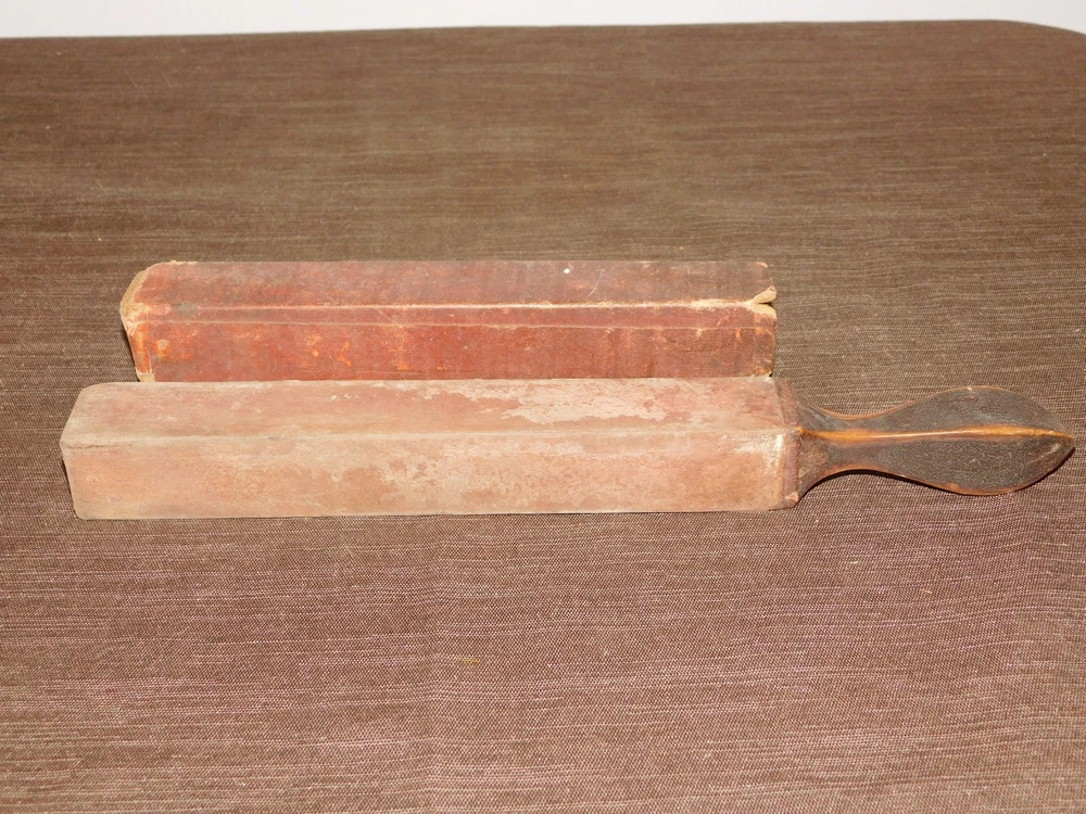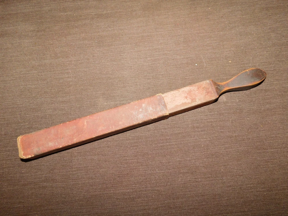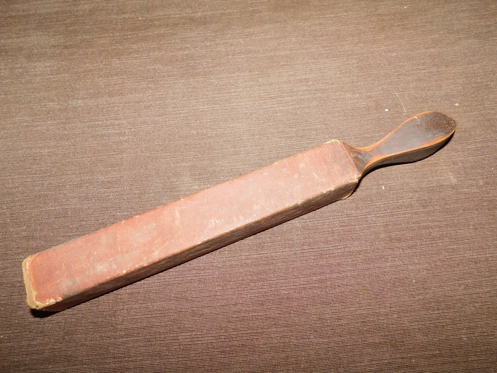 YOU ARE BIDDING ON...... VINTAGE BARBER RAZOR 12" LONG WOOD HANDLE STROP ... ......MEASURES APPROX 12" LONG X 1 1/8" X 1 1/8".....SHOWS A LOT OF USAGE /AGE WEAR..HAS SCRATCHES/PAINT LOSS/AGE DISCOLORATION/TEARS.......P LEASE VIEW PHOTOS FOR CONDITION.***PLEASE E -MAIL IF YOU HAVE A QUESTION OR WANT AN ADDITIONAL PICTURE....PLEASE VISIT MY EBAY STORE FOR ADDITIONAL VINTAGE ITEMS..THANK YOU**10QBX7691-XXXX