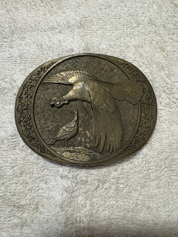 VINTAGE BIRDS SCENE THEME BELT BUCKLE SOLID BRASS - GW-9