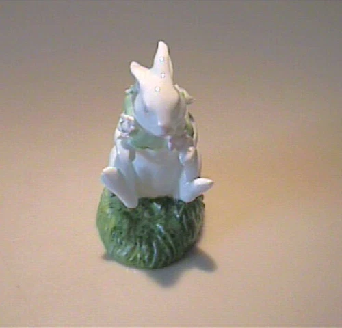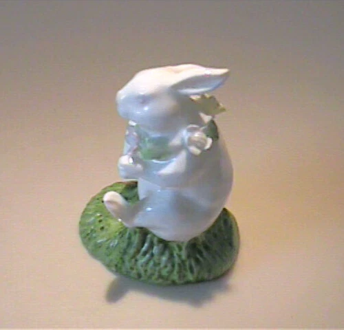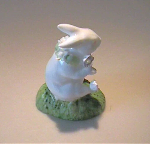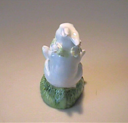 ADORABLE VINTAGE BONE CHINA WHITE BUNNY RABBIT WITH FLOWERS ON LAWN IN GOOD CONDITION. NO CHIPS OR BREAKS. 3" HIGH Discount on shipping on multi purchases ....