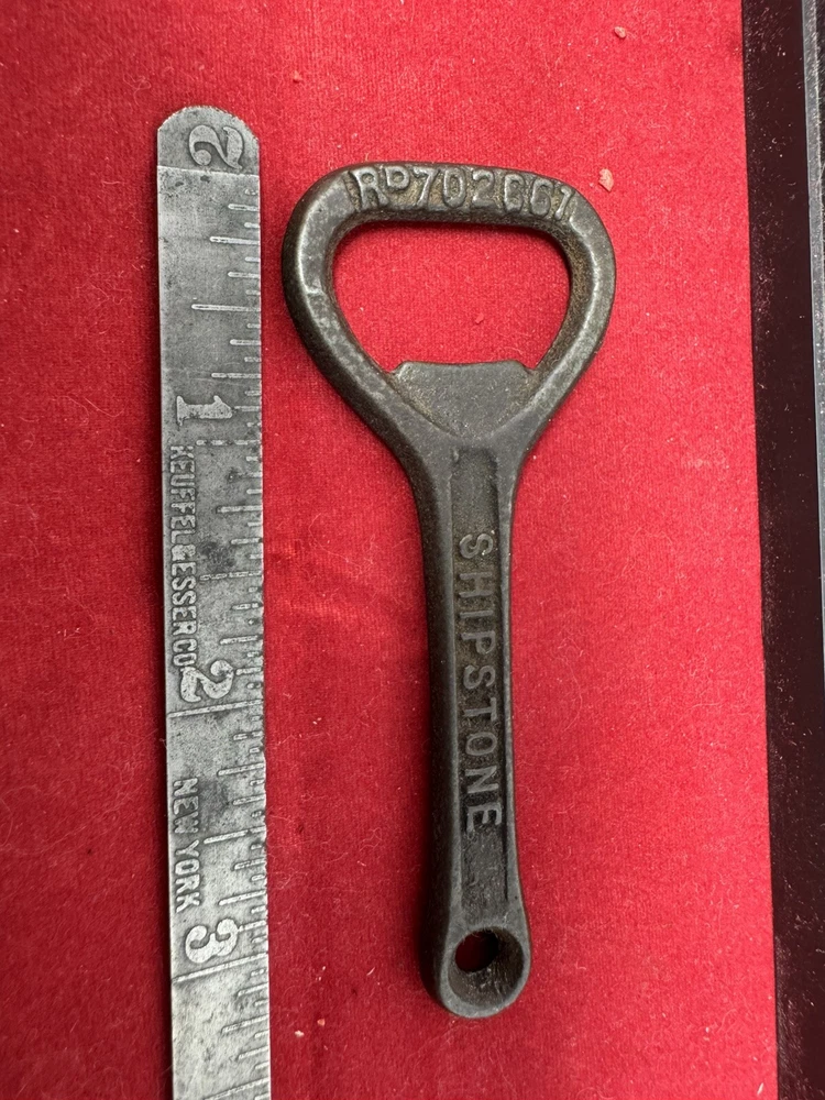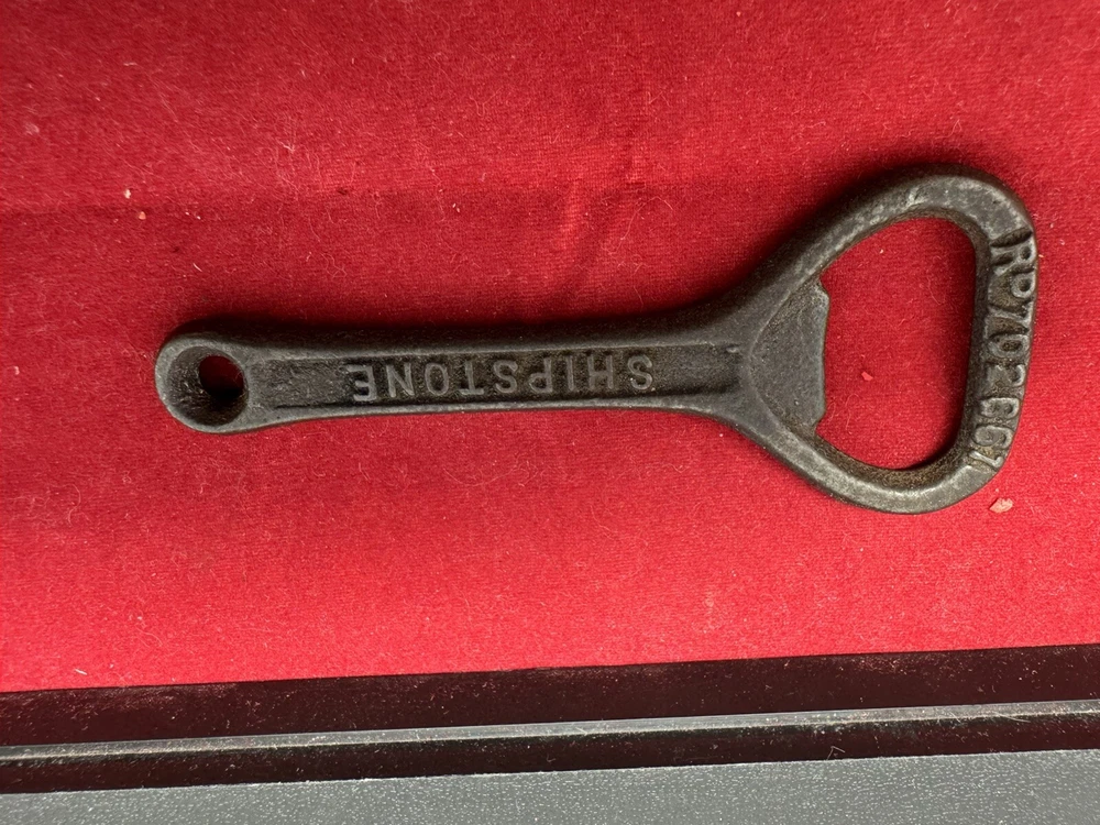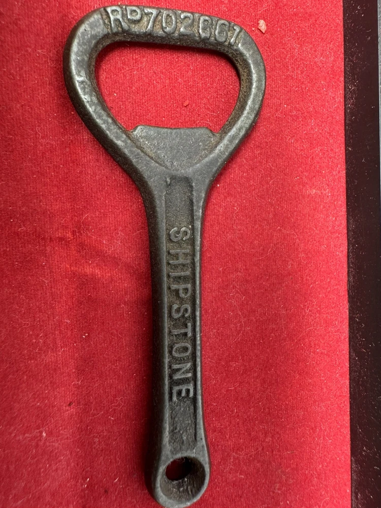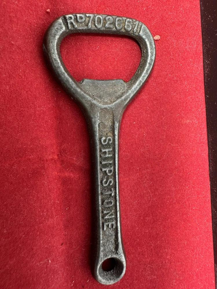 The vintage bottle opener is a collectible item featuring the Shipstone brewery from Nottingham, United Kingdom. Made of iron, this opener follows a Breweriana theme, perfect for beer enthusiasts and collectors. With a classic design and historical significance, this item adds a touch of nostalgia to any collection. The simple yet functional design makes it a practical tool for opening bottles while also serving as a unique decorative piece.