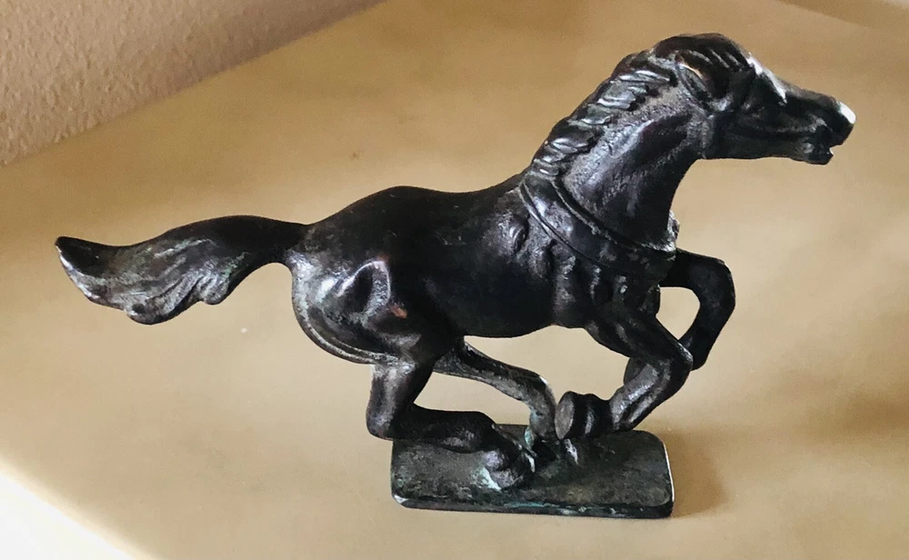 VINTAGE BRONZE HORSE SCULPTURE - ON BASE - MID CENTURY. Shipped with USPS Priority Mail. FREE ————————————— This sale is for a MID CENTURY bronze horse sculpture. It comes with a bronze base and has a natura patina. It is a well made …heavy piece. ———————- CONDITION: Excellent vintage —————————— FREE PRIORITY SHIPPING IN A PRIORITY BOX WITH TRACKING NUMBER AND INSURANCE EMAIL CONFIRMATION
