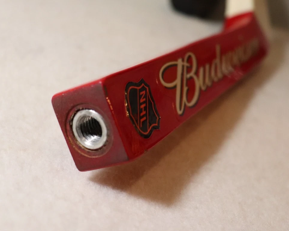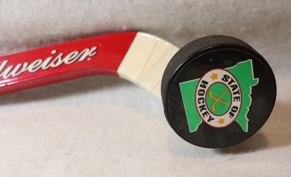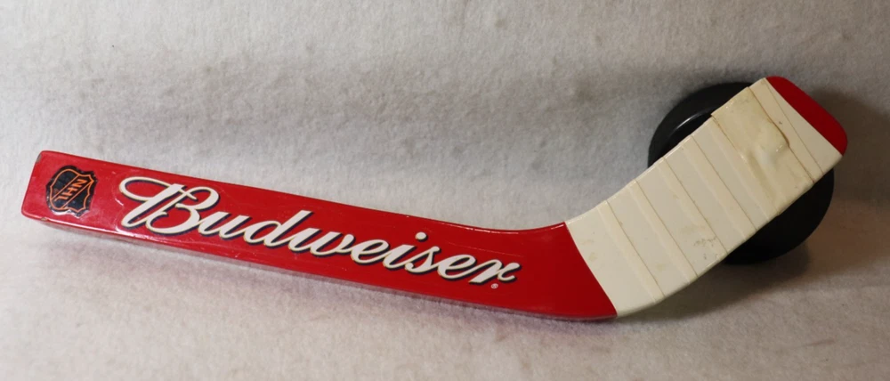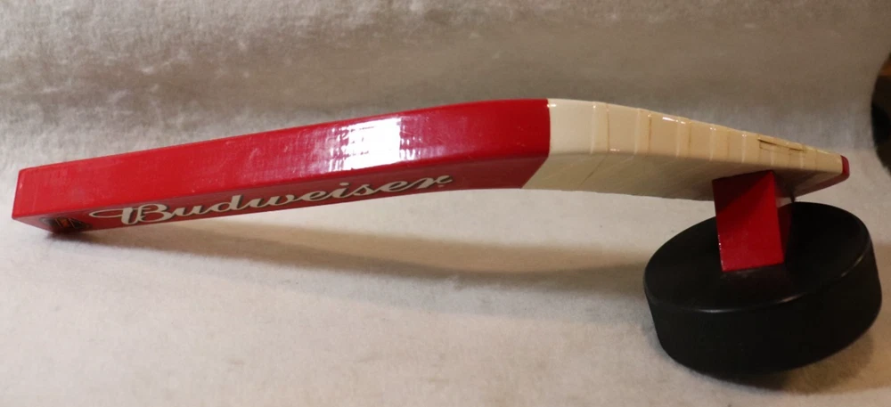 Up for Sale from "BUDWEISER" is a Beer Tap Pull, featuring a Hockey Stick & Puck (touting the "STATE OF HOCKEY" against a background of the State of Minnesota. (See Pictures #1, 2 & #6) Beautifully done in multi-colors--Red, Black, White, Green & Orange-----All featuring a High Gloss Fininsh. (See Pictures) Will be coming to you in Excellent Condition, doesn`t look like it was used. (See Pictures) There are 13 pictures for you to get a goo d look at what you are bidding on. WE SHIP INSURED, PRIORITY, FIRST CLASS AND MEDIA USPS MAIL WITH DELIVERY CONFIRMATION RECEIPT. WE SHIP FIRST CLASS INTERNATIONAL MAIL USPS with NO INSURANCE. WE SHIP PRIORITY MAIL INTERNATIONAL WITH INSURANCE and GLOBAL USPS ONLY! The postage for this item is $8.85 in the continental U.S.A. Other than U.S.A., e-mail for shipping rates MINNESOTA RESIDENTS ADD 8.5% SALES TAX There is a 30 day return policy for a full refund, excluding Postage. If you are not satisfied with your purchase, please notify by e-mail that you will be returning an item. GOOD LUCK BIDDING!!!!! E-BAY, FOR FAST SHIPMENT. AS ALWAYS YOUR SATISFACTION IS A MUST!!!!!!!!!!!!!!