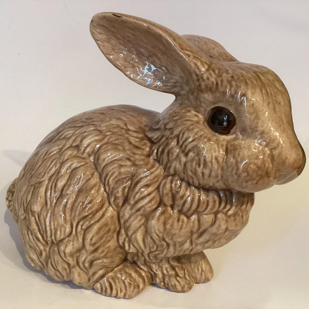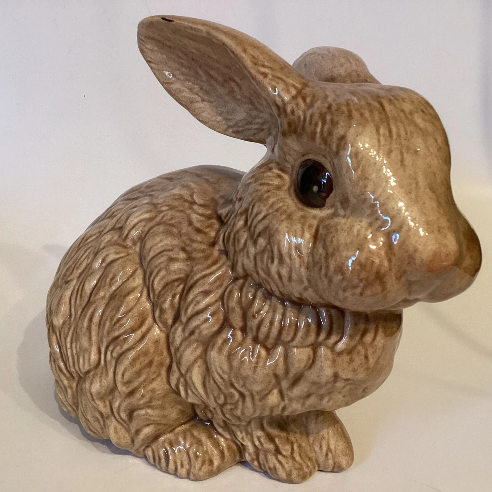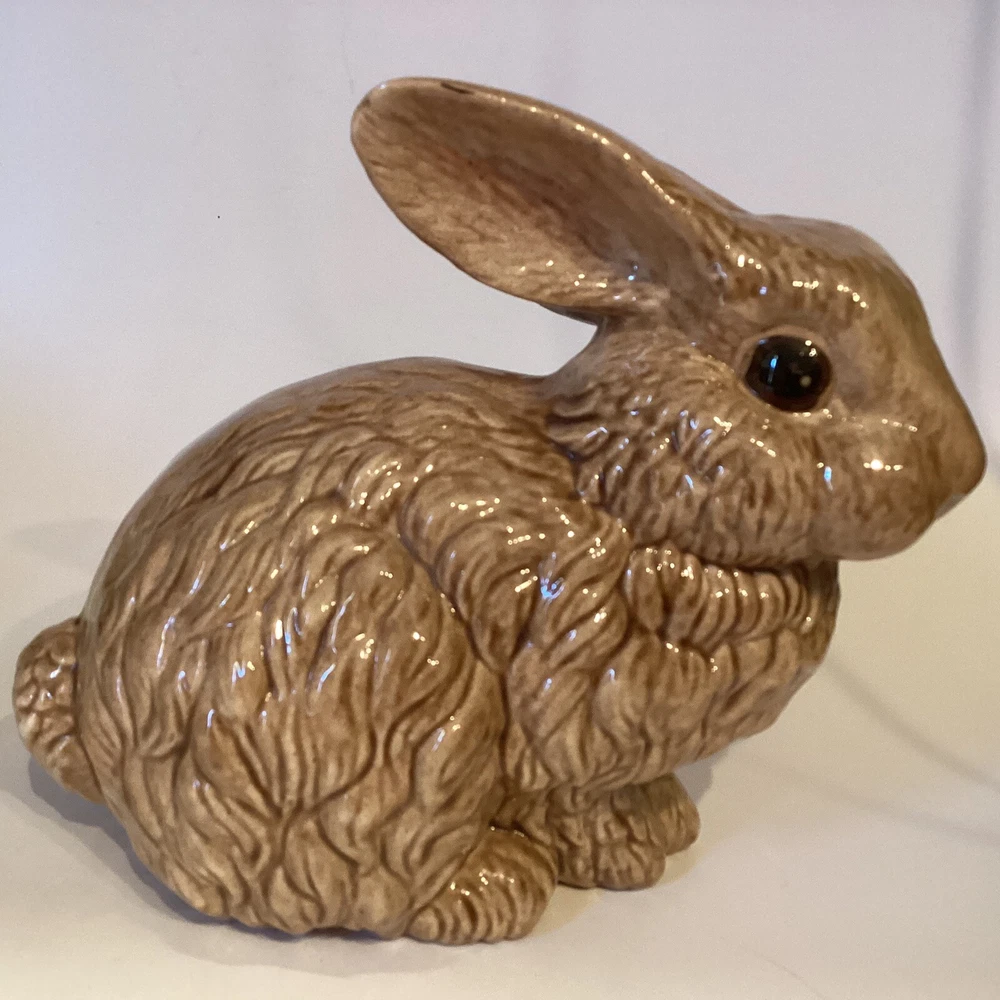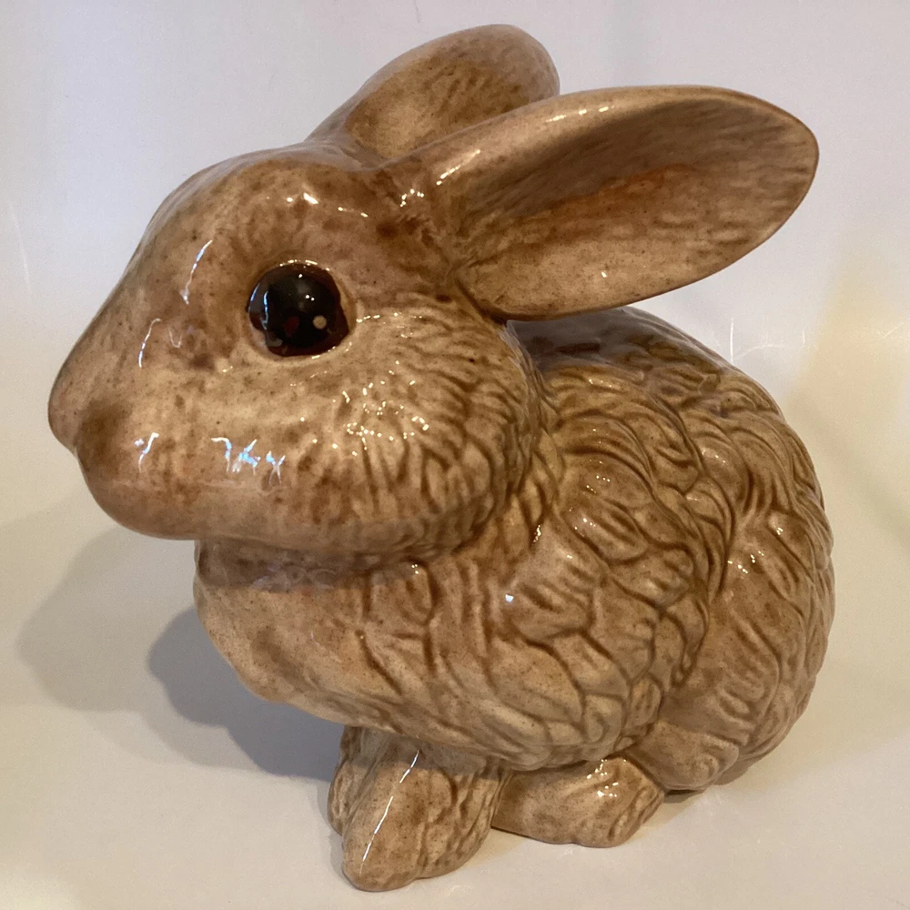 ADORABLE PORCELAIN / CERAMIC BUNNY RABBIT MADE IN 1981. BROWN. IT IS 8 INCHES WIDE AND 7 1/4 INCHES HIGH. GREAT CONDITION.